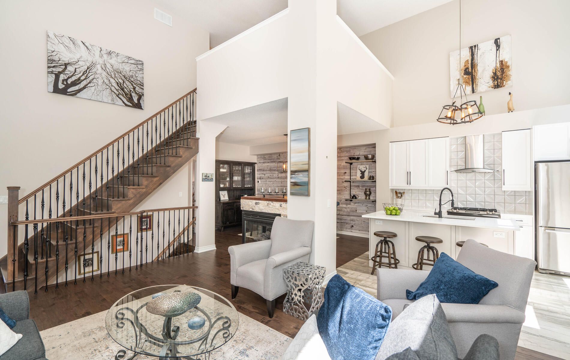 Cathedral Ceiling Hardwood Floor Fireplace