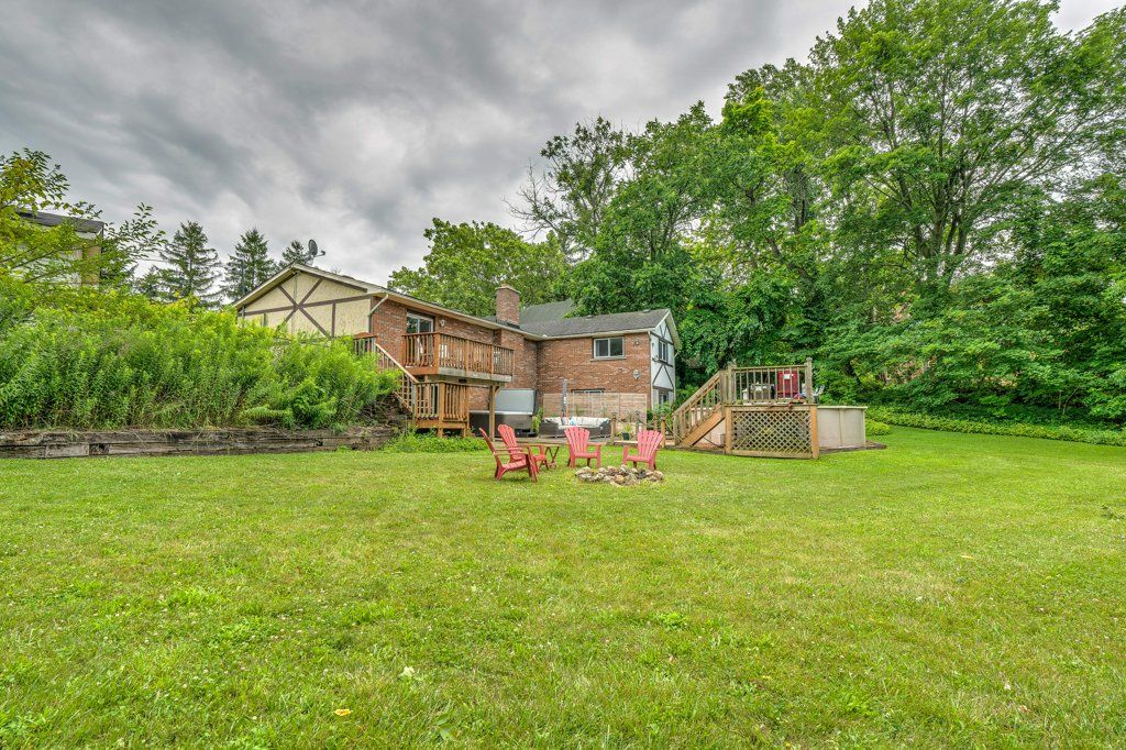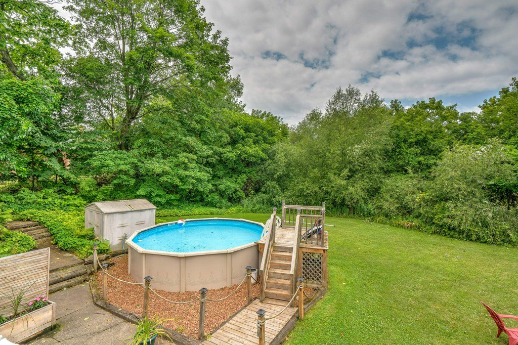Picturesque 4.99 acre property in the Heart of Niagara Wine Country only a short stroll to the Lake. Idyllic ravine lot w/breathtaking views, just minutes from the Historic Old Town of NOTL, 50+ Niagara wineries, Farm Markets, unique shopping & restaurants. Perfect locale for 'La Dolce Vita', ready for entertaining or slowing the pace to a serene & tranquil lifestyle close to fantastic amenities. Sprawling 3+1 Bed, 3 Bath Bungalow w/basement w-o & full in-law suite w/sep. entry & Laundry. Spacious Primary w/new Luxe Ensuite w/heated floors & w-i glass shower. Large E.I. Kitchen w/break. bar & w-o to deck overlooking mature tree'd grounds. Generous L.R. w/wood burning Frpl. 2nd & 3rd large Bedrooms share new Luxe 4 piece w/heated floors & towel warmer. LL features a +-1,500 sf In-Law suite w/spacious E.I. Kitchen, Large Bed, 4pc Bath & generous L.R. w/w-o; Tenanted month-month $1,400. B.Y.oasis w/above ground s.w. Pool. Heated double Garage. 2 Drives. Move-in & enjoy the serenity!Low taxes/conservation exemption. Well water tested & new UV & carbon filters 2023. Septic tank checked & pumped August, 2022. Numerous updates: 2 new Baths w/heated floors, new Chimney, Electric Panel, Pool Pump & more! AirBnB possibility.