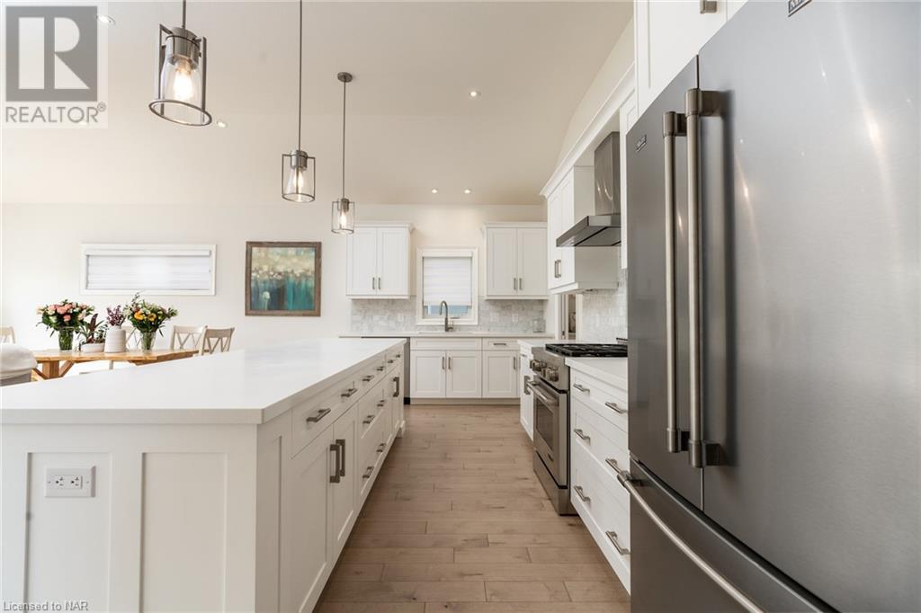 Experience a lifestyle like no other! Nestled in the breathtaking surroundings of 4 Mile Creek, Ravine Winery, and Five Rows Winery. This home is tucked in the perfect location, bordering the stunning countryside while still having access to all urban amenities. With over 3200 square feet of living space, built in 2020, the home offers a blend of modern luxury, breathtaking views, and a prime location. Situated on one of the largest lots on the street, this customized bungalow boasts an array of remarkable features. This home is like no other on the street as it has been architecturally customized inside and out! The main floor showcases two spacious bedrooms, the primary bedroom is a tranquil oasis with a spa like ensuite and a walk-in closet. The focal point of the home is an inviting open- concept living and dining area featuring vaulted ceilings, hardwood floors, quartz counters throughout the home and an abundance of natural light. The luxury kitchen, equipped with top-of-the-line appliances, including a gas stove, oversized island, is complemented by a walk-in pantry with a wine cooler. As you step onto the covered back deck, you'll be captivated by some of the most breathtaking views NOTL has to offer. This priceless property is backing right onto 4 Mile Creek, Ravine Winery and Five Rows Winery! Perfect for outdoor entertaining, the deck features a built-in BBQ, allowing you to savor the beauty of the landscape and sunsets. The garage includes a car charger rough-in catering to the needs of eco-conscious homeowners. Descend to the finished basement, where an open-concept rec room provides ample space. Two additional bedrooms offer comfort, while a full bathroom completes the lower level. You'll have the privilege of immersing yourself in the serenity of nature and the beauty of the vineyards. You will never have rear neighbours in this home! Enjoy the small town feel while still being within proximity to shopping, dining, golfing and the US Border. (id:22211)