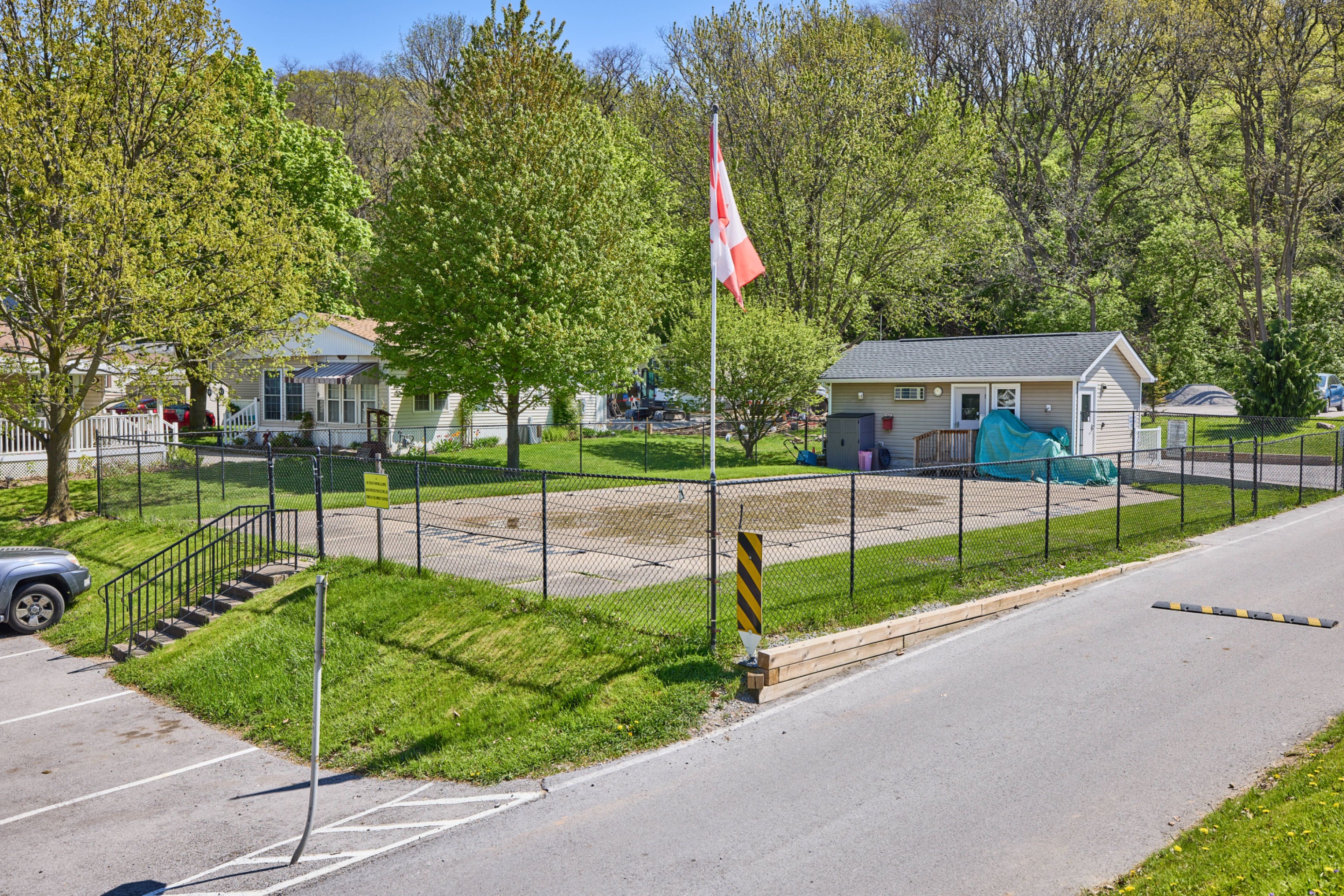 Welcome to Creekside Senior Estates! Nestled right below the gorgeous Niagara Escarpment and only a short drive to Niagara's best attractions - this is the peaceful retirement community you have been waiting for! Located at the end of Leonard Lane, unit 240 is a tidy 2 bedroom mobile home that offers 2 bedrooms, 1 bathroom and even an enclosed 3 season sunroom and a large workshop. As you pull up to #240 you'll surly be impressed by the beautiful trees and garden beds that sit on the west side of the home in lieu of a neighbour. The attached carport keeps your vehicle safe from the elements and has enough space to also be used as a covered porch. Step inside to find a spacious bright living room, large eat in kitchen with plenty of cabinet & counter space, 2 large bedrooms, a 4 piece bathroom and a laundry area in the main hall. The home's 3 season sunroom is the perfect place to entertain friends and family when you are done catching some sun on the side or back lawn. Hobbyists and craftspeople rejoice! The attached workshop means you don't have to leave all your tools and creations behind when you downsize to Creekside Senior Estates. There is even a garden shed for additional storage. The community centre at the entrance to the Coop offers billiards, book/DVD lending, a games room, meeting room, and a kitchen for community members to use. Weekly activities include bingo, playing cards, dominoes, community work parties, 50/50 draws, and gardening sessions. A daily happy hour gathering gives everyone a chance to enjoy the company of their fellow residents. Several larger events are planned monthly and often include a community breakfast, potluck supper, movie night, town hall meeting, craft workshops, or even a duck race down Four Mile Creek. Also on site you will find an in-ground community pool, tuck shop, and Canada Post mail delivery (community mailboxes). Who knew downsizing could be this peaceful, fun and easy?!