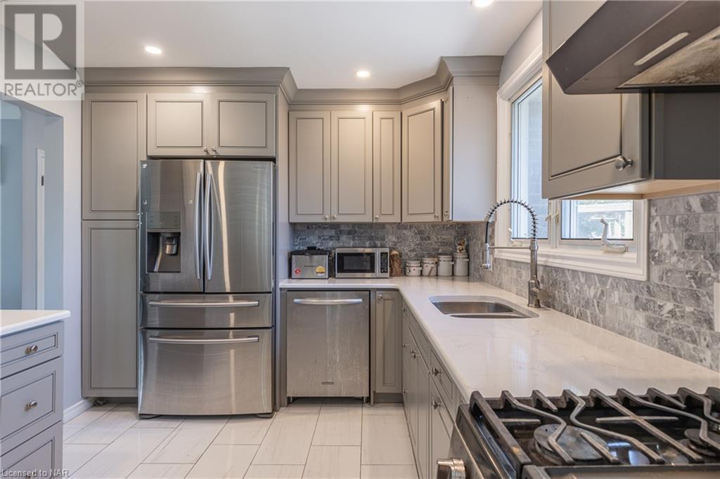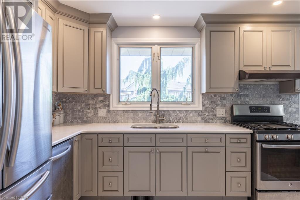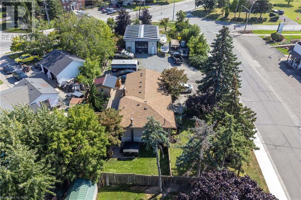 Opportunity knocks! Delightfully Renovated Home with separate 30X40X16ft Workshop/Garage and loads of parking all on a big 80 X200 ft lot with potential for severance. Welcome to 506 Line 2, Located in the heart of Virgil, Niagara on the Lake, across from a small commercial mall, backing onto Hwy 55, and kitty corner to the Future medical Centre beside CrossRoads Public School. With this prime location, opportunities are endless. Presently, the 1200 sqft Sidesplit is used as a single family residence with a lower level 2nd kitchen, backyard entrance, large Bdrm, renovated 4 pc bathroom and living space, there is the potential for an in-law suite or BnB Rental. The 1 Bay garage/Workshop is heated with a natural gas radiant tube heater, has 100 amp, a washroom and has surrounding parking for 10 cars. Initial consultations with town suggest severance is possible. Perhaps future development allows for townhomes, a 2nd home built or the possibility to change the property to commercial zoning through a variance with the City of Virgil. Garage roof has solar panels with income producing from NOTL Hydro approx 8K/yr. The contract is paid out and ownership will be transferred to the New Owner upon closing. Home furnace 2021, A/C 2020, Home roof 2021, Kitchens 2021, Vinyl floors 2021, renovated washrooms 2021, front and back doors 2021, house freshly painted 2021, new electric panel 2019, hot water tank owned 2020. Buyer to do own due diligence on severance or re-zoning. (id:22211)