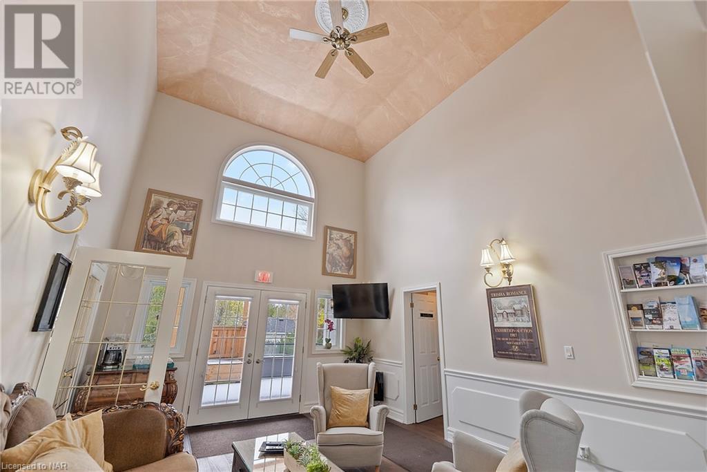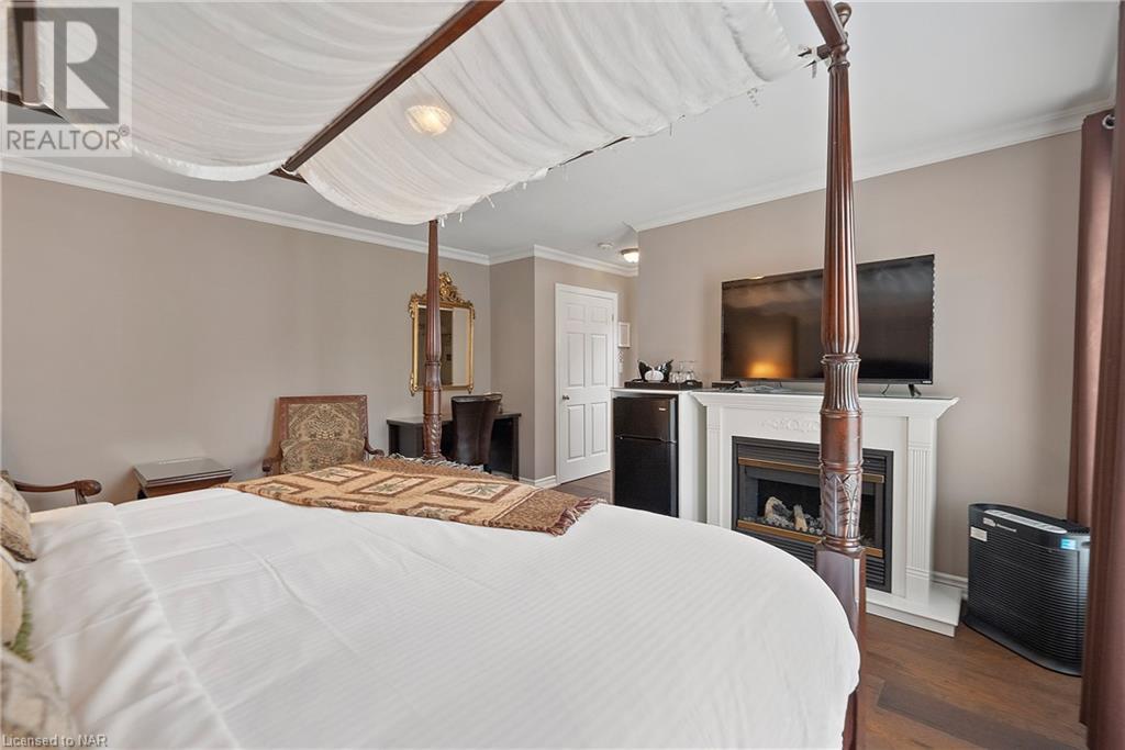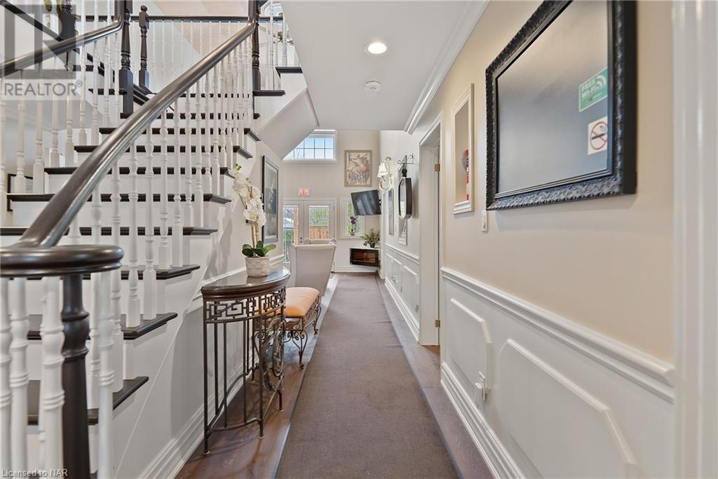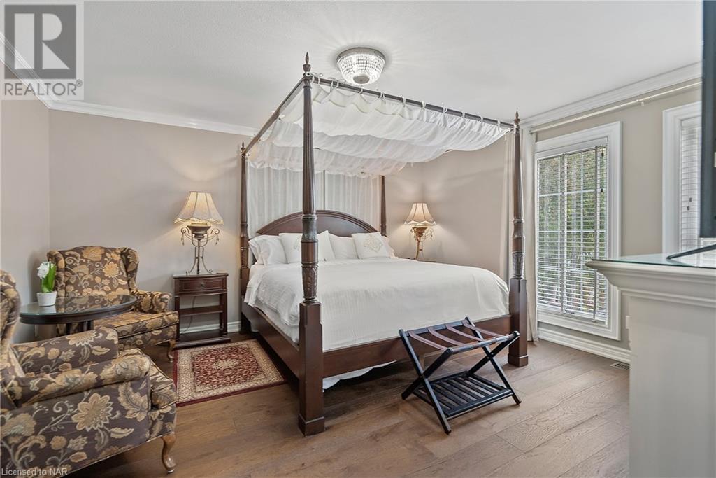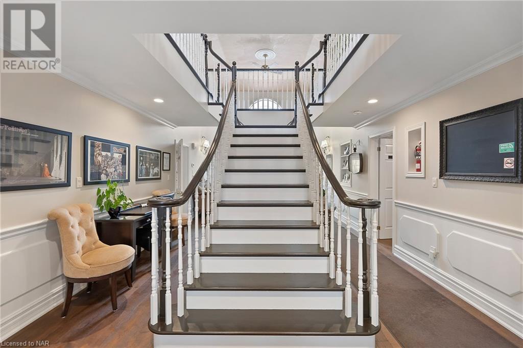 Welcome to the prestigious 527 Mississauga Street in renowned Niagara-on-the-Lake. Boasting Georgian architectural flare, this home with 4800+ sq ft of living space captivates you before even walking in the door with its grand pillars, manicured green space & shrubbery, a 10+ car interlock driveway with a double garage and an impressive upper level balcony overlooking the naturally beautiful surrounding area. Situated in a central location with easy access to highways, town, restaurants and wineries. Inside, you are greeted by the breathtaking scarlet staircase and great room with 16ft vaulted ceilings, backyard views and an elegant touch. Hardwood oak flooring is throughout the home along with granite countertops, 5 fireplaces, 3 balconies and a verandah reminiscent of southern hospitality. Backyard deck with glass rail overlooking the garden. Each of the 7 bedrooms and all common areas of this manor are staged to entice mood, comfort and thematic grandeur while remaining functional. For the wine enthusiast in wine country, you will find your wine cellar on the fully renovated lower level, accompanied by a full kitchen, 2 generously sized bedrooms with their individual ensuite bathrooms. A second great room with 9ft ceilings. With its own private entrance, the lower level is ideal for an in-lawsuite or to generate a supplemental income. Galvanized by a touch of luxury, each detail is fashioned and crafted for the discerning eye, while the elaborate floor plan boasts multiple living options that provide privacy with the potential of separate suites. If you are seeking one of the most sought after locations in Niagara-on-the-Lake to live a luxury lifestyle conducive to historical relevance and modern envy, make your appointment today. Currently operating as a premium Bed & Breakfast. Purchase as a family home, upscale AirBNB or Bed & Breakfast with option to buy existing furniture. (id:22211)