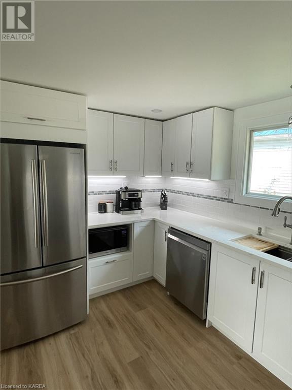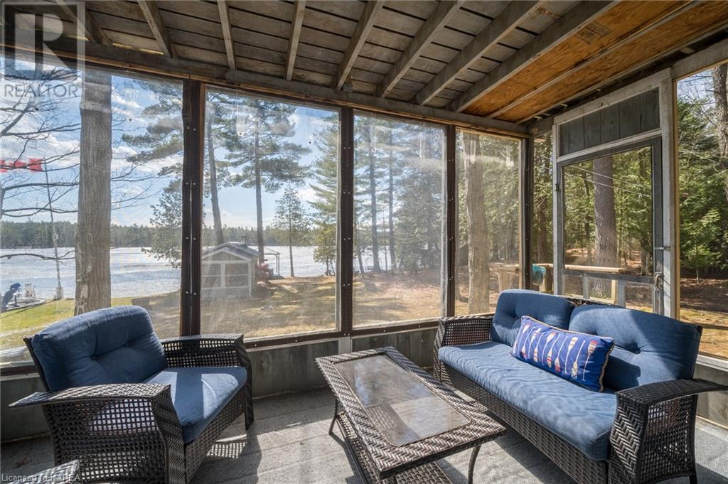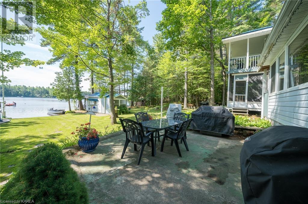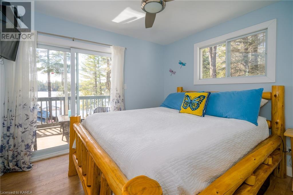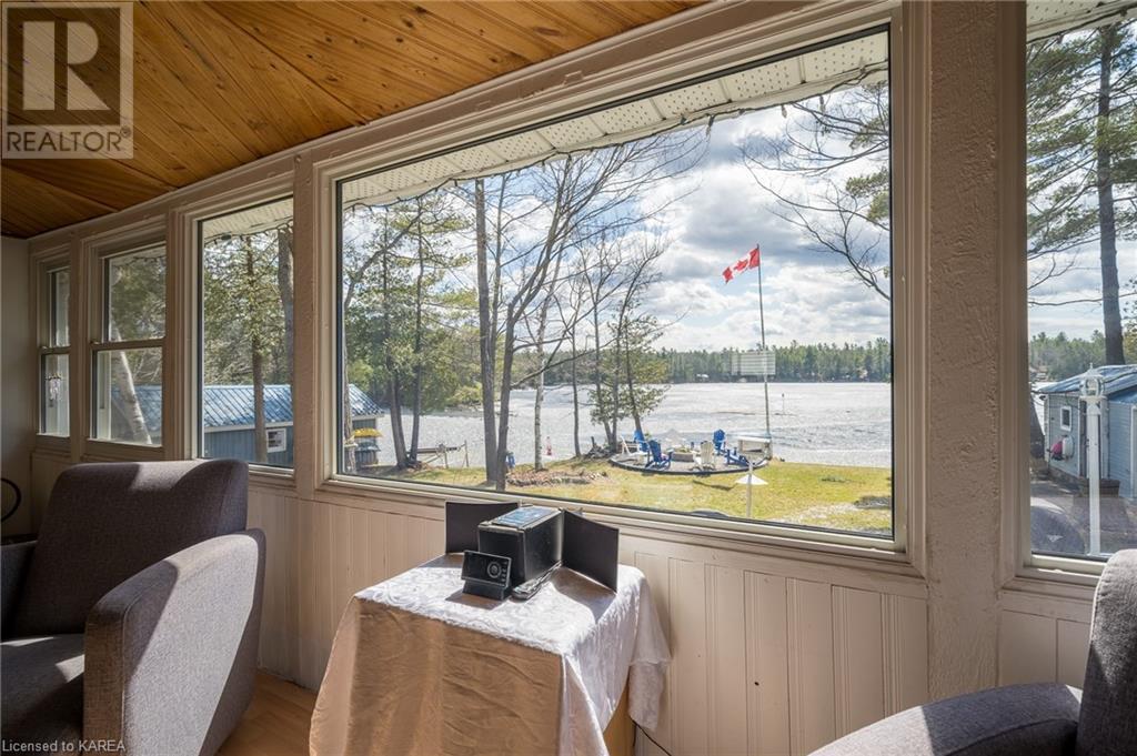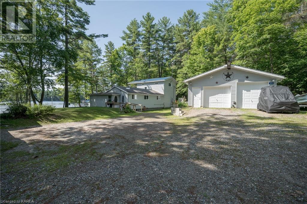 Are you ready for lakeside living? Sitting under the moonlit sky around the camp fire breathing in the fresh air and enjoying summer days swimming and boating Big Gull Lake! This home will not disappoint and you are sure to feel relaxed the moment you pull in the driveway. This home has been recently refreshed with a new kitchen and new flooring throughout the main level. The main level features a bright and cheery eat-in kitchen, a perfect space for friends and family to gather. Off the kitchen is a terrific sitting area with windows facing the lake, a wonderful space to enjoy your morning coffee. Down the hall you will find two refreshed bedrooms, bathroom, main floor laundry, and large living room with propane fireplace great for spending those chilly fall evenings! Bonus is the 3 season sunroom off the living area that will surely be one of your favorite spaces to relax and gives you a true indoor/outdoor feeling. On the second level is two additional bedrooms the primary has a large closet/built ins and fully renovated and modern 3 pc ensuite. Open the doors to your private deck to watch the sunrise in the mornings. Outside you’ll not only discover a level 155’ of waterfront great for swimming you’ll also discover a detached 20' x 40' 2 car garage with 12' x 12' storage space and a 12' x 12' exercise room. Down on the waterfront houses a boathouse, as well as a sauna and hot tub in their own 'spa house.' A gorgeous circular firepit over looking the lake and plenty of room for parking, including a designated 35' area to park an RV, with 30 amp hook up service. Bonus is the availability of Starlink high speed internet!! Some of the many updates include: New septic system '13, Steel Roof on Garage, Hot Tub, Boat House, Main House '17 thru '22, ensuite '20, sunroom picture and side windows, living room sliding doors & side windows '19, propane furnace '17, propane water heater '16. Kitchen and flooring and paint on main level ‘23. Don’t miss out on this one! (id:22211)