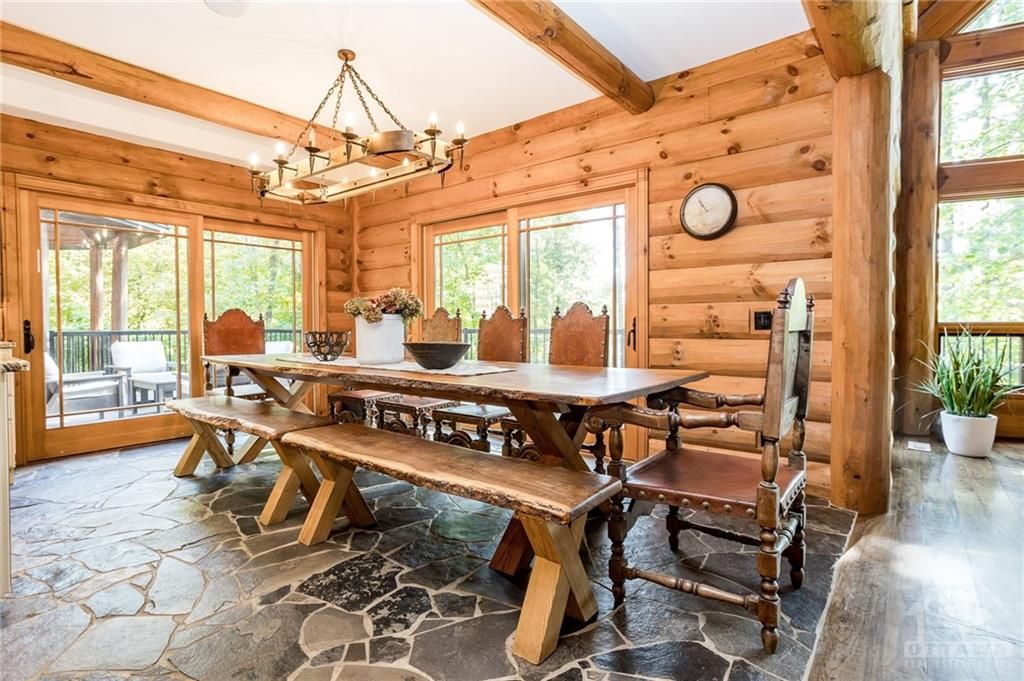 Introducing an exceptional lakefront retreat nestled in the highly coveted Calabogie area! This stunning architectural gem offers an unmatched blend of natural living, opulent comfort, and utmost seclusion. Featuring approximately 5500 square feet of living space, 7 bedrooms, 4 baths, and resting on approximately 10.5 acres with expansive views overlooking Norcan Lake. This beautifully crafted log home features soaring ceilings, abundant windows flooding the home with natural light, 3 fireplaces including one floor-to-ceiling, a state-of-the-art kitchen, heated flooring in the kitchen and bathrooms. Entertaining and relaxation made easy with a private home theatre, high-speed Starlink internet, an expansive wrap-around deck with gazebo, a walk-out basement + hot tub. Shared ownership of a local boat launch and docks included. Located just a short drive from Calabogie Peaks and amenities, 1.5 hours from Ottawa, approx 4.5 hours from Toronto, and 3.5 hours from Montreal.Septic and Well Records available. Property currently used as a successful AirBnB. Septic system - original, emptied every year. Approximate cost for utilities - $400/month. **INTERBOARD LISTING: OTTAWA REAL ESTATE BOARD**