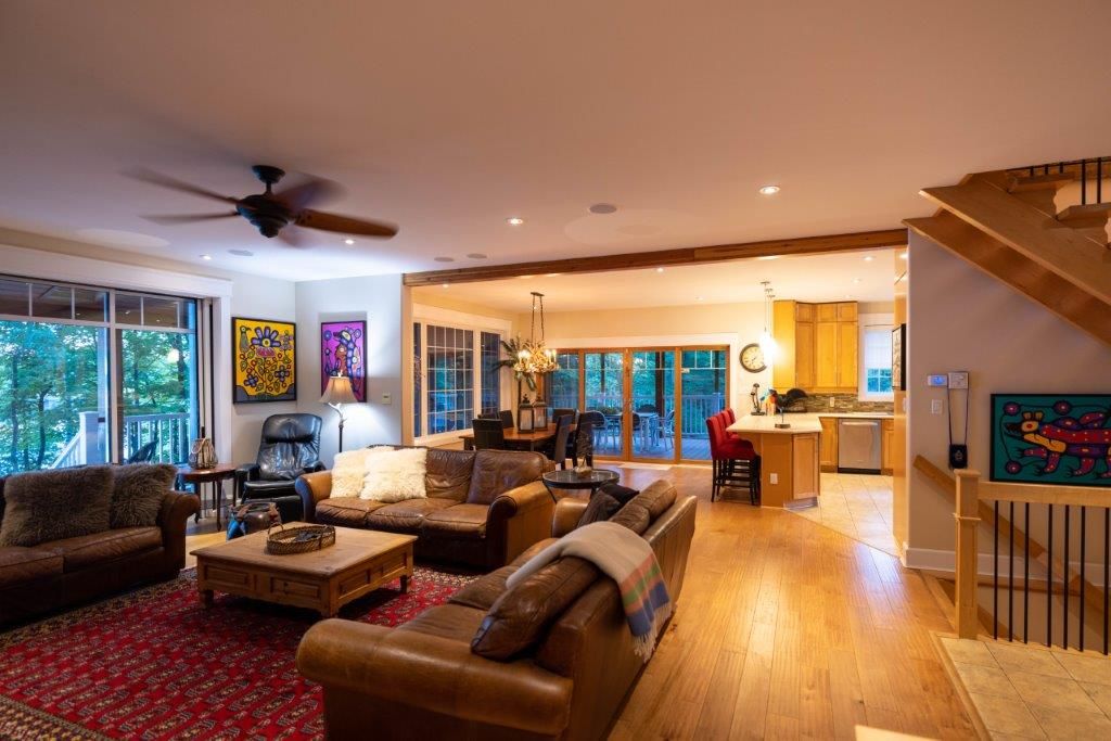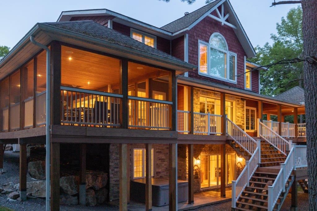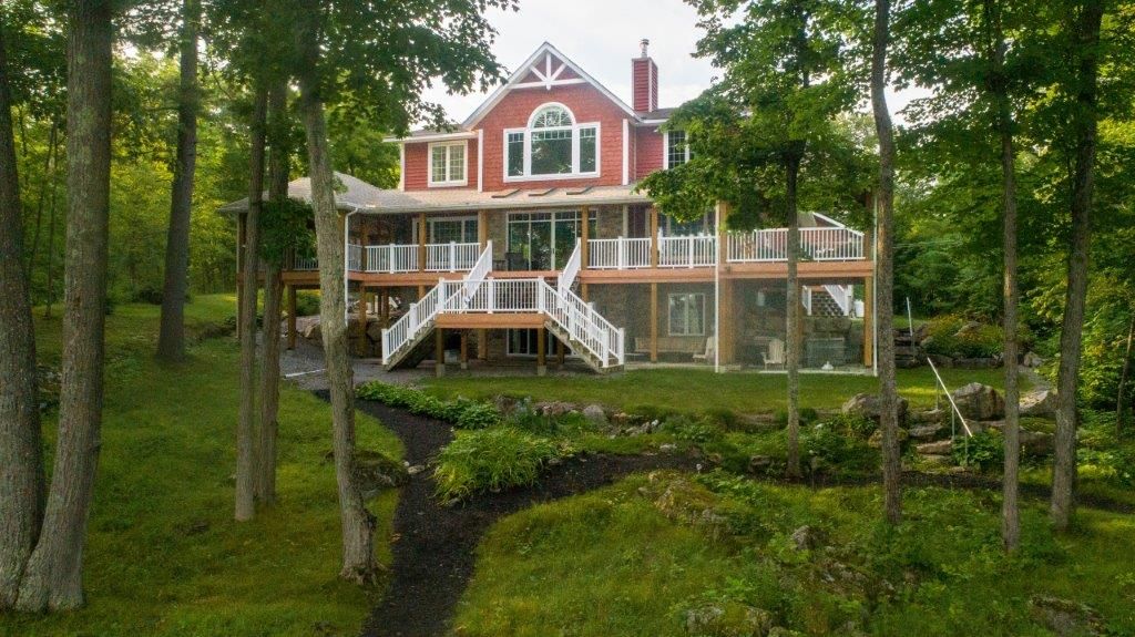 Privacy on Stoney Lake. Escape to Serenity will captivate the nature lover in you. This 5+ Acre and 943 ft of waterfront assures absolute privacy. This custom built contemporary farmhouse is perfectly set up for friends and family. 5 Bed 4 Bath, fully equipped guest suite on the lower walkout, open concept on the main floor living, dining, kitchen lends itself to entertaining on a large scale. Fabulous screened wrap around porch for outdoor meals, massive master suite with spa bath, games room, library, doggie wash station, huge mudroom and oversized attached triple car garage. Complete privacy, perennial gardens, beautiful walkways, loads of space to hike, kayak, swim and boat the trent system. Natural pathways, sauna in the woods, luxurious outdoor hot tub for stargazing and fireflies glowing in the night. Peace and quiet abound. Wildfire Golf and Juniper Island are just minutes away by boat. Short drive to lovely Lakefield Village but a million miles from anywhere.A whole lifestyle of laid back luxury awaits. Come, meet new friends, watch a deer scamper through the woods, go for a quiet walk down a country road.