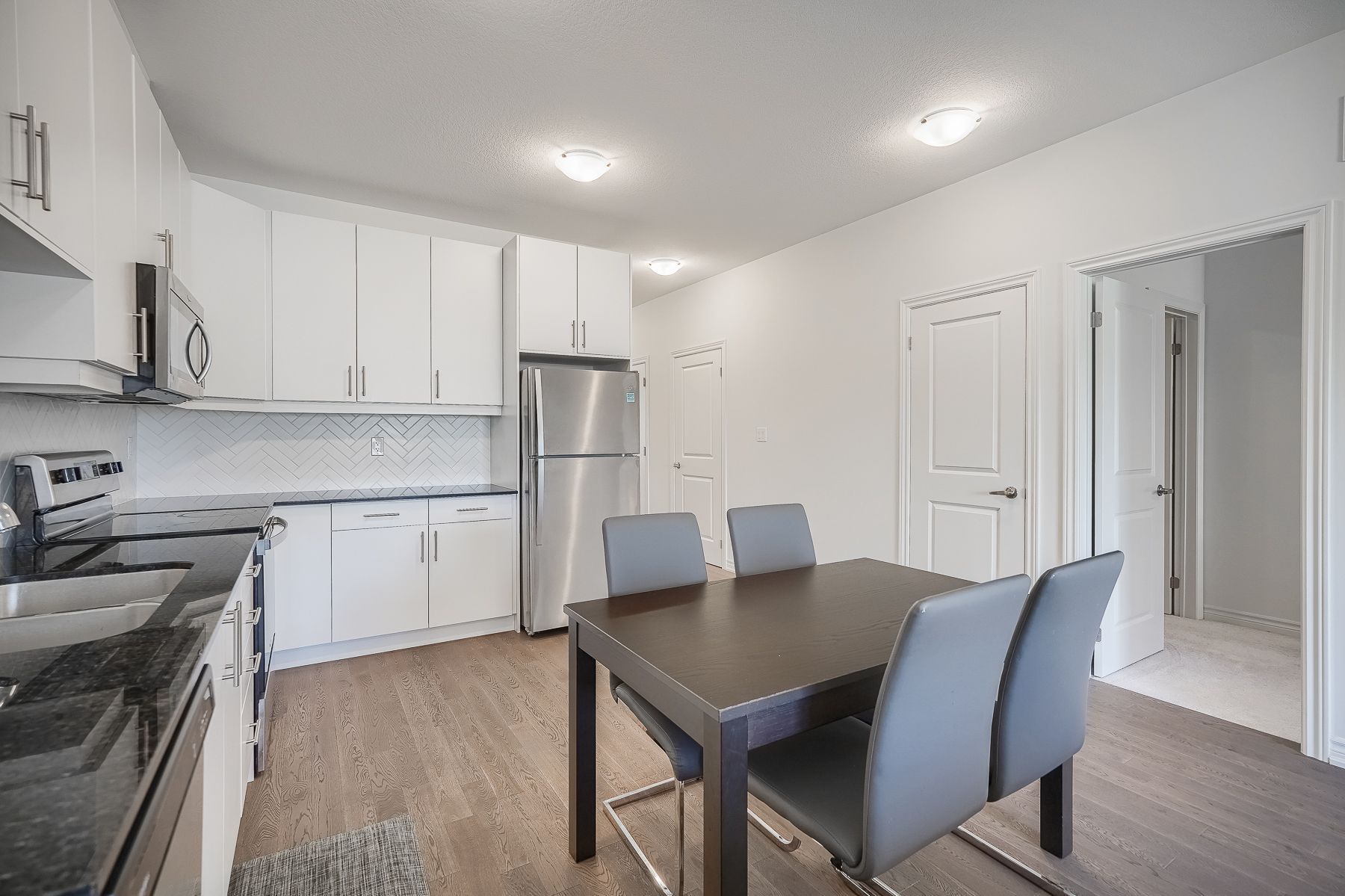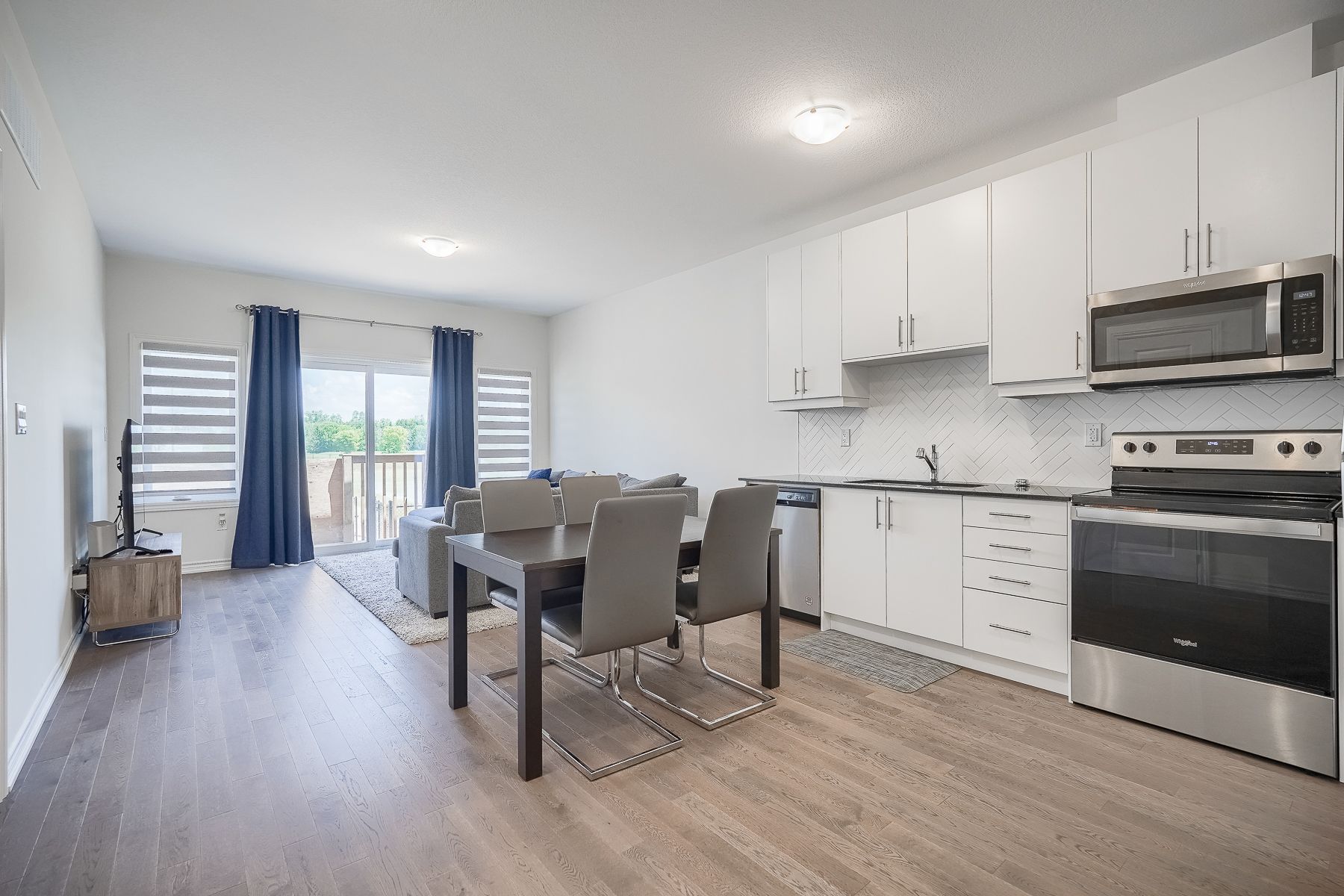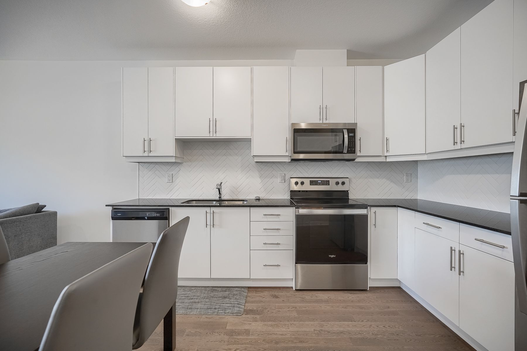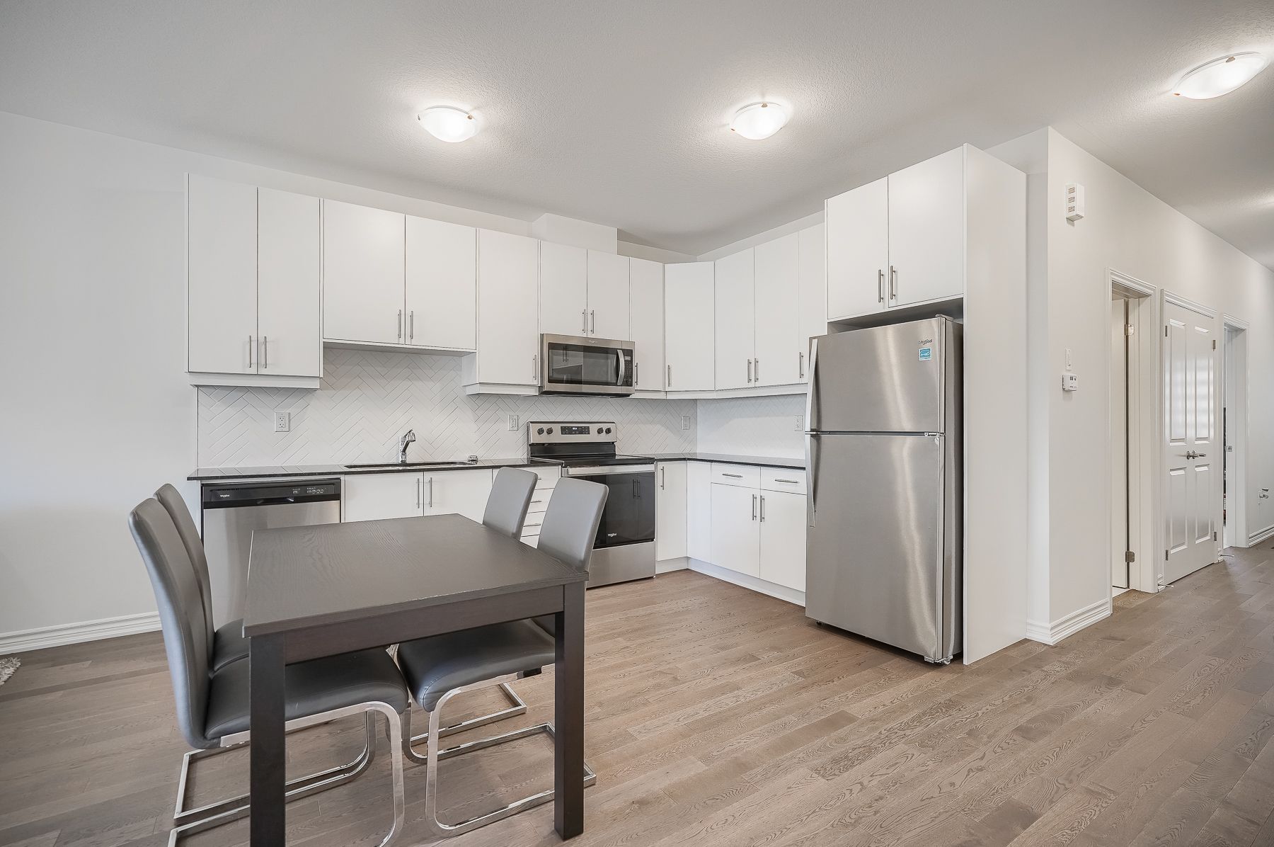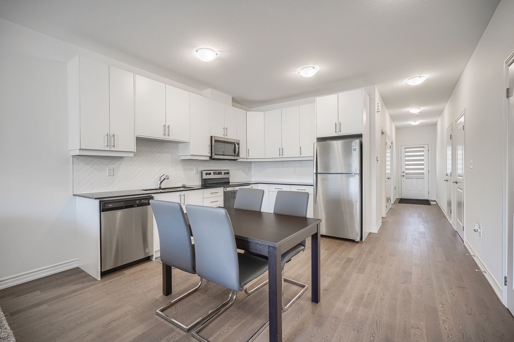 Hardwood Floor Stainless Steel Appl Backsplash
