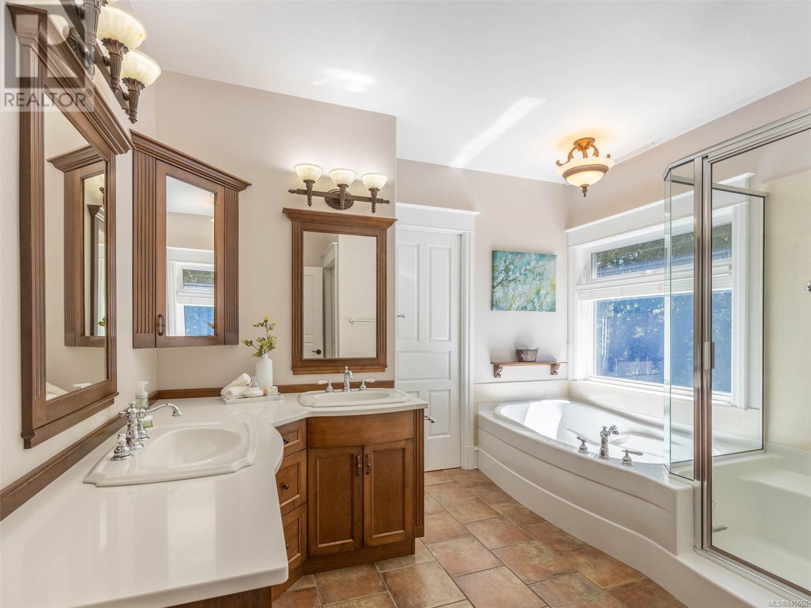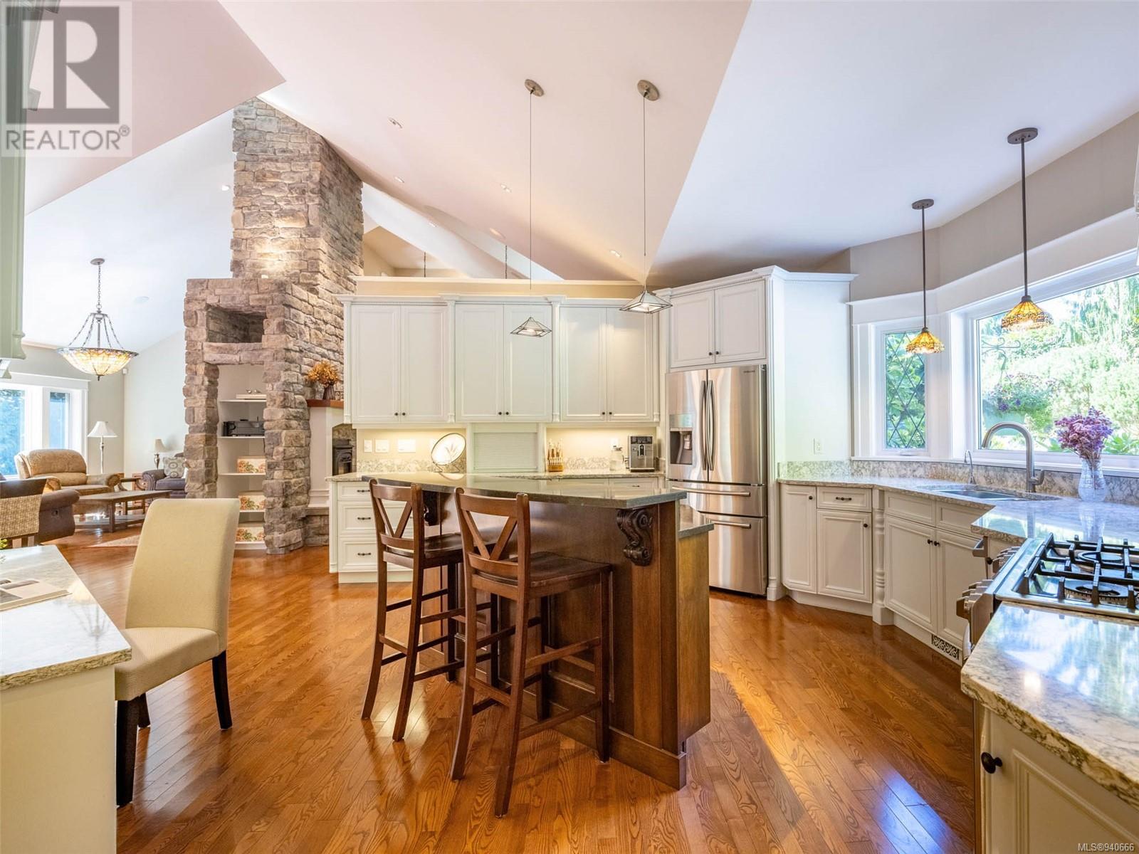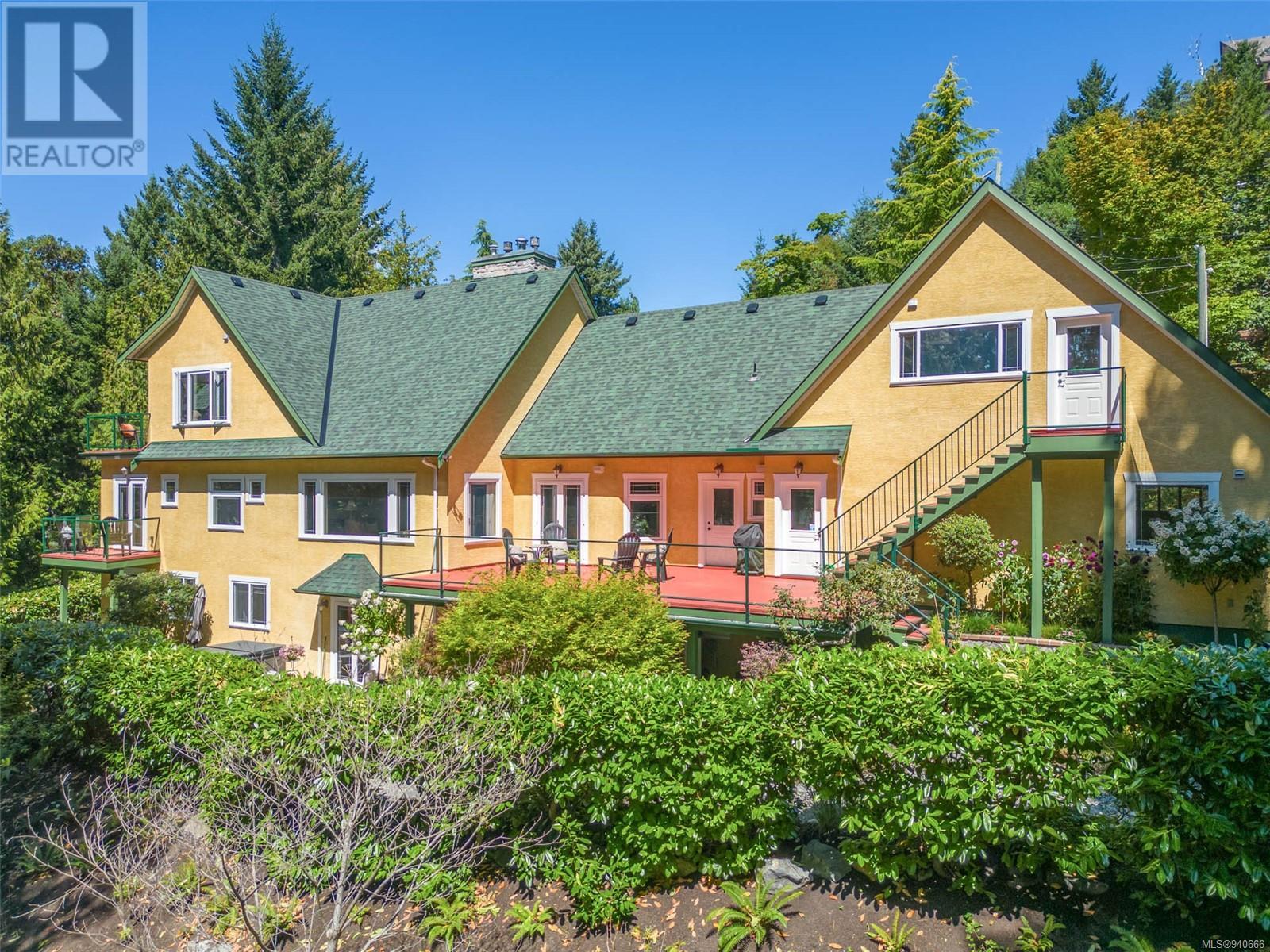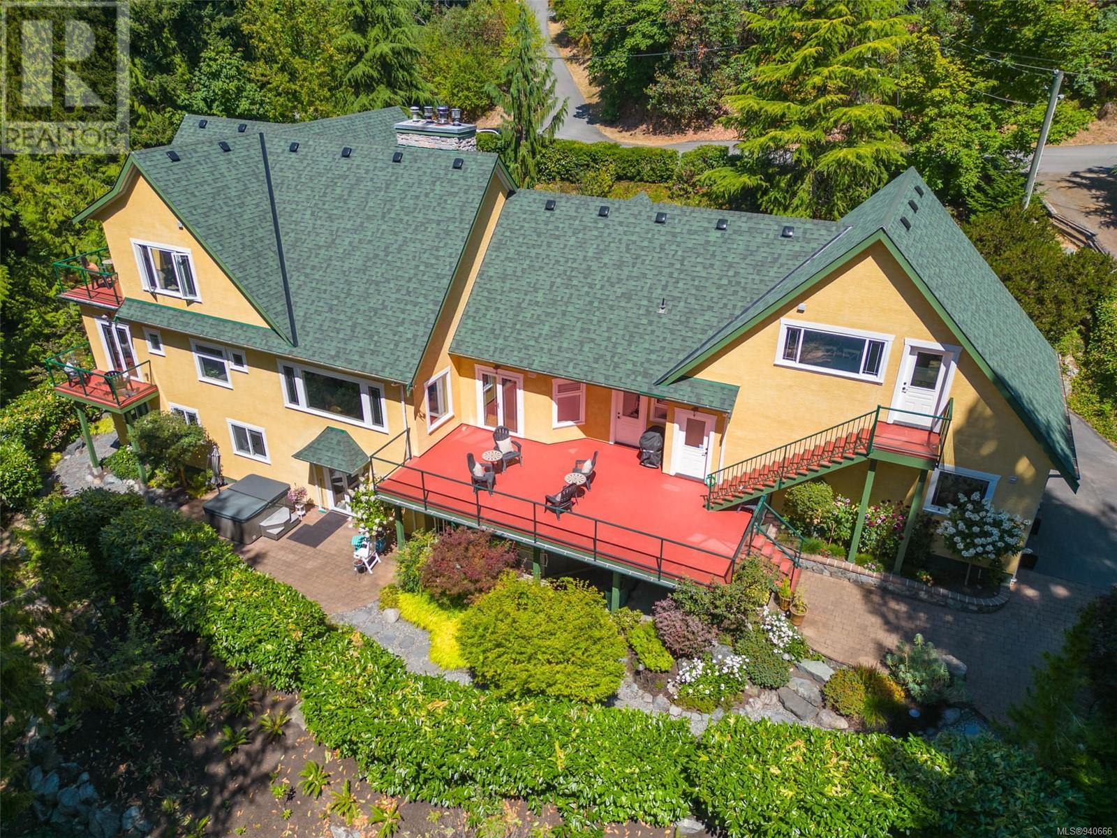 Discover the epitome of luxury living in this stunning 5-bed + den, 6-bath, 3-level home. The grand 2-sided gas fireplace welcomes you into a space where elegance meets comfort. Admire the beauty of stained-glass windows, Tiffany-style light fixtures & ash hardwood floors throughout. Entertain with ease in the large open floorplan, adorned with vaulted ceilings, creating an airy ambiance & chefs kitchen. Relishing the extensive balconies & patios & private hot tub. Lower level boasts a spacious rec room & newer 2-bed in-law suite. The undeveloped area above the garage awaits your creative touch. 3-car garage ensures ample space for vehicles & storage, while meticulous landscaping adorns the property. Escape to a treed back yard with delightful chip trail & firepit area, creating a picturesque retreat. 2 small cottages beckon, offering serene spots to admire the view or provide additional storage. Embrace the opportunity to own a home that seamlessly blends sophistication & comfort. (id:22211)