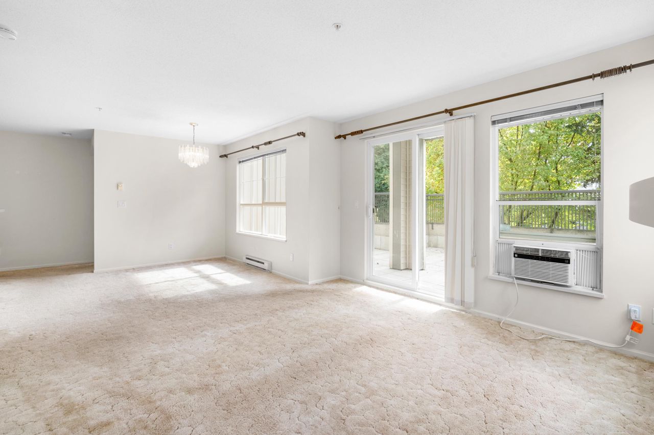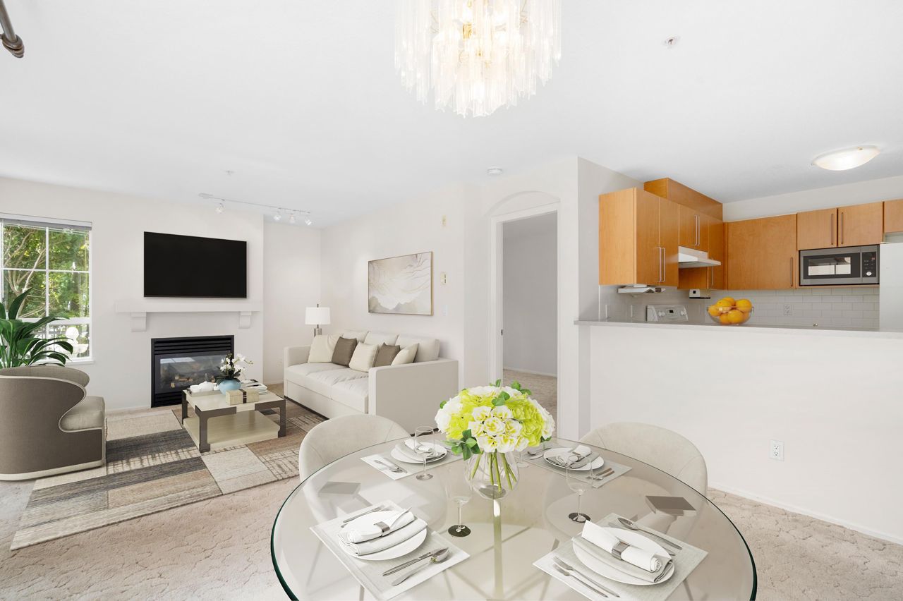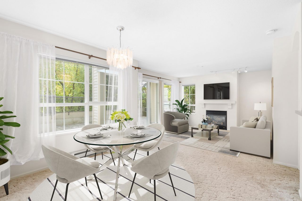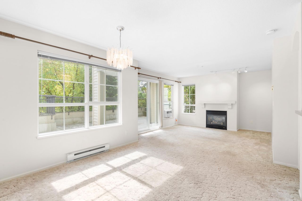 First time on the market!! Bright and beautiful corner ground unit is now available at the the prestigious HIGHGATE building in the heart of Lynn Valley. This spacious 2 bedroom townhouse like condo has a modern open-concept layout. Enjoy the cozy gas fireplace in the winter, and the sunny drenched massive patio in the summer surrounded by greenery. The primary bedroom is large enough for a king bed, and has walk in closet with a full ensuite. Great separations to the second bedroom! With a full bathroom and ginormous foyer, which could double as a den or office space! Incredible location steps away from Lynn Valley Centre, restaurants, transit, biking/hiking trails. 2 tandem parking stalls and 1 storage locker. Gym and visitor parking. Two pets and rentals ok w/restrictions.