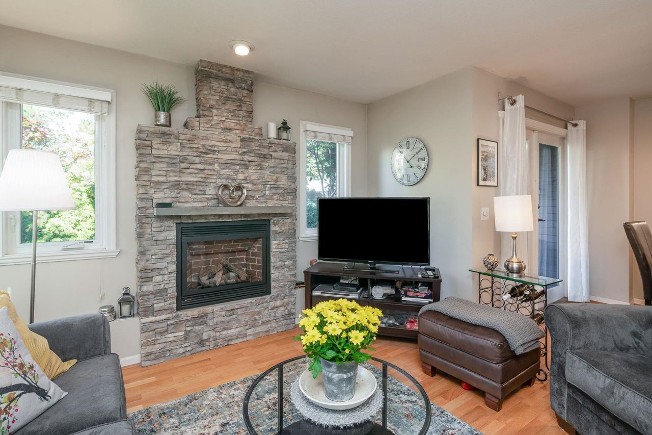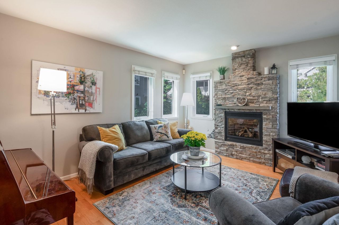 Experience traditional charm on the sunny porch of this unique townhouse. With no direct views into other homes, it offers a private, sunlit oasis. The corner unit ensures abundant light, garden views, and a spacious patio. The main floor features open living spaces, a gas fireplace, and French doors to a deck. Upstairs, find two large ensuited bedrooms, including a roomy primary bedroom with flex space. The lower floor boasts a utility/laundry area, a sizable bedroom with a walk-in closet, a full bath, and a family room. Updated with potential for more, this Illahee gem is close to schools, parks, and amenities. Welcome Home.