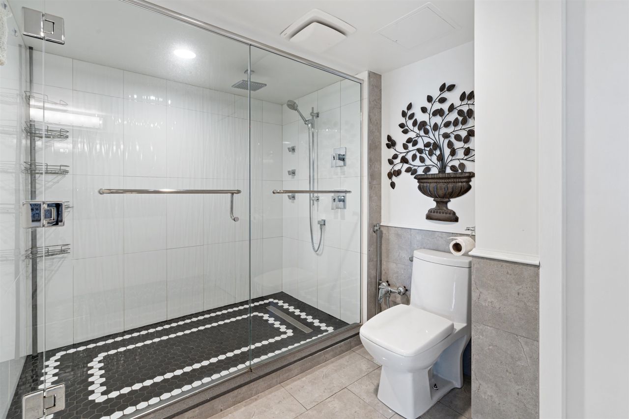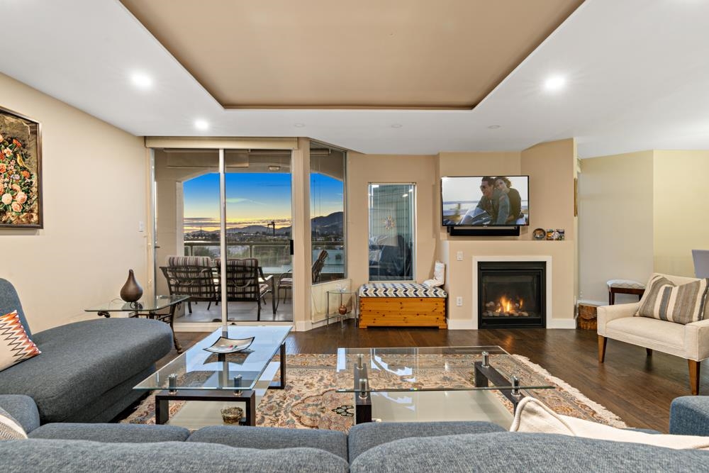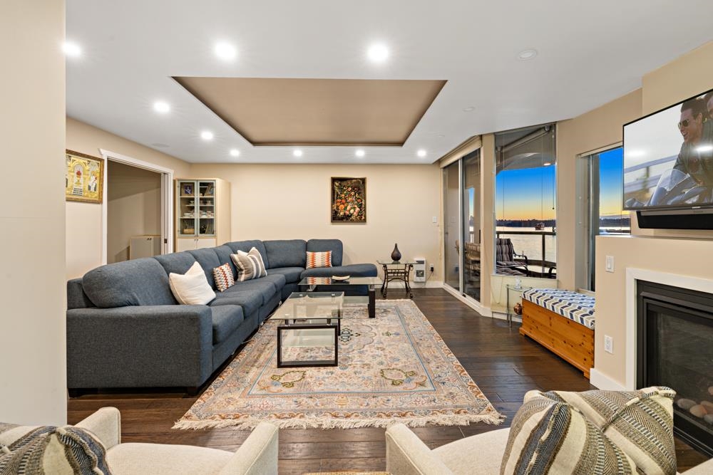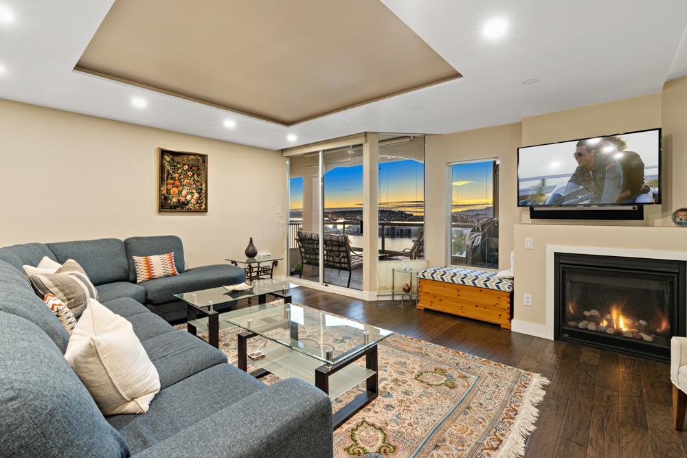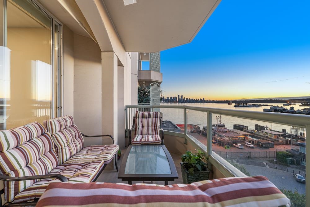 Spectacular WATERFRONT condo that features a full UNOBSTRUCTED South West PANORAMIC VIEW of the OCEAN & downtown Vancouver and North shore mountains. Split on two levels with 2 entrances boasts over 1800sqft Bosa built condo has 3 bedrooms upstairs. A large den which can easily convert into another bedroom or perfect work area. Truly open layout living room & elegant finishes of this condo. BEAUTIFULLY UPDATED the home features gorgeous hardwood floors & fully updated kitchen. Plenty of storage here plus massive storage lockers & 2 parking spots. The location is truly unbeatable in the heart of Lower Lonsdale. Enjoy watching the SeaBus and cruise ships sail in & out of the harbour as you take in glorious sunsets. Condos this size don't come to market very often don let this one slip away
