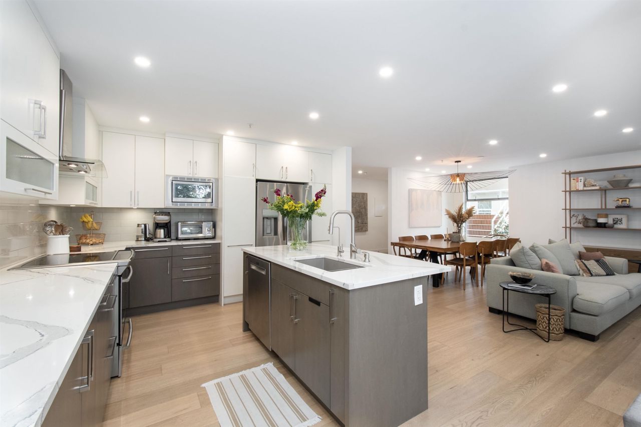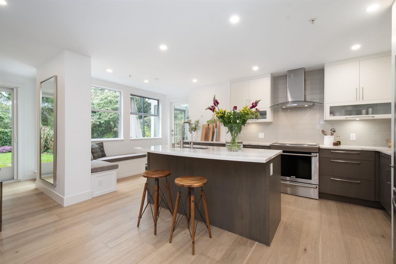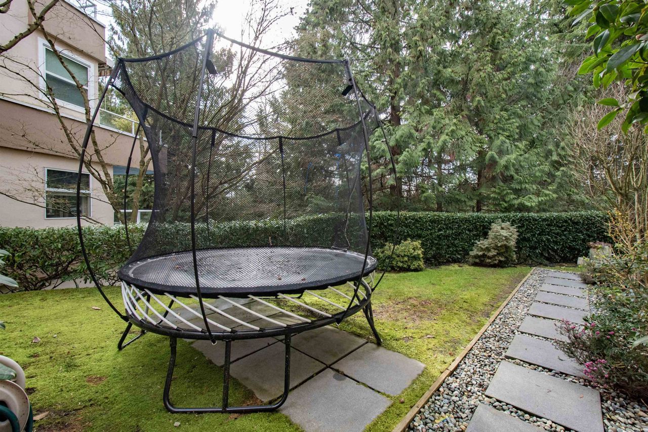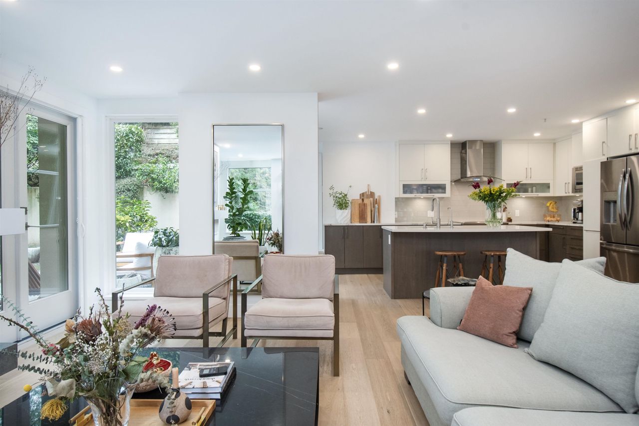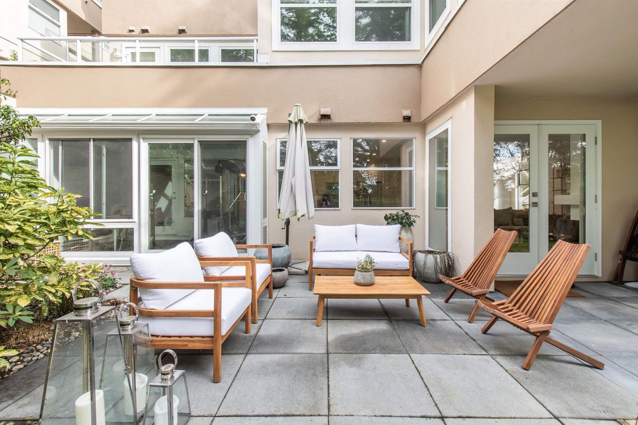 It's rare to find a one-level townhouse, especially one made of concrete! With over 1,953 Sq Ft of interior space renovated in 2018/2023 and an ample patio space leading out to a private lawn and garden. The unit has two bedrooms and a large den/bedroom with an ensuite. Features include a chef-style kitchen, hardwood throughout, a walkout patio, three parking stalls, a natural gas fireplace, and more! Located just a stone's throw from all the shops of Edgemont Village, Delbrook Rec Centre, great trails, and inside the Highlands Elementary School catchment, this is the perfect location for families and downsizers! This is a must-see townhouse!