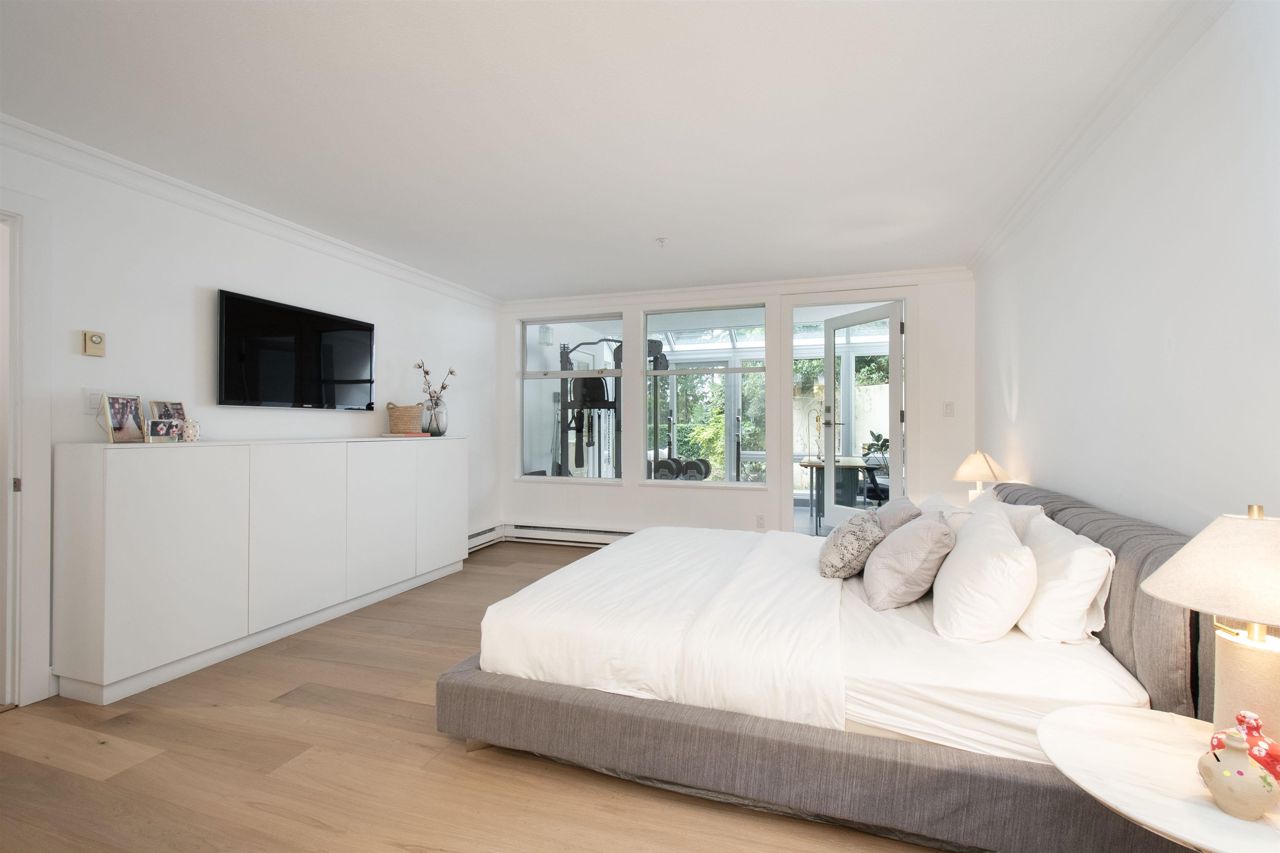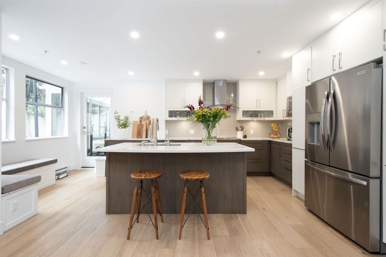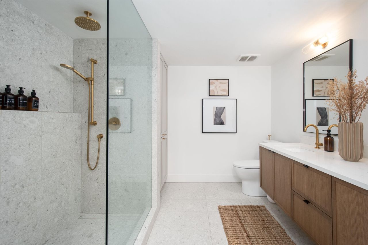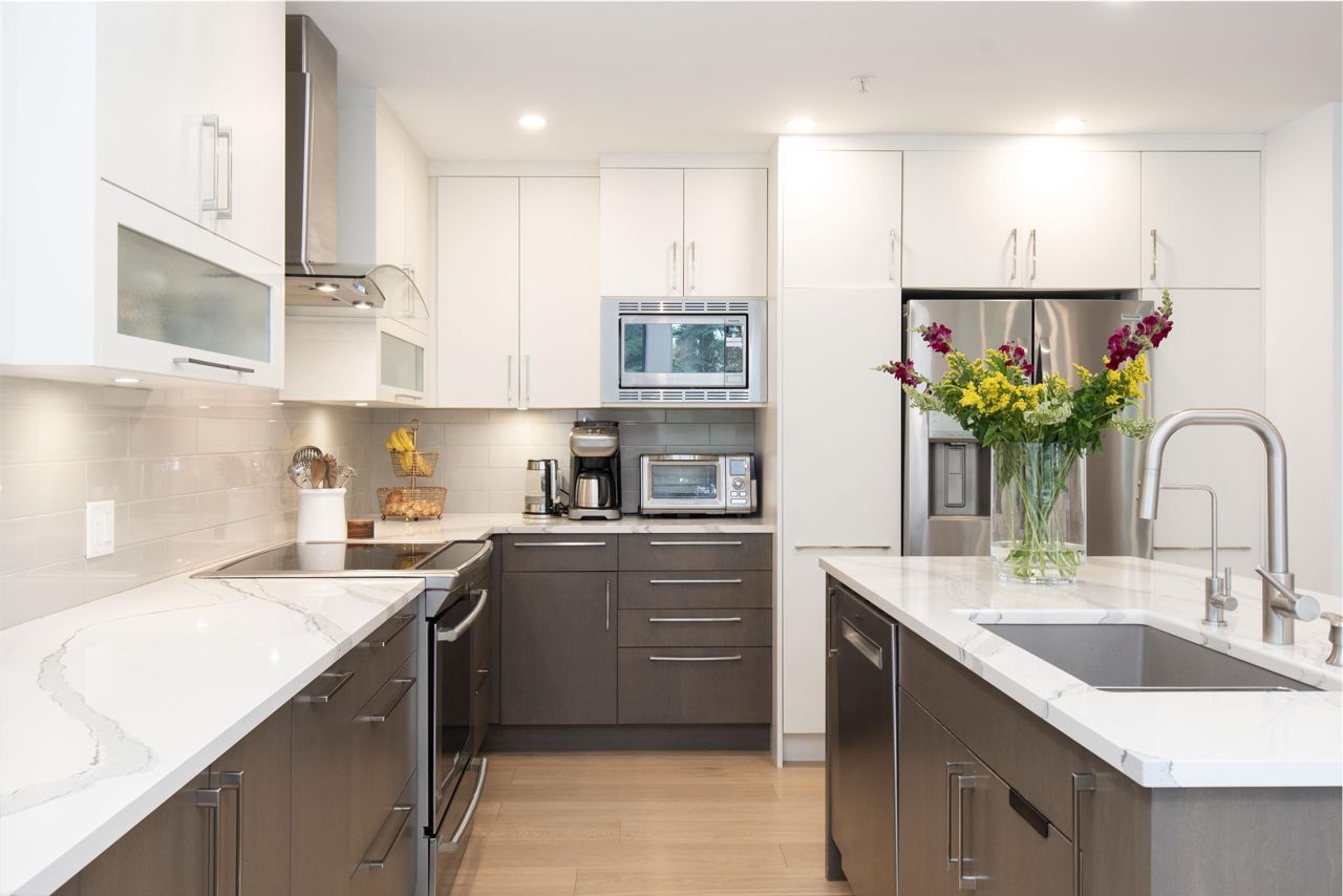 It's rare to find a one-level townhouse, especially one made of concrete! With over 1,953 Sq Ft of interior space renovated in 2018/2023 and an ample patio space leading out to a private lawn and garden. The unit has two bedrooms and a large den/bedroom with an ensuite. Features include a chef-style kitchen, hardwood throughout, a walkout patio, three parking stalls, a natural gas fireplace, and more! Located just a stone's throw from all the shops of Edgemont Village, Delbrook Rec Centre, great trails, and inside the Highlands Elementary School catchment, this is the perfect location for families and downsizers! This is a must-see townhouse!