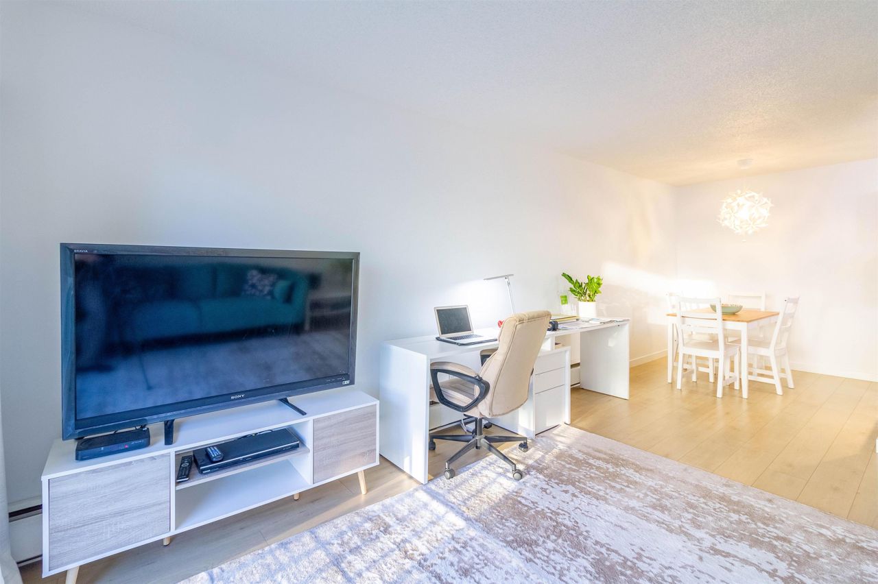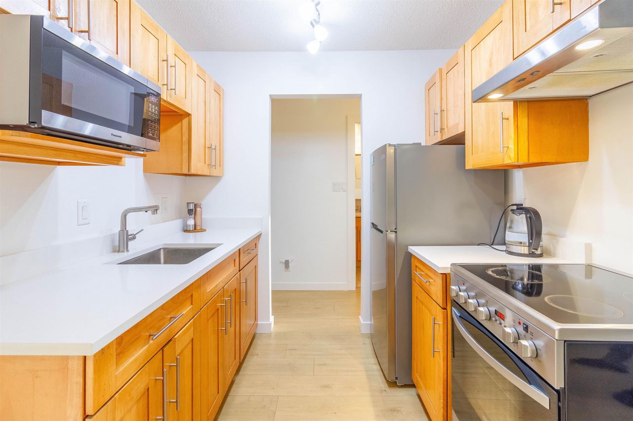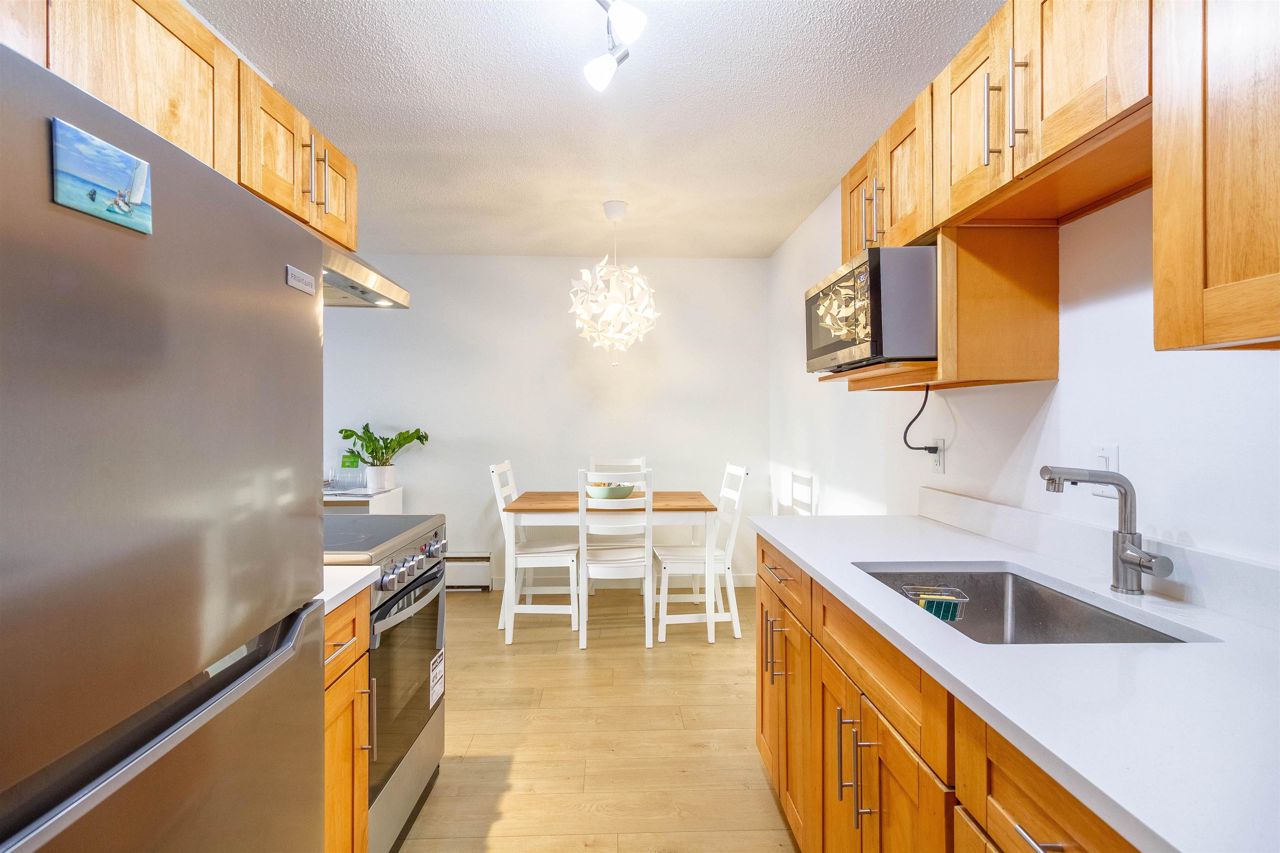 Welcome to this 1 bed 1 bath renovated home with a layout design to maximize living space. Kitchen is upgraded 2022 with quartz counters, s/s appliances and plenty of cabinet storage space. Floors are updated 2022 with broad panel laminate floors. Entertain from the open living room into the dining room or step out onto the private balcony with northern exposure on the quiet side of the street. Primary bedroom is spacious with room for home office. Comes with 1 parking and 1 storage locker. Building is cared for by owners and well maintained. Location has a high walk score and access to vibrant Lower Lonsdale community with groceries, restaurants and parks with a short 10 min walk to The Shipyards.