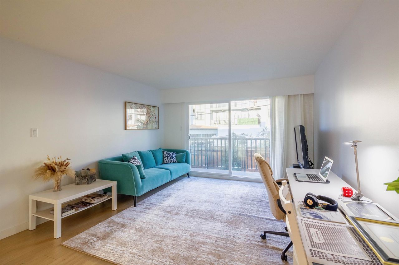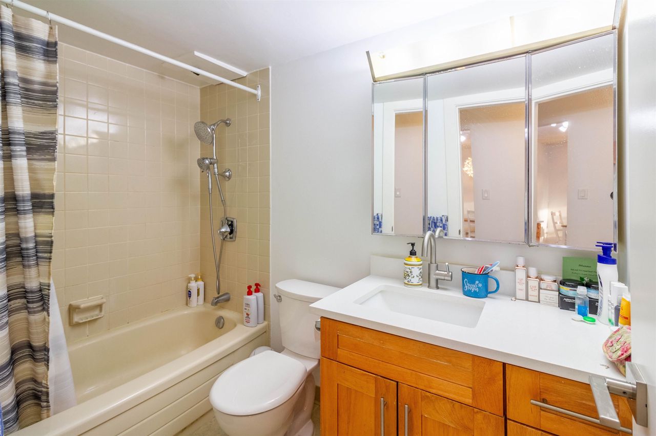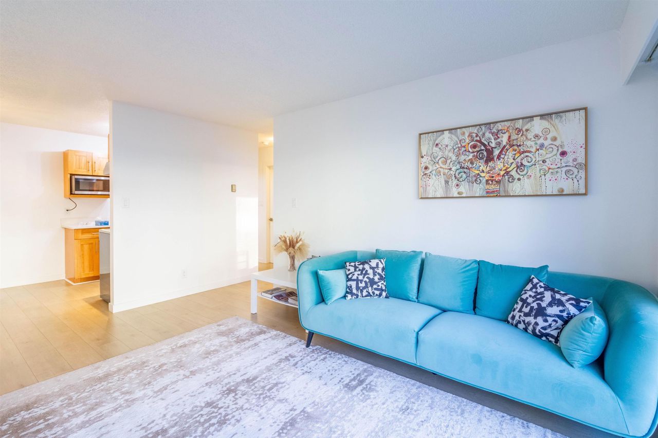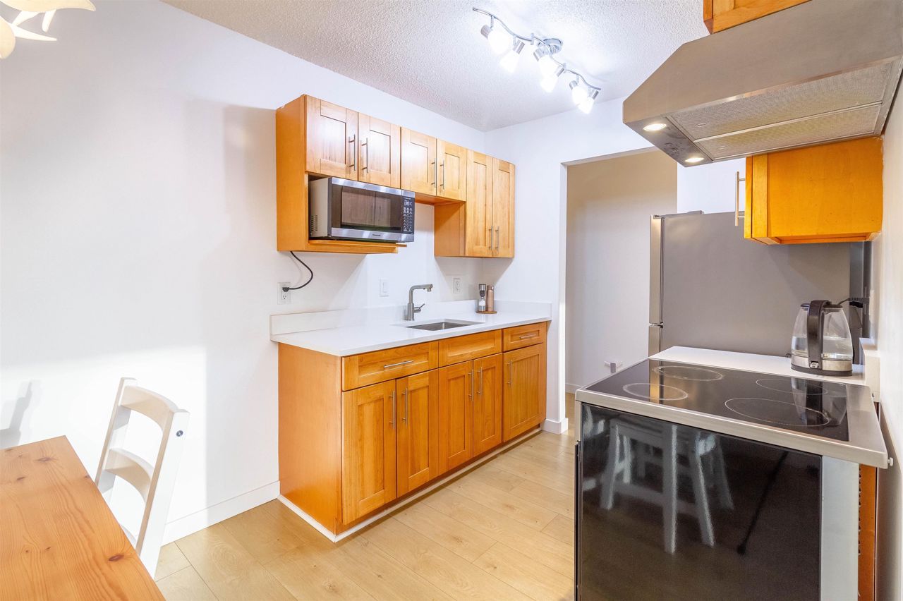 Welcome to this 1 bed 1 bath renovated home with a layout design to maximize living space. Kitchen is upgraded 2022 with quartz counters, s/s appliances and plenty of cabinet storage space. Floors are updated 2022 with broad panel laminate floors. Entertain from the open living room into the dining room or step out onto the private balcony with northern exposure on the quiet side of the street. Primary bedroom is spacious with room for home office. Comes with 1 parking and 1 storage locker. Building is cared for by owners and well maintained. Location has a high walk score and access to vibrant Lower Lonsdale community with groceries, restaurants and parks with a short 10 min walk to The Shipyards.