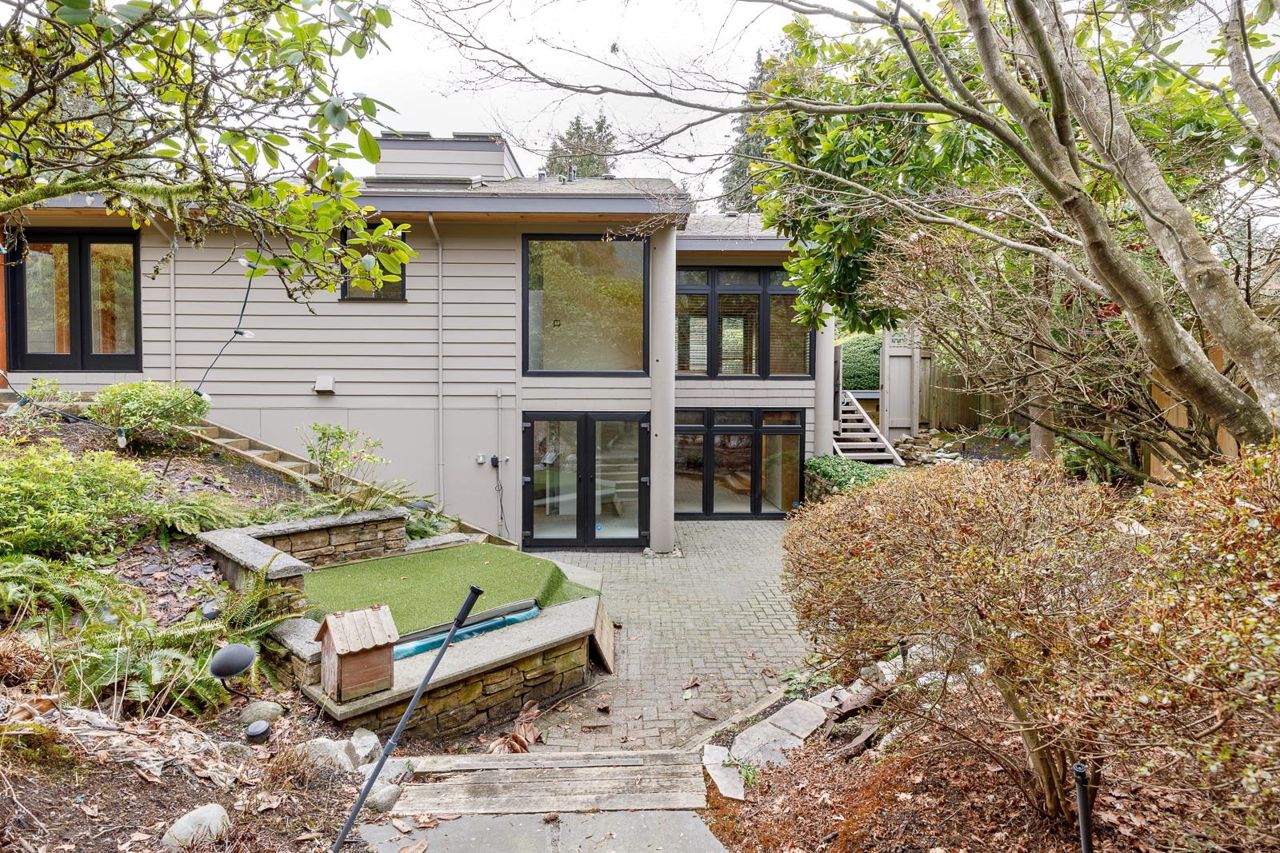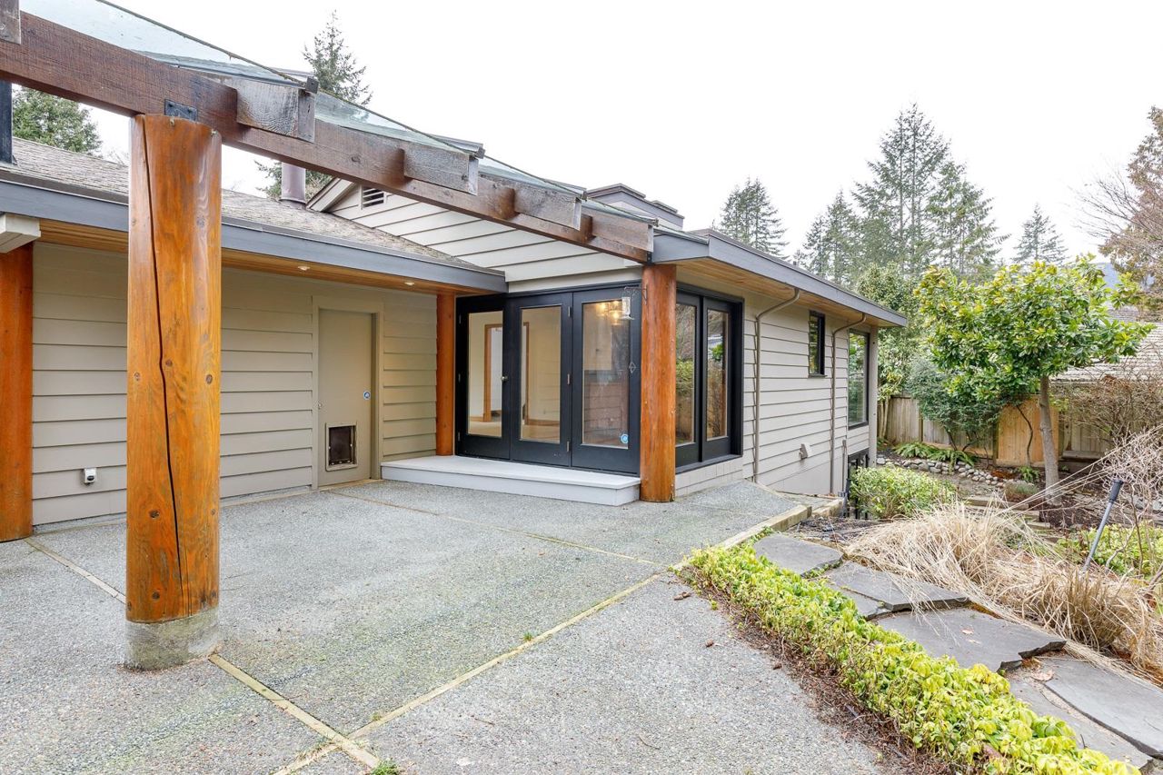 Welcome to this lovely home located at Canyon Heights in North Van.This former Architect-owned beautiful Rancher offers 3 bed&3 bath.Tailor-made for enjoying indoor to outdoor w/ covered patio, deck, fishpond, and beautiful fenced gardens encompassing this well-maintained house.Spectacular open floor plan,big windows with lots of natural light.Double French Doors lead out onto a private patio and mature landscaped yard.Ensuite master bedroom on main floor w/ SN window and access to wood Deck. Second bedroom locate don garden level w/ its own access to Fenced Backyard. Media Room doubles as a guest bedroom w/ built-in Murphy bed. Office w/ plenty of built-in cabinets. Best location walking distance to Edgemont Village w/ everything you need! Well Known Handsworth School Catchment!