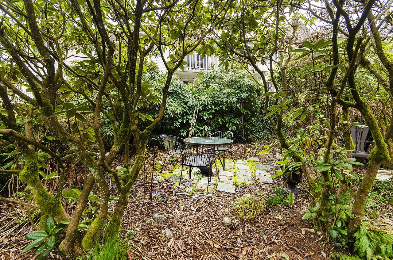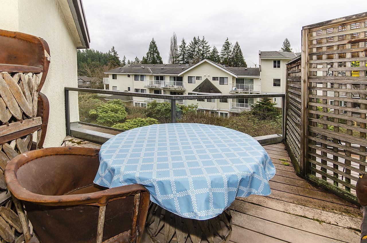 Picture this-a two level 1100 sq ft apartment with two beds, a full bath and storage/den up and living, dining, kitchen and 2 piece bath on the main. Add an oversized deck overlooking a private "secret garden" with west exposure for a dappled, summer sun. Enjoy the quiet, peaceful enjoyment of the quiet side of the concrete building or venture downstairs to coffee shops, restaurants, kayak adventures and hiking. Special bonus-this is the penthouse top floor of a concrete building! Live the Deep Cove dream!!! Tenanted . Showing Tuesday April 18th at 12:30 PM by appointment
