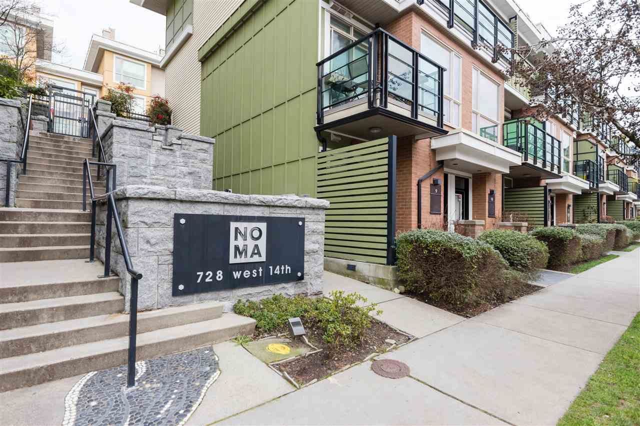 Prime spacious 2 bedroom and 2 bath townhouse at the popular Noma Development by Adera. South facing END UNIT at the front of the complex creates a very bright home. If you enjoy outdoor entertaining then this unit is for you. 2 patios off of the main living area and 1 off master bedroom in addition to a huge 450 sq ft ROOF TOP DECK with views to the west and Lions Gate Bridge. BBQ's allowed creating an outdoor living space second to none. Features include engineered hardwood floors throughout stainless appliances, granite counter tops and crown moldings. Underground parking and storage locker. Pets and rentals allowed. Close to all amenities on Marine Drive, transit & walking distance to Larson Elementary and Carson Graham high school.