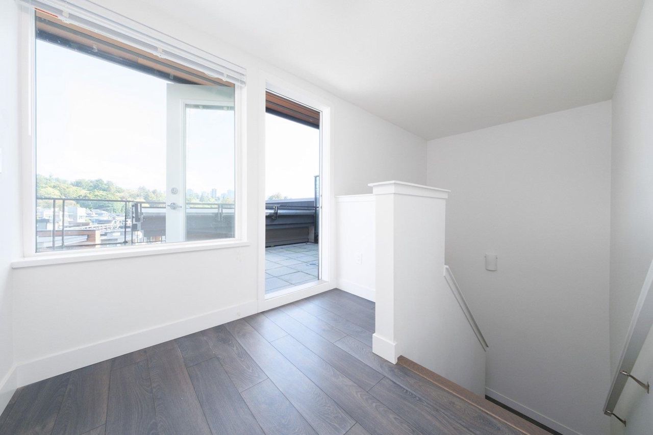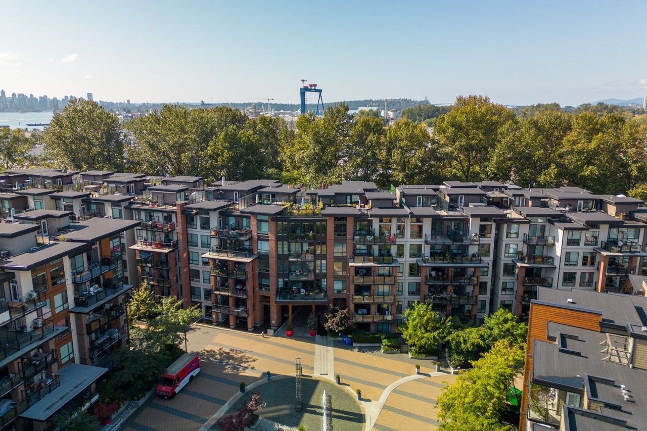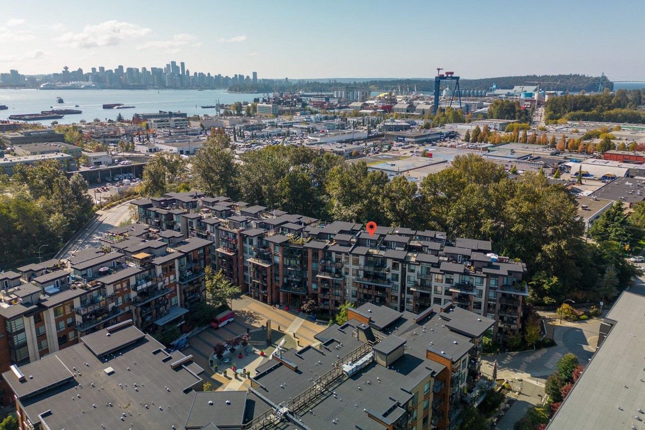 Wow Wow Wow! One would be hard pressed to find a one bedroom condo built in the last decade with outdoor space like this one in North Vancouver! The unit was upgraded during construction by the original purchaser which included waterfall quartz counters, upgraded appliances, cabinets, and flooring. With soaring 12'10'' ceilings in the living room and direct access from the suite to the private roof terrace, this suite is a 10/10! Built by reputable Adera the thoughtfulness of this development is evident from the LEED certification to the fantastic gym, the art installations and the West Coast Modern architecture, the residents enjoy peace and comfort as well as easy access to Lonsdale Quay and the Trans Canada trail at your doorstep.