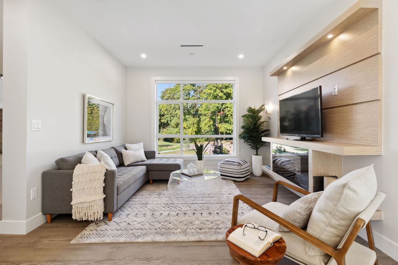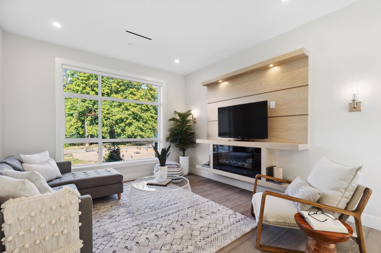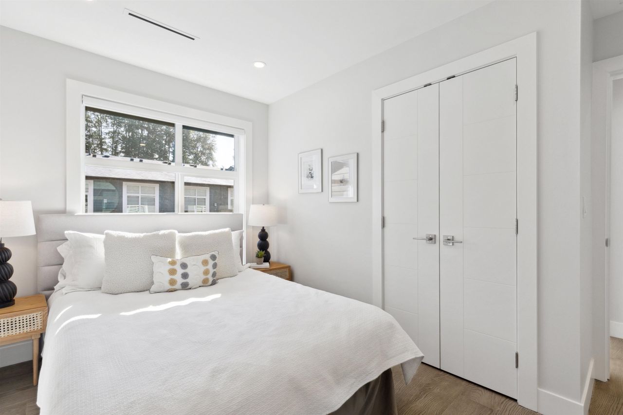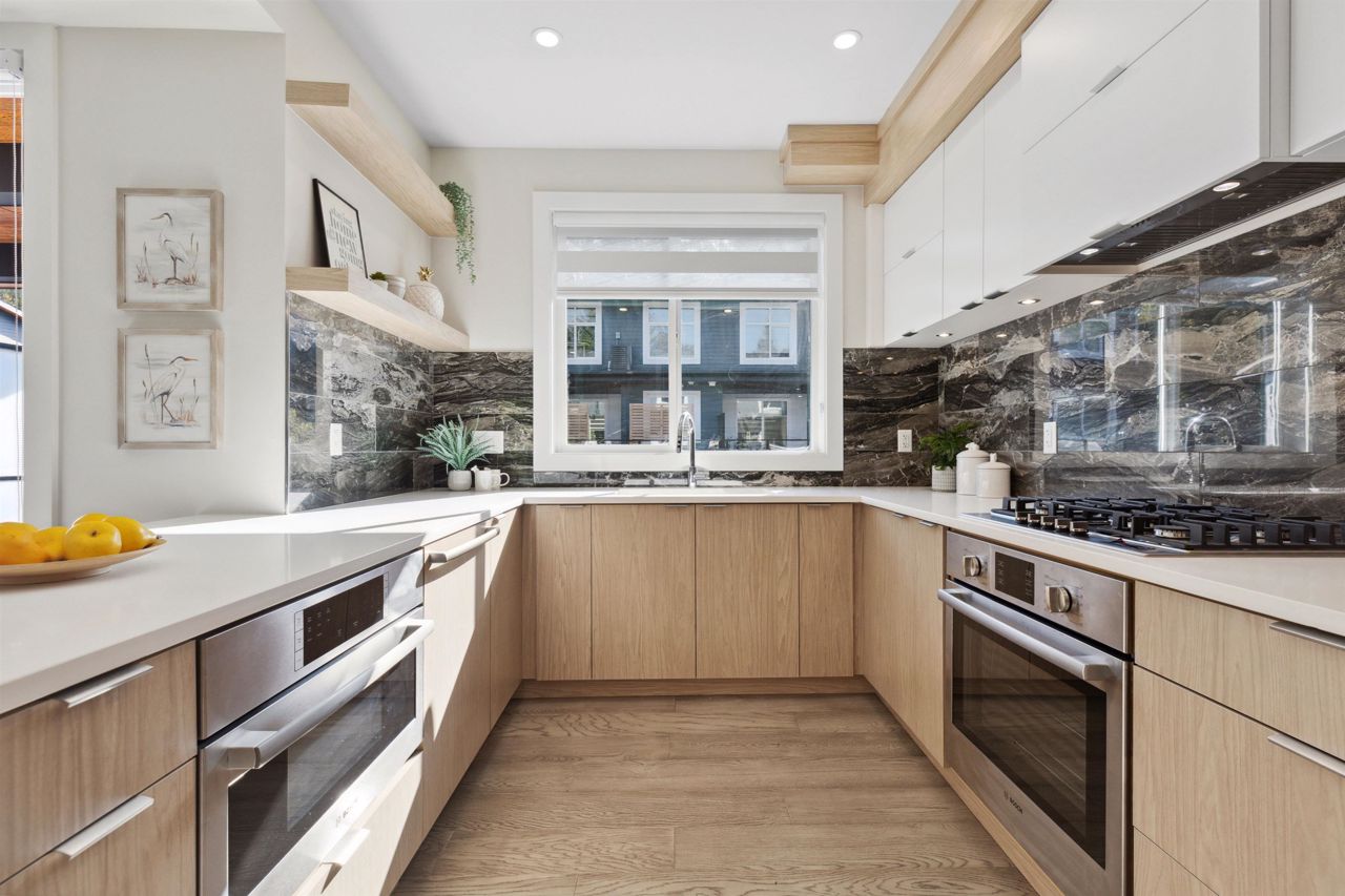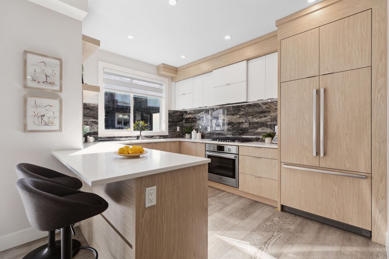 Ideally situated facing the park in the picturesque Lynn Creek neighbourhood, this 4 bedroom, 2.5 bathroom townhome includes a double car garage, additional storage & EV capability. This home is ideal for the growing family, with an open kitchen featuring a Fisher & Paykel integrated fridge, Bosch oven w/gas cooktop, Bosch integrated dishwasher, pantry & quartz countertops. Attention to detail is abound with the custom millwork throughout, radiant infloor heating and A/C. Have peace of mind with the private entrances, security system & 2-5-10 New Home Warranty. This floorplan is a 10/10 and is a must see!