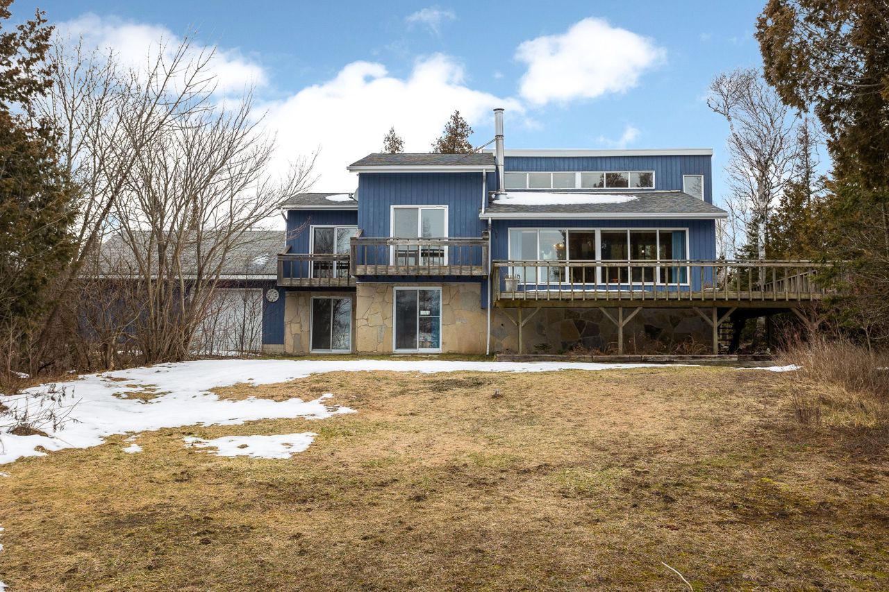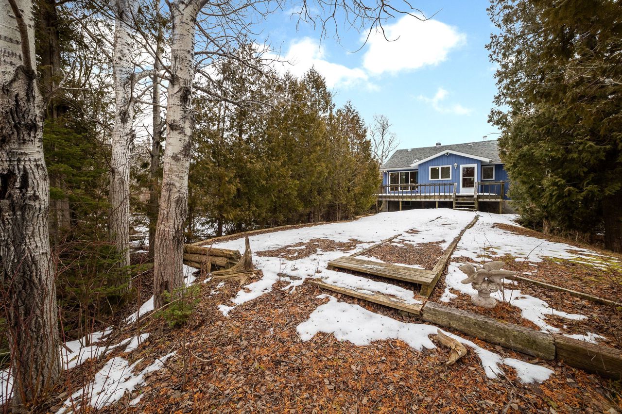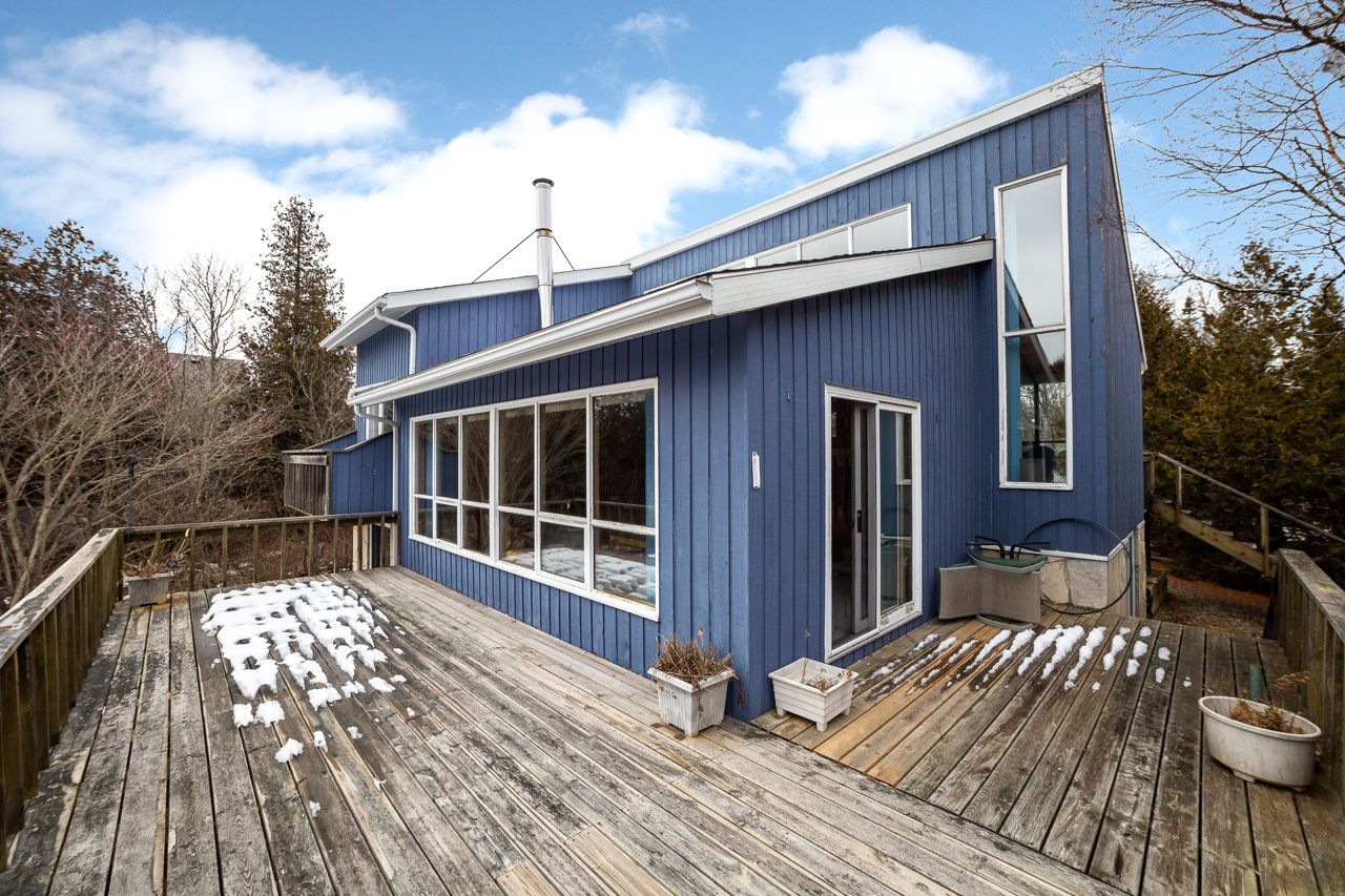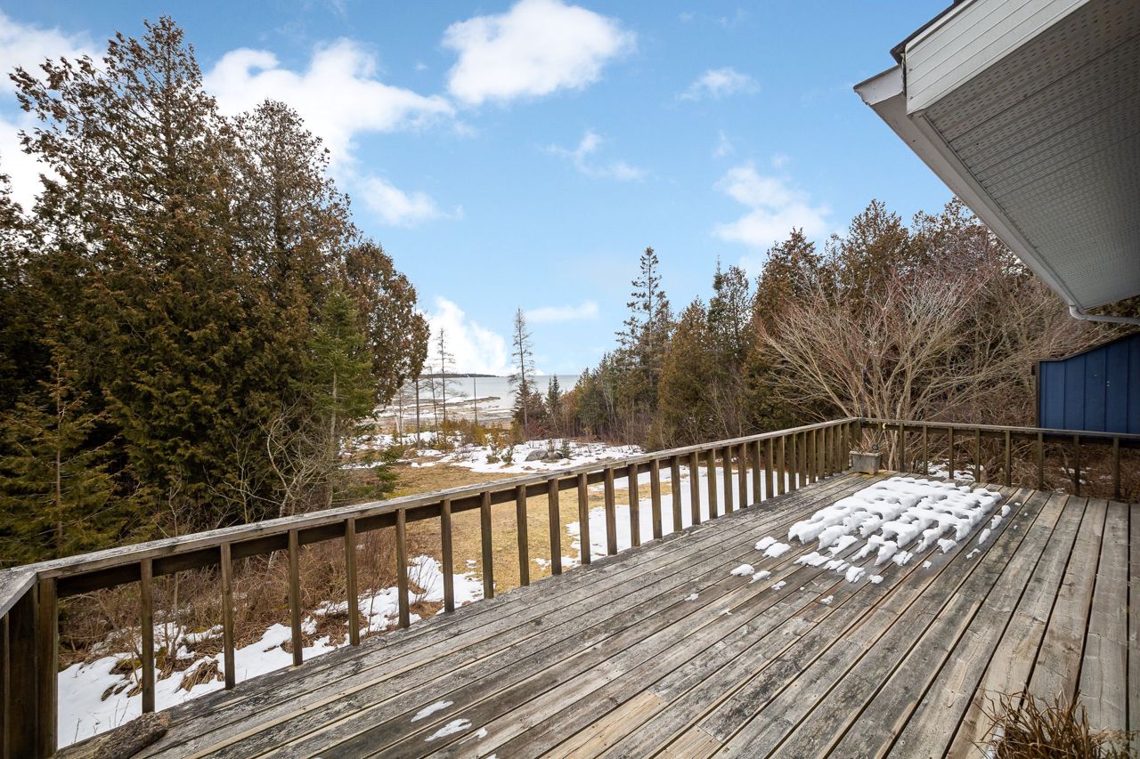 WATER FRONT!GREAT LOCATION! 4 season Viceroy Lakelands Home or Cottage situated on well treed lot with Southern Exposure overlooking Lake Huron. Kayak pristine limestone shores at the Tip of the Bruce Pen. Easy water access. Lrg living rm with vaulted ceilings & expansive windows making for bright space and stunning lake views. Patio door access to Lrg lakeside deck. Woodstove for chilly evenings. 3 generous size bdrms(2 with waterside balconies), spacious kitchen with breakfast bar & 3pc bath. The custom metal spiral staircase with nautical rope handrail leads to fully finished family room with a bar area & patio doors leading to forest side of home, 2 bdrms, with walkout on lakeside. Lrg 4pc bath feat laundry facilities. Access to Lrg 21x12 unfinished area which houses mechanical equipment, extra fridge & freezer and for storage space. The 24x24 attached 2 car garage offers space for toys storage with 3rd overhead door on lakeside offering access to move items to and from shoreline.no current wett certificate on wood stove, water softener & iron filter not being used and in AS IS condition.