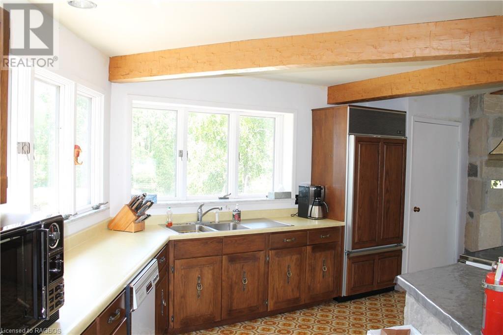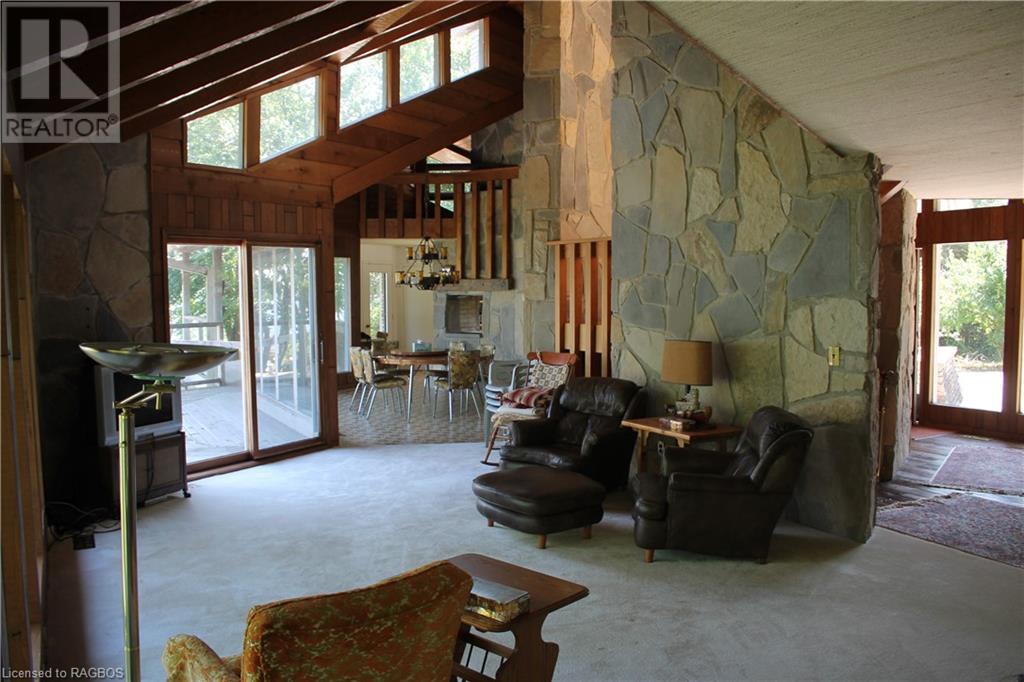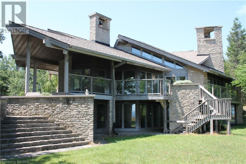 A piece of paradise might best describe this truly unique Bruce Peninsula large property holding. With over 500 acres of forest lands, open fields, and over 2,900 feet of Georgian Bay waterfront there is reason to get excited about the possibilities. Step back in time with this unique 3000 square ft stone built home that has a truly Frank Lloyd Wright influence in the design. With lots of open space, low pitches roof lines and a central stone fireplace this very Prairie style architecture blends beautifully into the escarpment overhang. Additionally, two pole barns with cement floor reside on the property; one is steel sided, one is wood. Take your breath away with the ever expanding vistas over the Georgian Bay horizon and sit in the quiet of the moment as nature surrounds you. This is truly the Bruce Peninsula at its best. (id:22211)