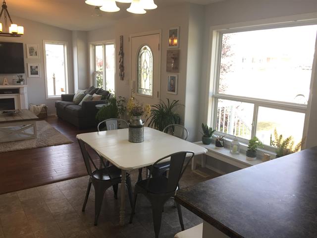 Family Friendly! Located on a corner lot very close to a K-4 school is this beautiful home with many updates and a gorgeous open-concept living area that you'll love. The spacious kitchen has ample white cupboards, subway tile backsplash and opens to the dining area (with great natural light) and into the living room. The master bedroom has plenty of room in the walk-in closet, and boasts a 4-pc ensuite. Downstairs is the great family/rec room and 4th bedroom. Put your own finishing touches on the rest of the basement - there is plenty of room! The nicely landscaped yard is a kid and parent oasis. It has well-designed decks a functional lounging space and an awesome play fort with zipline! The 26' x 28' detached garage with 10' ceilings really completes this package! A must see!