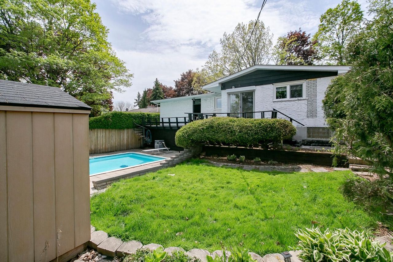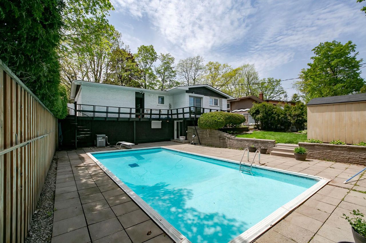 Welcome to this Bright and Spacious Mid-Century Style Modern Bungalow Located On A Large 60' X 125' Lot On A Quiet Street In the most Desirable Falgarwood Neighborhood. Fully Renovated with Vaulted Ceilings & An Open-Concept Layout Throughout the Main Floor. Hardwood Floors, Smooth ceilings, Pot Lights Throughout the Main floor. Living/Dining combined. Modern Kitchen with Stainless Steel Appliances, Quartz counters/Backsplash and a Huge Island. Primary Bdrm with 5 Pc Ensuite and Open concept Closet with Organizers and Walk out to Deck Overseeing the Pool.. 2 More good size Bdrm with closets. 4 pc wshrm. Large open concept Basement Apartment walk out to the huge Inground Heater pool.. Full Kitchen, 4 Pc wshrm and 2 good size Bdrms. Newer Electrical panel, freshly painted, New plumbing, Window Blinds and list goes on and on. Offers to be presented on May 18th 2023 at 6 pm..All New Electrical & Plumbing, All Elf,s, SS Appliances, Sump pump in bsmt Bdrm under the B/I Desk. In Ground Heated pool and equipment in as is condition. sprinkler system, garden shed, walk to trails, transit and schools.close to hwys