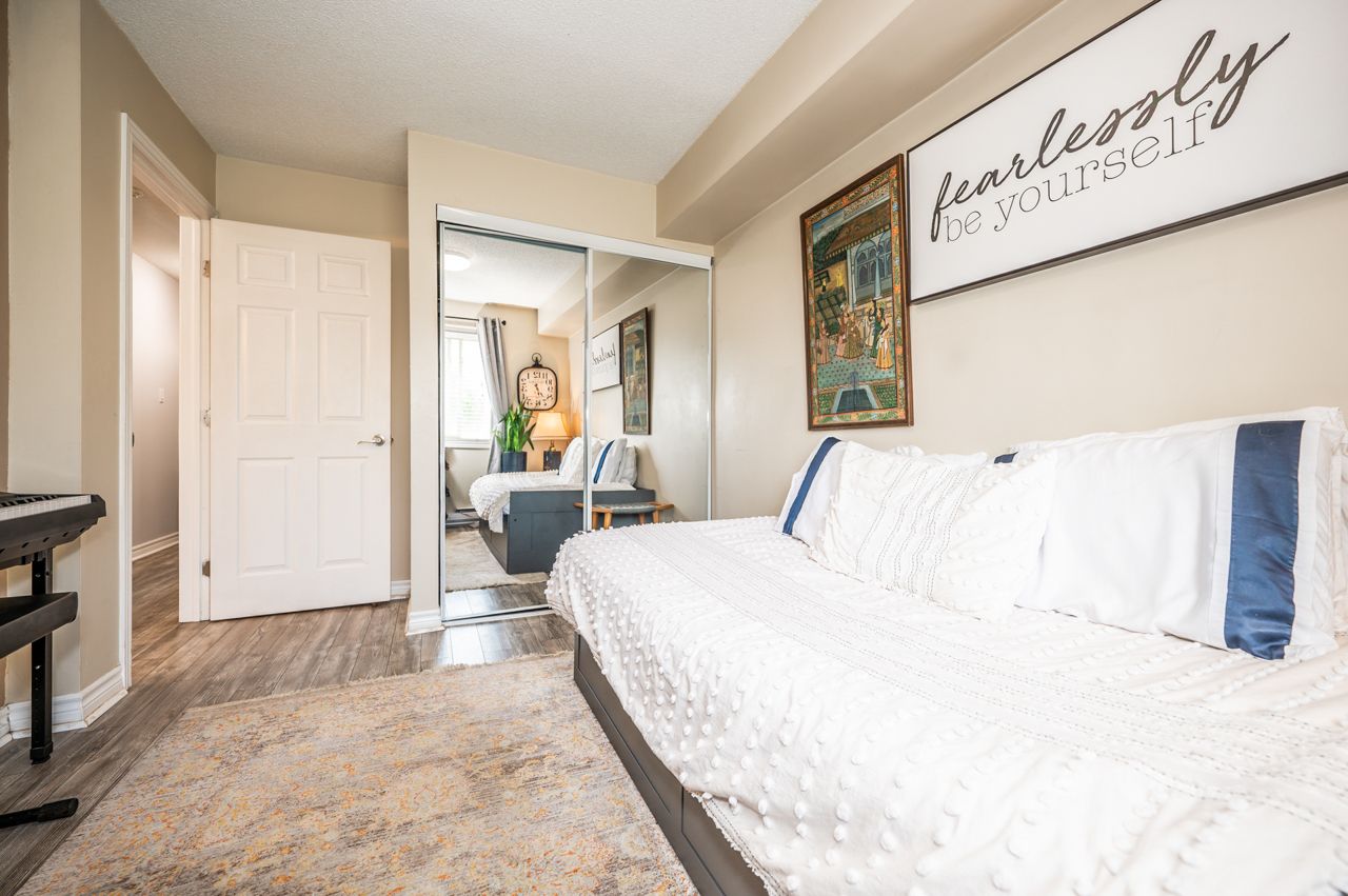 Incredible opportunity in the Prestigious Glen Abbey Community! Perfect for First-time home buyers, investors & downsizers. Rarely offered 3 bedroom 2 bath with recent renovations! Freshly painted and ready to enjoy! Newly renovated Vanity, backsplash and flooring! Private yard with en-suite locker and extra storage at entrance of the unit. East access to highways, shopping schools, walking paths, GO Train and across from Glen Abbey Rec Centre.Extra Storage room on Terrace