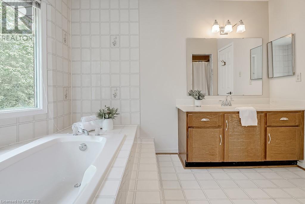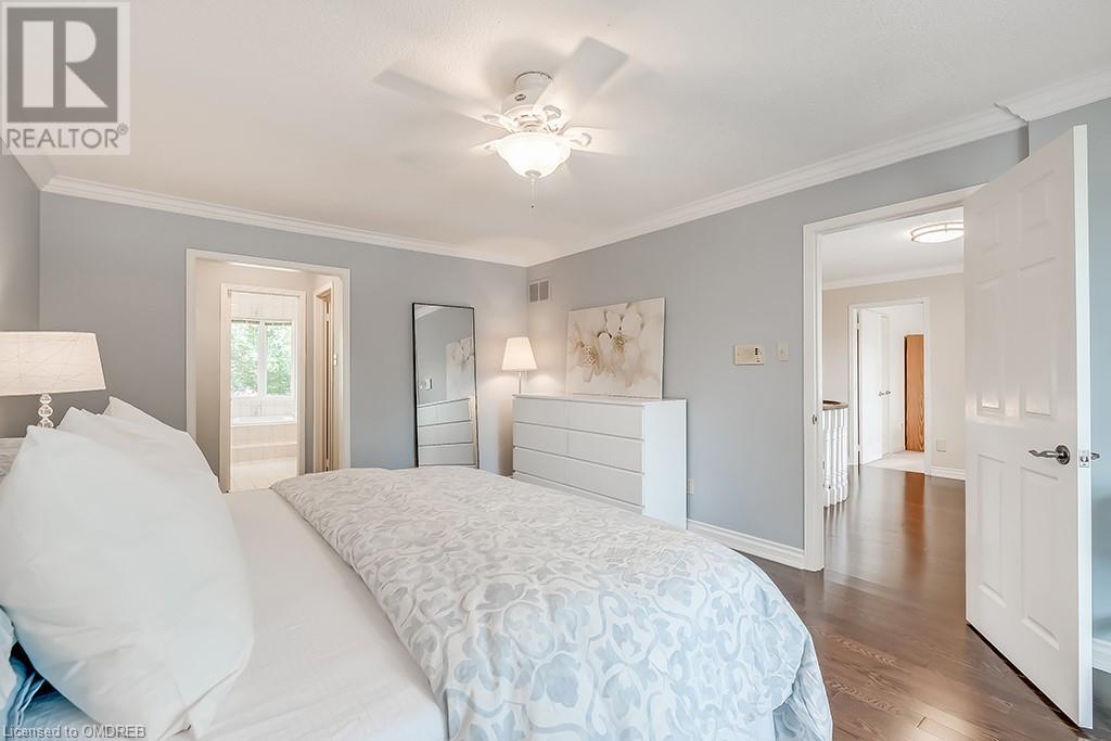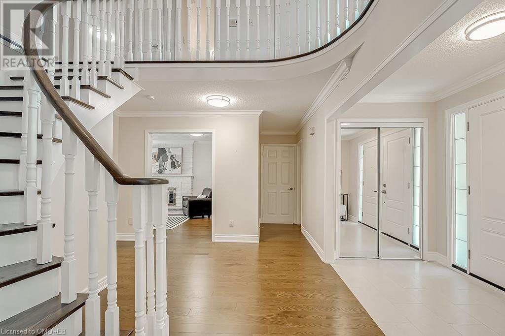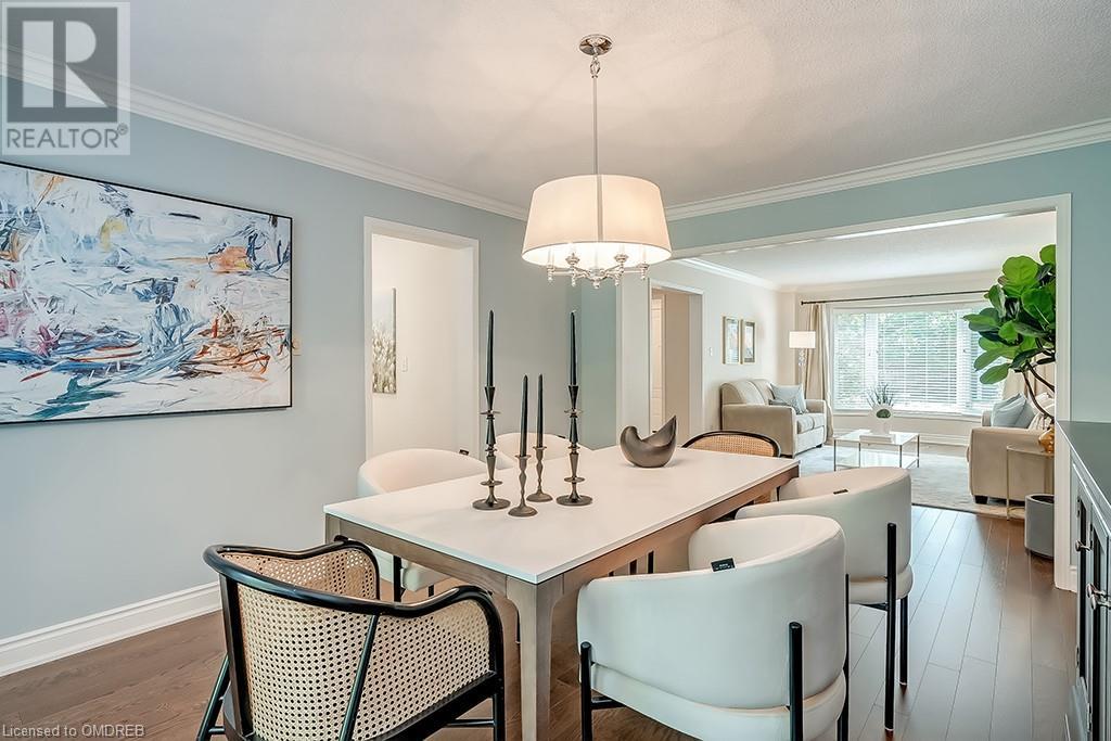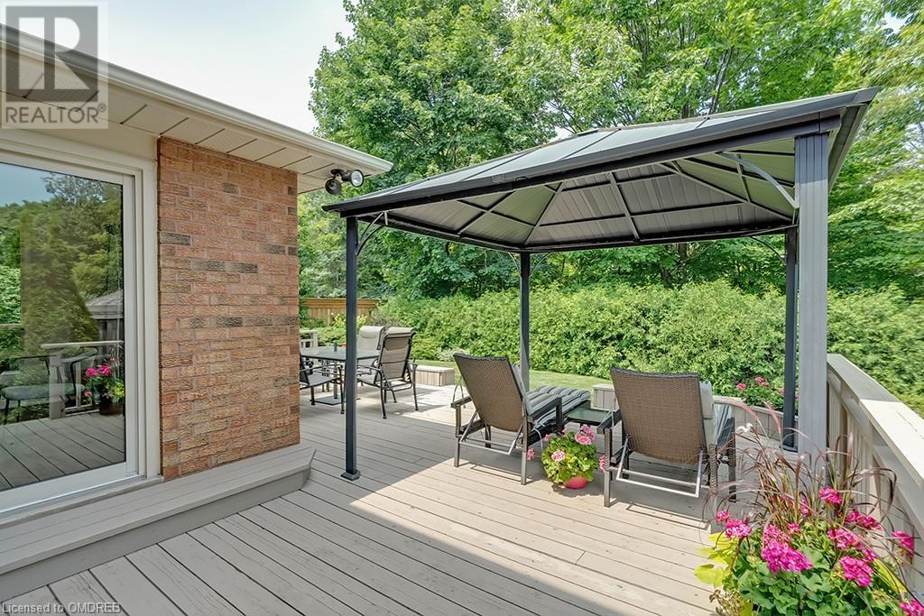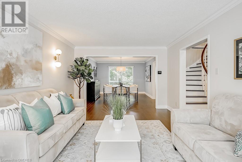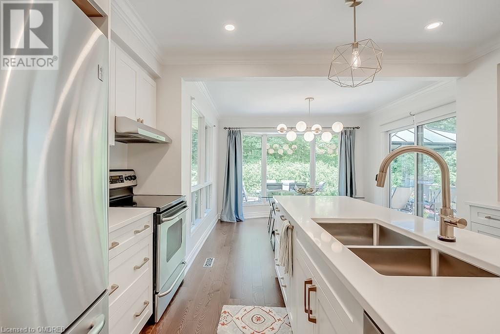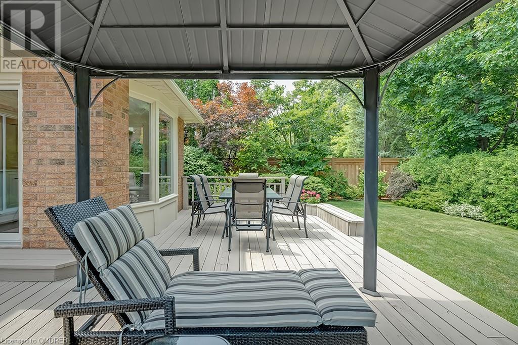 Imagine sitting in your private backyard on the deck with view of trees!! A Prime address on a pool-size wooded lush ravine lot in the heart of Glen Abbey. Spacious, elegant & updated home with a traditional floor plan is waiting for a new family to enjoy highly-rated schools, the Glen Abbey Golf Club, & all the family adventures this community has to offer. Experience a spacious elegant vibe the moment you step into the separate vestibule & view the grand entrance hall with an impressive staircase. Formal entertaining will be a breeze in the bright living room & adjoining dining room with crown mouldings & hardwood floors. The gorgeous renovated Aya white kitchen will inspire the resident chef with an island, breakfast bar, quartz counters, pot lights, stainless steel appliances & breakfast room with W/O to the deck & private rear yard. Stoke up a crackling fire in winter or W/O to the deck in summer from the family room. Laundry room with inside entry to the garage & a beautifully renovated powder room. Upstairs you will find 4 bedrooms & 2 full bathrooms. Primary bedroom offers a 4-piece ensuite bath with a soaker tub & separate shower. Recent improvements - Vintage ¾” solid hardwood floors, renovated kitchen (2022), foyer tiles (2020), roof re-shingled, powder room renovation, left side of fence replaced (2021), new air conditioner (2022) & most lighting replaced (’20-’23). Newer front entry door system & most windows except bay window in ensuite & windows in basement and living room. Extensive crown mouldings & hardwood floors on main floor, upper hall & primary bedroom. A 5-minute drive to hospital & GO Station, 2-minutes to QEW. A Must See! (id:22211)