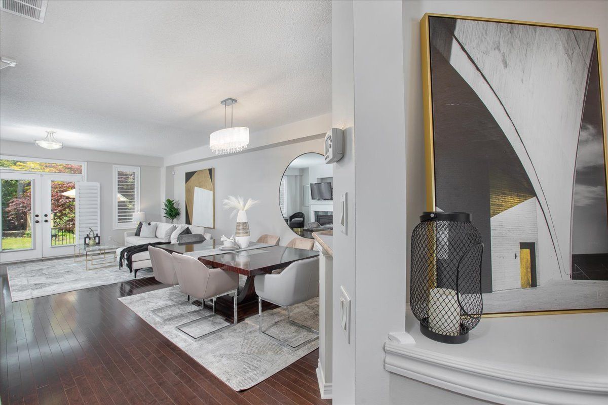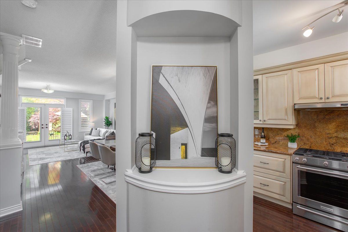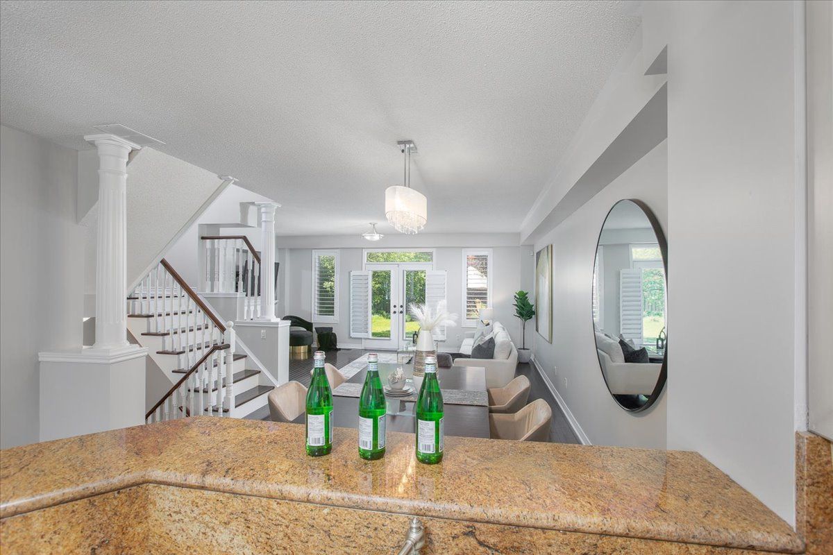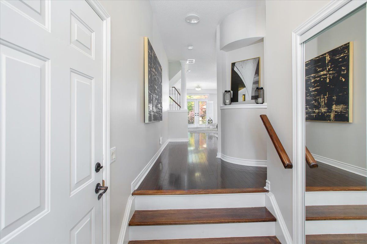 Welcome to this beautiful executive town in the sought-after Joshua Creek! 2870 sqft of combined finished living space! In district to top-tier schools, close to trails/parks, community centres/tennis/rinks and walking-distance to shops, restaurants and fitness. This stunning and modern home offers a bright, open and spacious layout w plenty of windows throughout, including a 12ft cathedral front window (2021) exposing a unique upper-floor Juliette balcony. W/O through beautiful French doors (2021) to a large peaceful backyard with deck, lawn and gardens. Large primary bedroom w elegant newly-renovated 5-piece ensuite w heated floors and custom glass (2020). Stylish rooms with custom shutters (2022). Refined second bathroom (2023). Upstairs laundry. Hardwood throughout common living spaces. S/S KitchenAid/Bosch appliances, granite counters/backsplash, and spectacular vaulted breakfast-nook. Spacious finished basement (2021) w sep office and plenty of storage. Indoor access to garage.Situated in close proximity to major highway arteries for quick access and a significant time-saver for any commutes. A great opportunity to become a part of the prestigious Joshua Creek community and all that it has to offer!