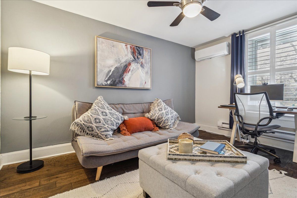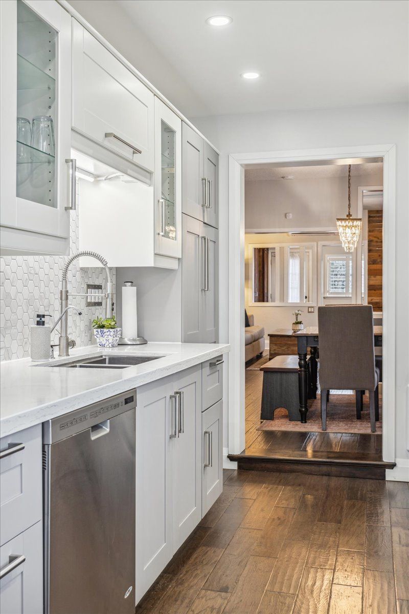 Welcome to this elegant semi-detached home situated in the lively heart of Kerr Village. This captivating home is in an enviable location, just steps away from a plethora of shops, dining options, the tranquil Lake Ontario, scenic parks, and the dynamic downtown Oakville. With proximity to transit hubs such as the Go station and major Highways. Renovated from top to bottom this residence showcases a contemporary open concept living and dining space, ideal for hosting gatherings or enjoying quiet nights in. Featuring a charming gas fireplace for both warmth and ambiance, gleaming hardwood floors throughout, and a sleek kitchen equipped with stainless steel appliances and quartz countertops, Step through French doors to the updated backyard patio, a welcoming front deck and adorned with new California shutters throughout. Don't miss out on the chance to experience the epitome of comfortable and stylish living in Kerr Village.