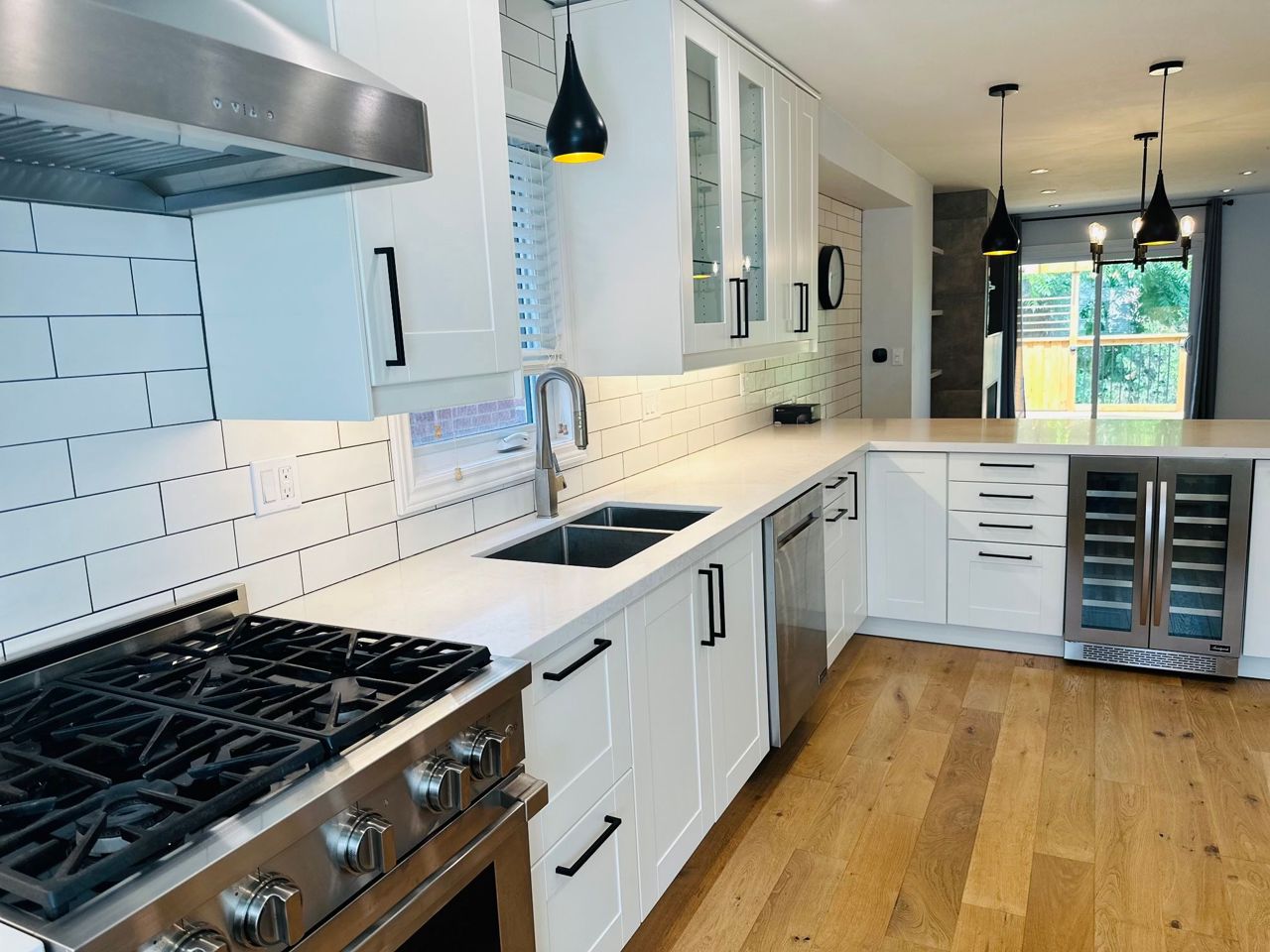 fully detached totally renovated three-bedroom home located on family-friendly court steps from Kerr St village, you'll find a diverse selection of award-winning restaurants and independently-owned retail boutiques, and a short walk to Downtown and the Harbour. The home's open concept is perfect for entertaining and family get-togethers. The features include oak flooring throughout the main & second floors. The lower level has a fabulous family room. Enjoy the view of beautiful mature trees.