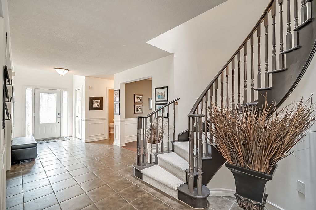 Exceptional 4 Bed 3 Bath Family Home in Sought After River Oaks. Located on a quiet crescent w/ Mature Trees + curb appeal, you will be impressed at first sight. Open Concept layout w/ an updated kitchen, large eat-in area open to the great rm + sep., dining rm. The kitchen features quality appliances, lots of cabinet space, beautiful breakfast bar + a separate eat-in area. The spacious Great rm is highlighted by a centered wood burning F/P + large windows allowing for lots of natural light. Separate Living rm at the front of the home works perfectly as a home office. Main Floor offers tile, hrdwd + a grand 2 storey foyer, powder rm, laundry rm + inside access to double car garage. 2nd floor offers hrdwd + Cali shutters thru-out. Massive Primary suite with dbl door entry, updated 4 Pc Ensuite + W/I closet. 2nd, 3rd + 4th beds are spacious with a 5pc main bath. Open Concept LL w/ ample storage. Close to desired schools, parks, trails + mins from amenities. This home is not to missed!ABSOLUTELY NO FOOD OR DRINKS ALLOWED IN THE PROPERTY. FAMILY MEMBER HAS SEVERE ALLERGIES.