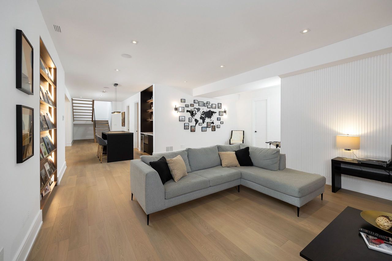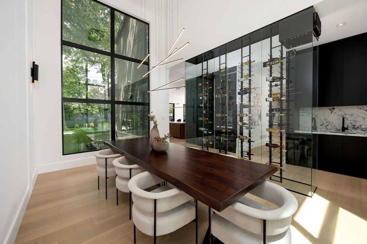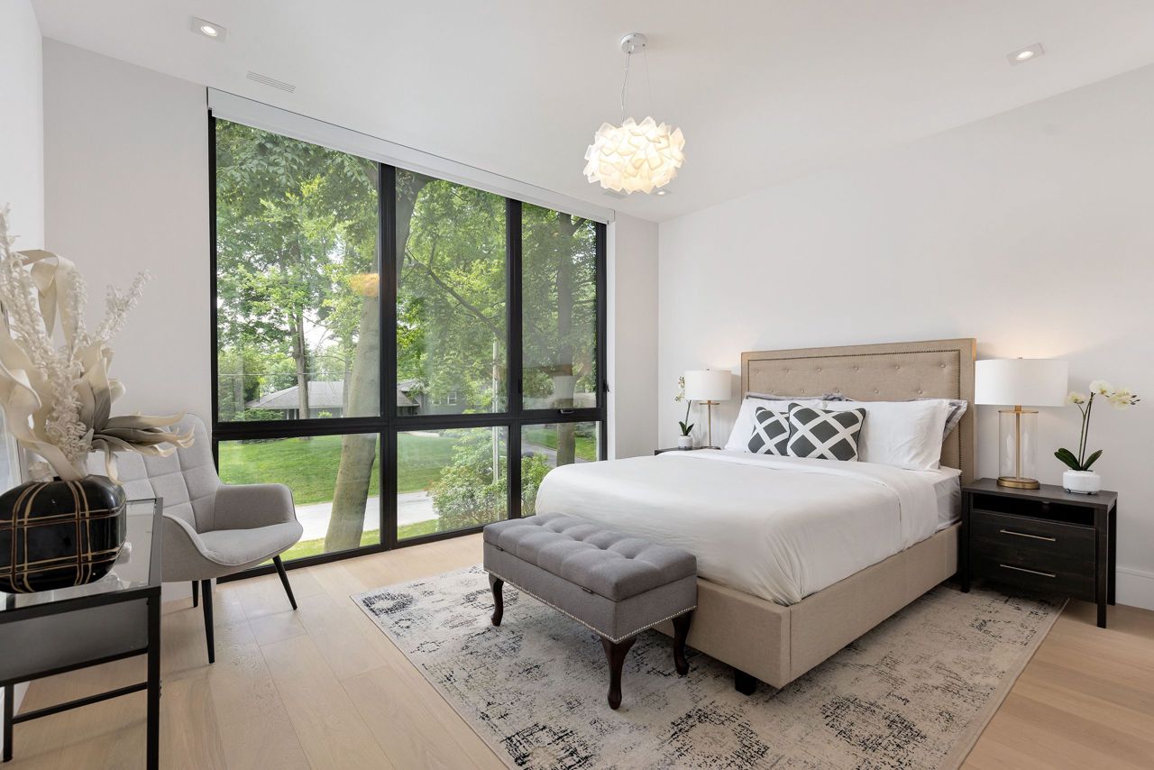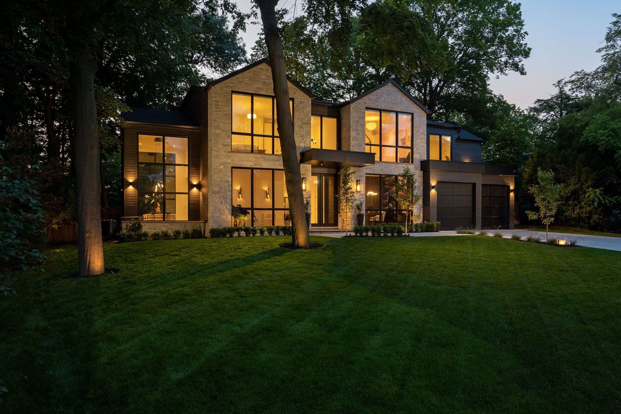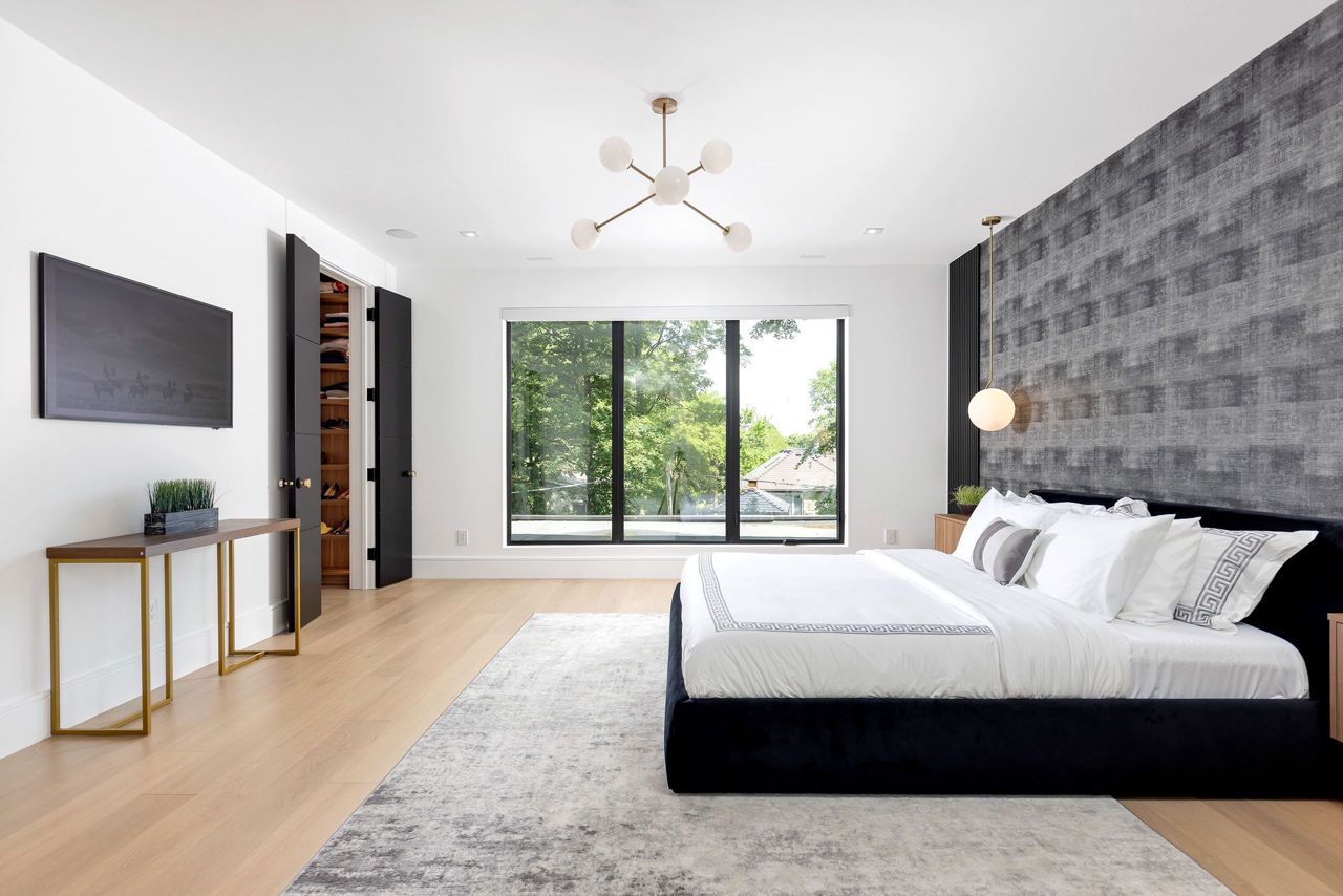 Welcome to a captivating living experience that transcends the ordinary! Newly custom-built residence offering over 7,450 sq ft of curated living space magnificently set on a 100 x 150 manicured lot with pool and triple car garage. This 4+1 bedroom, 6.1 bath home exudes elegance and refinement. The interplay of textures, materials, thoughtful finishes and detailing makes every room a showcase of modern luxury. At the heart of the home is the open concept kitchen featuring oversized commercial grade appliances with double oven, with a fully equipped hidden pantry room like none other. Finely crafted full height seamless cabinetry and a large quartz island make for an ideal entertainment space. The kitchen flows through the generous breakfast room into a light filled great room with 16 ft floor to ceiling windows and numerous sliders. Perhaps one of the most special features of this home is the stunning dining room located in a private wing adorned with a wine feature-wall, 16 ft ceiling, dedicated servery and expansive windows. The upper level offers a private double door entry to the primary suite. 5-piece en-suite with heated large format, porcelain tiles, curbless shower and freestanding bathtub. The walk-in closet featuring custom floor to ceiling seamless cabinetry with integrated lighting and smoked glass display shelving. 3 large bedrooms with walk-in closets and en-suites. A spacious laundry room with task sink and plenty of storage completes this floor. A sophisticated lower level with Radiant heat floors, oversized walk-up, bedroom with en-suite glass framed gym, steam shower, sauna, wet bar with all the fixings & a plush private theatre. Thoughtfully appointed outdoor living spaces including a covered porch with double sided fireplace, outdoor kitchen with large built in BBQ and salt water pool with 2 deck fountains. And exceptionally tasteful home with timeless modern appointments rooted in function, good taste, and expert craftsmanship.