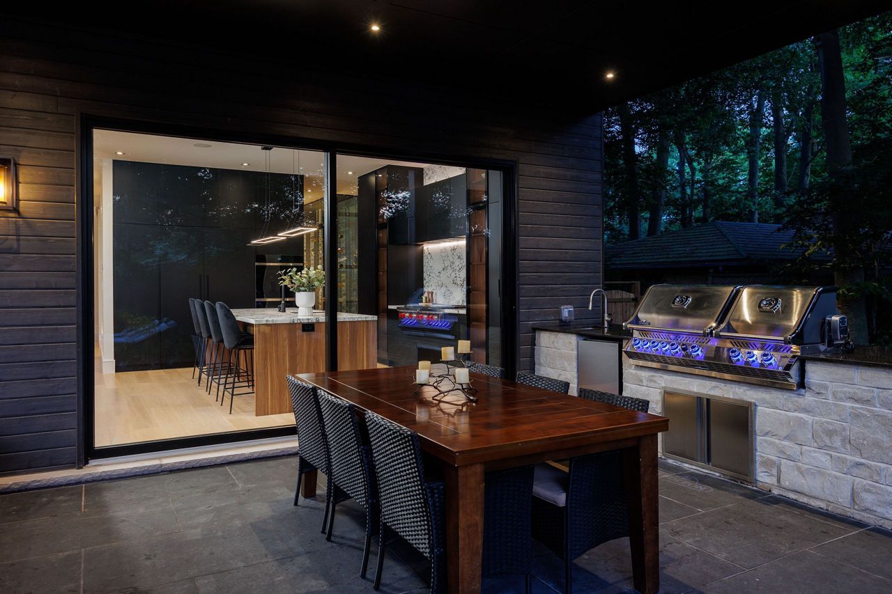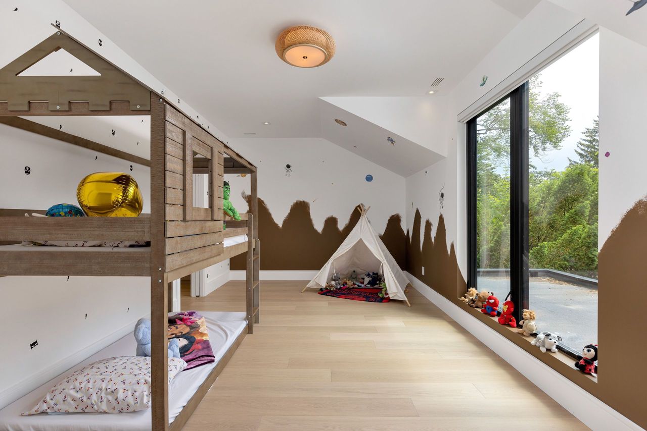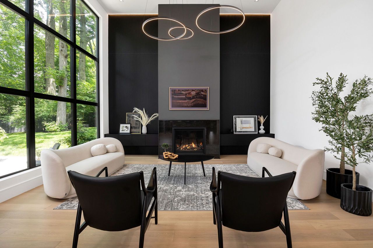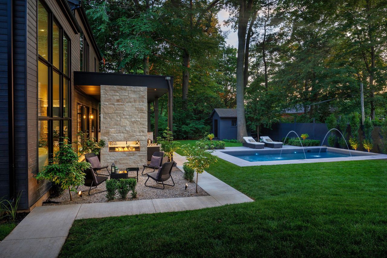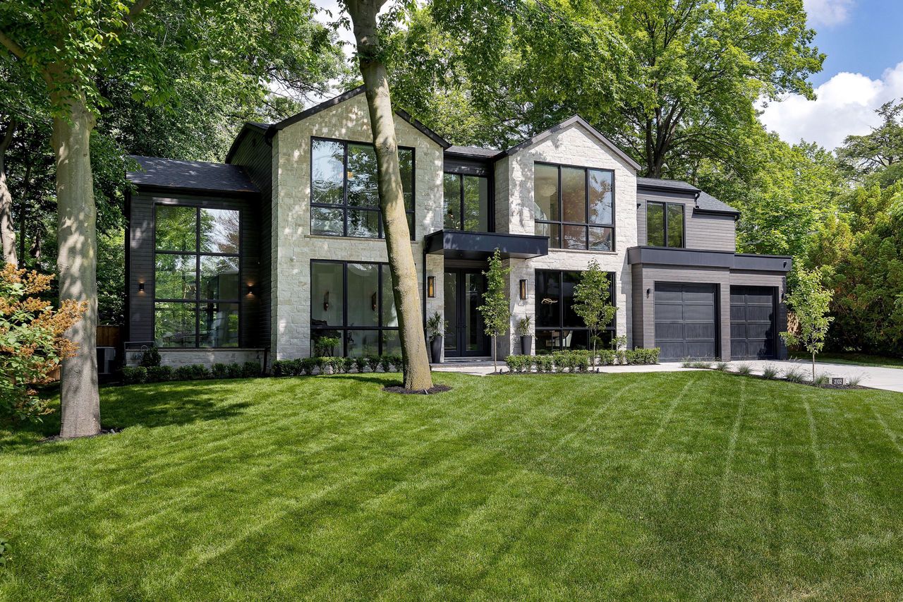 Welcome to a captivating living experience that transcends the ordinary! Newly custom-built residence offering over 7,450 sq ft of curated living space magnificently set on a 100 x 150 manicured lot with pool and triple car garage. This 4+1 bedroom, 6.1 bath home exudes elegance and refinement. The interplay of textures, materials, thoughtful finishes and detailing makes every room a showcase of modern luxury. At the heart of the home is the open concept kitchen featuring oversized commercial grade appliances with double oven, with a fully equipped hidden pantry room like none other. Finely crafted full height seamless cabinetry and a large quartz island make for an ideal entertainment space. The kitchen flows through the generous breakfast room into a light filled great room with 16 ft floor to ceiling windows and numerous sliders. Perhaps one of the most special features of this home is the stunning dining room located in a private wing adorned with a wine feature-wall, 16 ft ceiling, dedicated servery and expansive windows. The upper level offers a private double door entry to the primary suite. 5-piece en-suite with heated large format, porcelain tiles, curbless shower and freestanding bathtub. The walk-in closet featuring custom floor to ceiling seamless cabinetry with integrated lighting and smoked glass display shelving. 3 large bedrooms with walk-in closets and en-suites. A spacious laundry room with task sink and plenty of storage completes this floor. A sophisticated lower level with Radiant heat floors, oversized walk-up, bedroom with en-suite glass framed gym, steam shower, sauna, wet bar with all the fixings & a plush private theatre. Thoughtfully appointed outdoor living spaces including a covered porch with double sided fireplace, outdoor kitchen with large built in BBQ and salt water pool with 2 deck fountains. And exceptionally tasteful home with timeless modern appointments rooted in function, good taste, and expert craftsmanship.