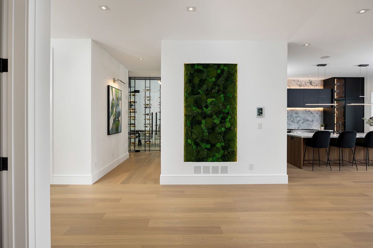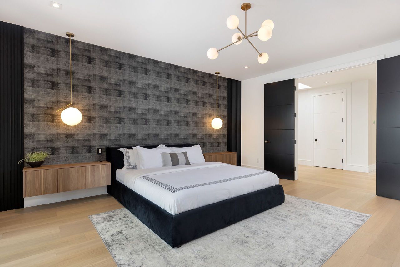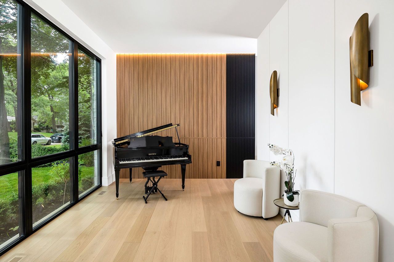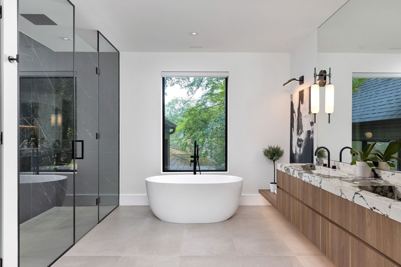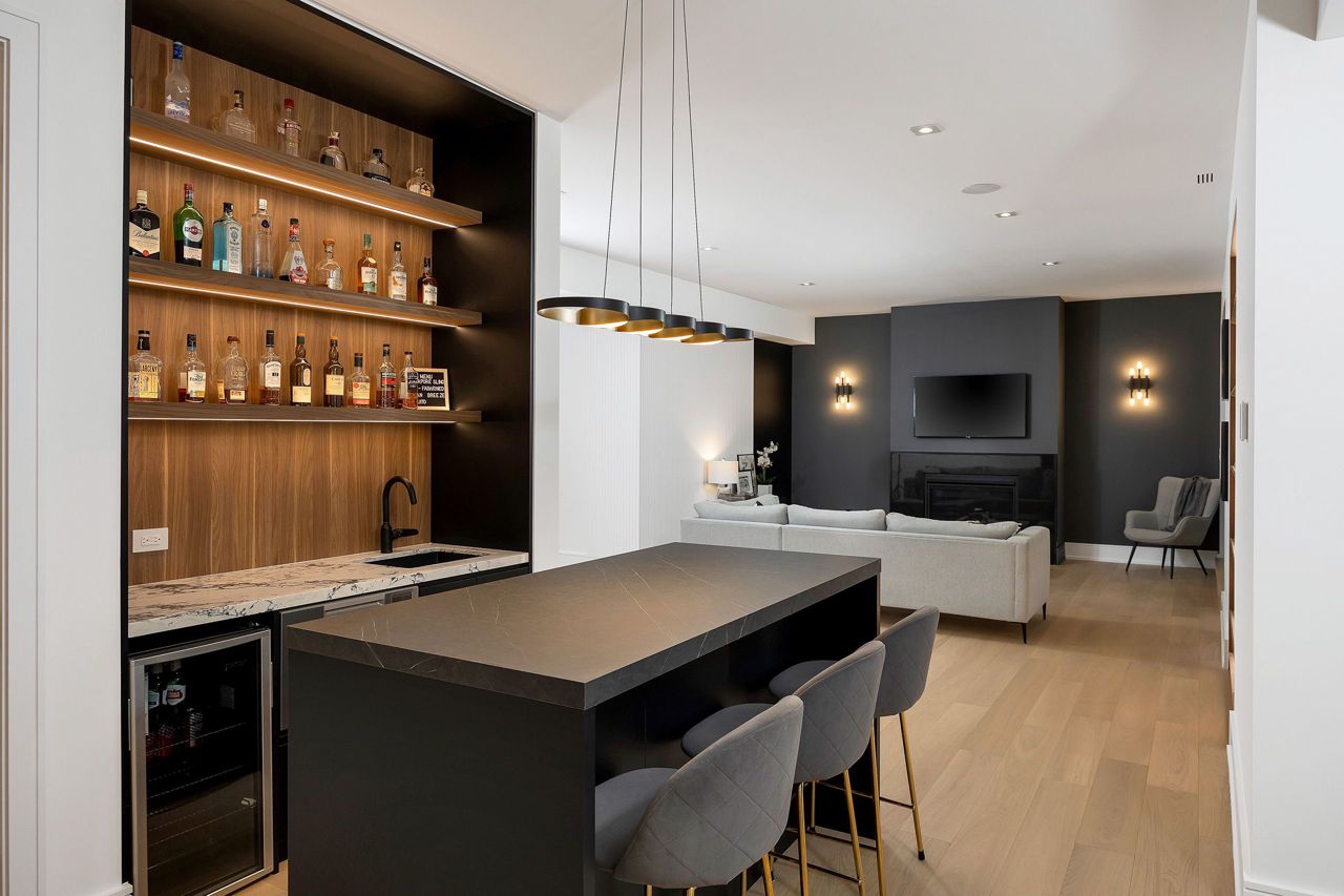 Welcome to a captivating living experience that transcends the ordinary! Newly custom-built residence offering over 7,450 sq ft of curated living space magnificently set on a 100 x 150 manicured lot with pool and triple car garage. This 4+1 bedroom, 6.1 bath home exudes elegance and refinement. The interplay of textures, materials, thoughtful finishes and detailing makes every room a showcase of modern luxury. At the heart of the home is the open concept kitchen featuring oversized commercial grade appliances with double oven, with a fully equipped hidden pantry room like none other. Finely crafted full height seamless cabinetry and a large quartz island make for an ideal entertainment space. The kitchen flows through the generous breakfast room into a light filled great room with 16 ft floor to ceiling windows and numerous sliders. Perhaps one of the most special features of this home is the stunning dining room located in a private wing adorned with a wine feature-wall, 16 ft ceiling, dedicated servery and expansive windows. The upper level offers a private double door entry to the primary suite. 5-piece en-suite with heated large format, porcelain tiles, curbless shower and freestanding bathtub. The walk-in closet featuring custom floor to ceiling seamless cabinetry with integrated lighting and smoked glass display shelving. 3 large bedrooms with walk-in closets and en-suites. A spacious laundry room with task sink and plenty of storage completes this floor. A sophisticated lower level with Radiant heat floors, oversized walk-up, bedroom with en-suite glass framed gym, steam shower, sauna, wet bar with all the fixings & a plush private theatre. Thoughtfully appointed outdoor living spaces including a covered porch with double sided fireplace, outdoor kitchen with large built in BBQ and salt water pool with 2 deck fountains. And exceptionally tasteful home with timeless modern appointments rooted in function, good taste, and expert craftsmanship.
