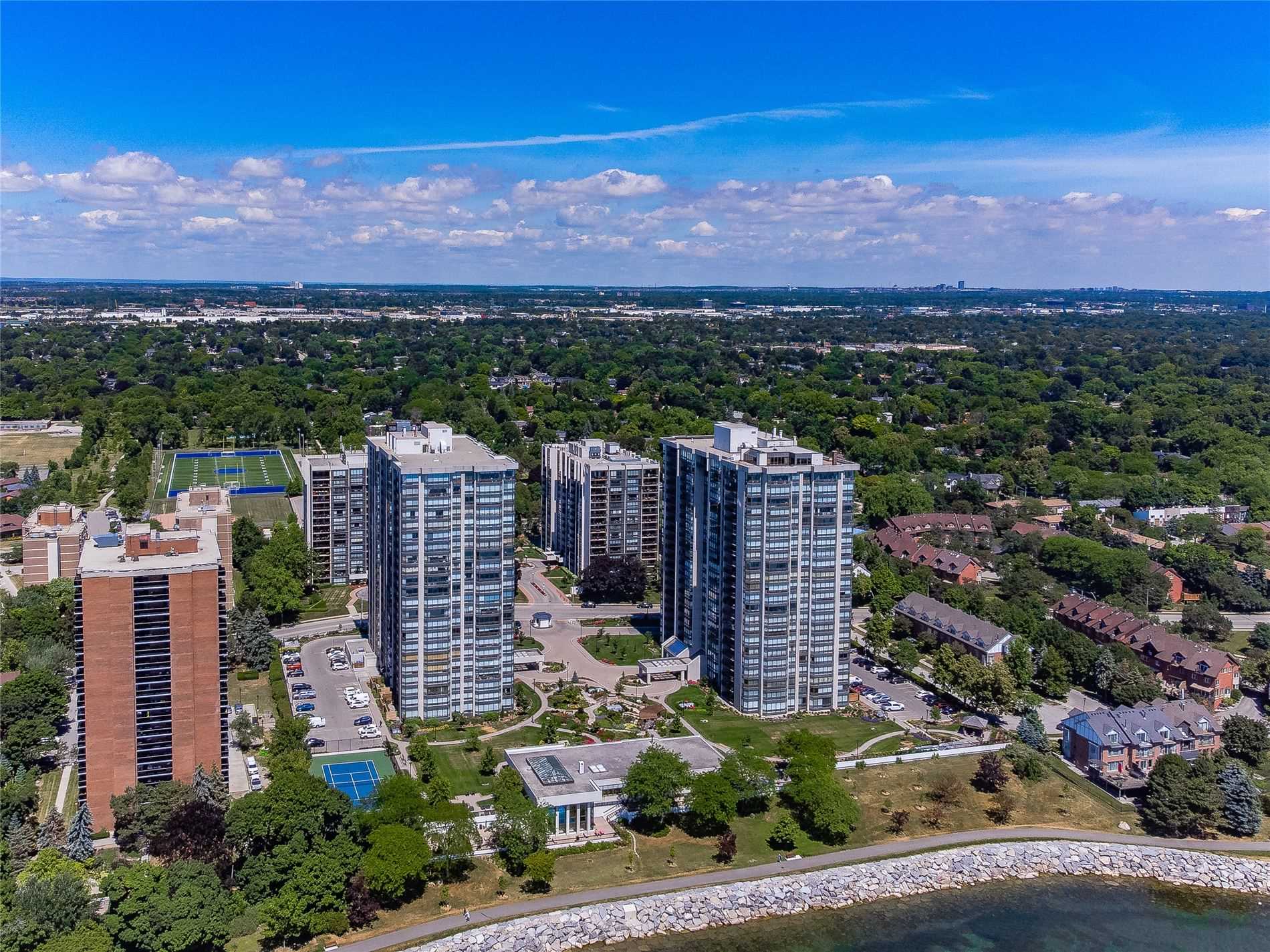 Great Lifestyle Opportunity To Live At The Prestigious 'Ennisclare Il On The Lake' Complex On The Shores Of Lake Ontario Located In The Heart Of Bronte Village. Prime Waterfront Location Within Walking Distance To The Lake, Bronte Harbour, Trails, Parks, Shopping & Restaurants. 1830 Sq Ft Corner Suite Boasting Picturesque Unobstructed Views Of Lake Ontario & The Toronto Skyline. Spacious Rooms Include Open Concept Formal Dining Room & Living Room, Eat-In Kitchen & Primary Bedroom With 3-Piece Ensuite. 2nd Bedroom, 4-Piece Main Bath, Den, Solarium & Separate Laundry/Storage Room. 2 Underground Parking Spaces & 1 Exclusive Use Locker. Unparalleled Building Amenities Incl 24-Hour Security, Indoor Pool & Hot Tub, Exercise Rooms & Saunas, Club House, Party Rooms, Billiards, Golf Range, Squash Court, Workshop, Art Room, Tennis Court, Outdoor Seating Areas, Visitor Parking & Much More. Smoking & Dogs Are Not Permitted. Renovate To Make This Home Perfect For You! (View The Video & Floor Plan.) Stove, Fridge, Built-In Dishwasher, Washer & Dryer, All Electric Light Fixtures, All Window Coverings. (Property Being Sold 'As Is' Condition.) Exclusions: Tenants Chattels