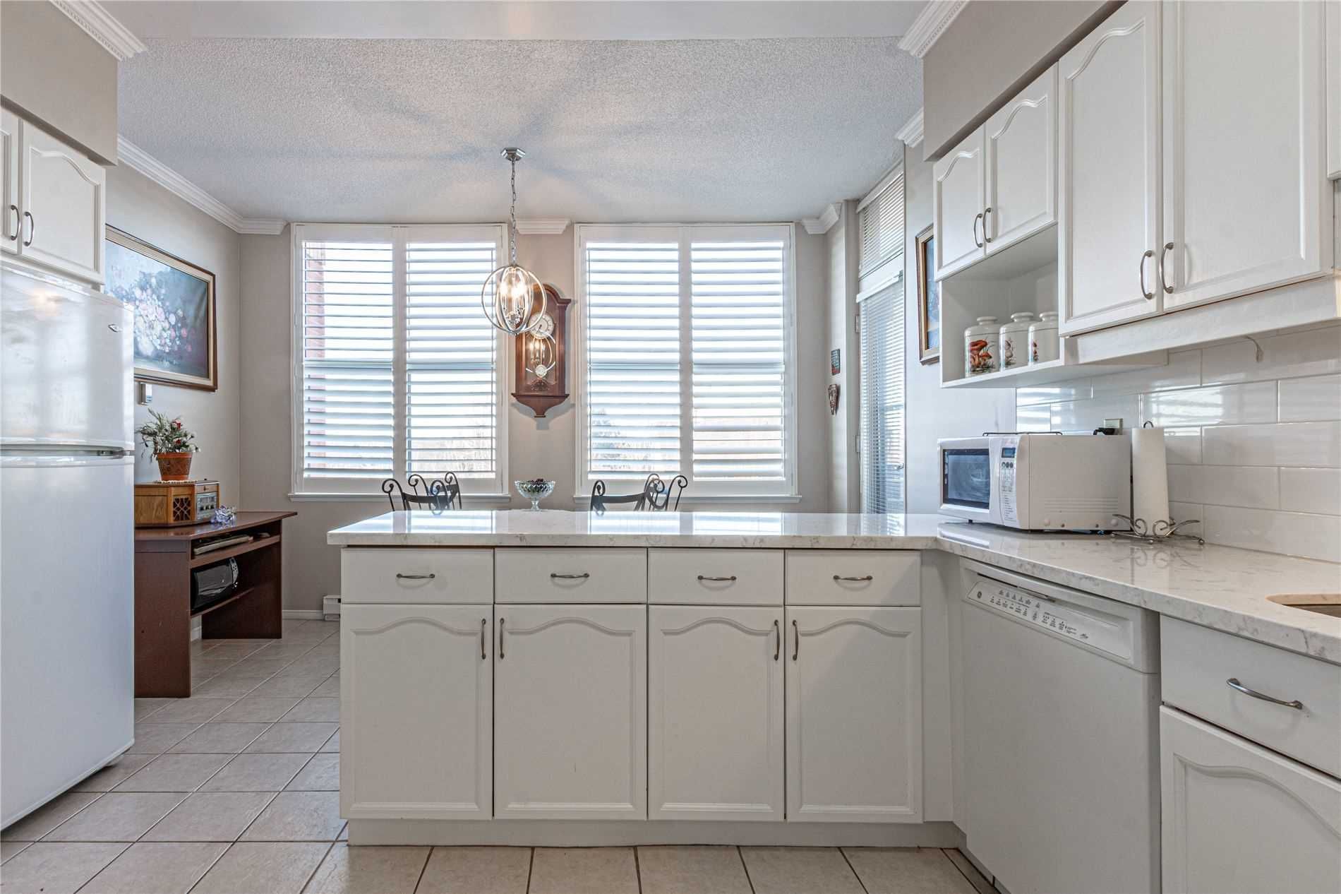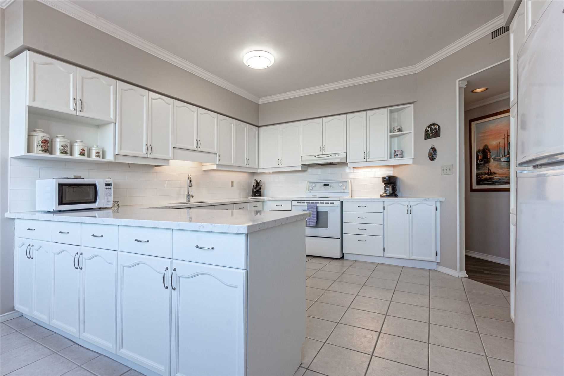 Welcome to your new home! This spacious corner unit, one of the largest in the building at 1448 square feet, boasts two balconies, in-suite laundry, and includes two parking spaces plus a locker. Enjoy stunning panoramic views and an all-inclusive package, excluding hydro and cable. The building offers fantastic amenities, including a library, gym, party room with kitchen, and workshop.Include: Bi D/W, W/D, Garage Door Opener, Refrigerator, Stove, Window Coverings, All Elf's, Bathroom Mirrors.