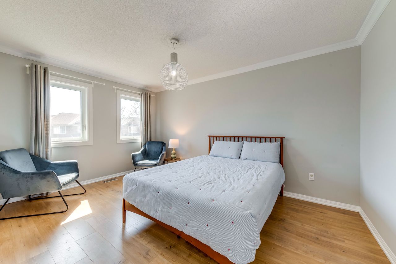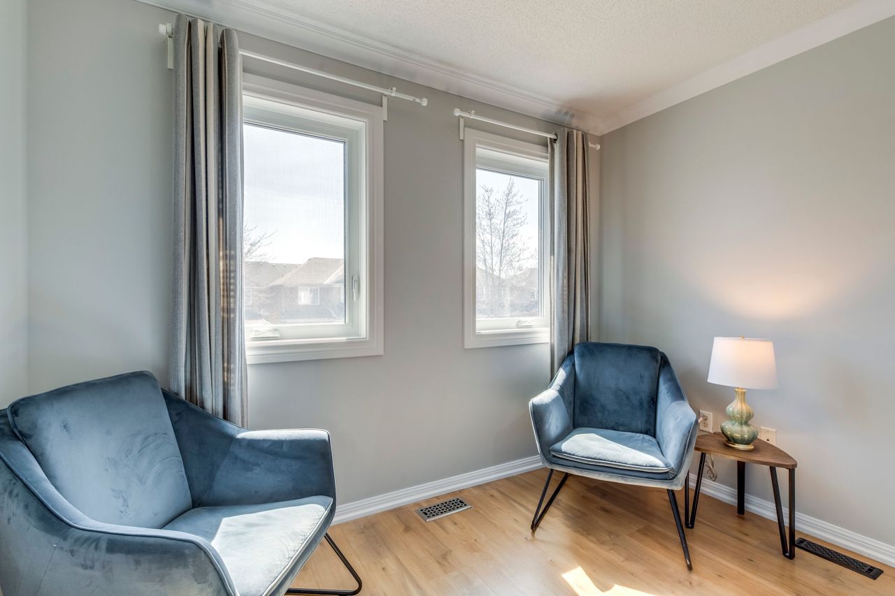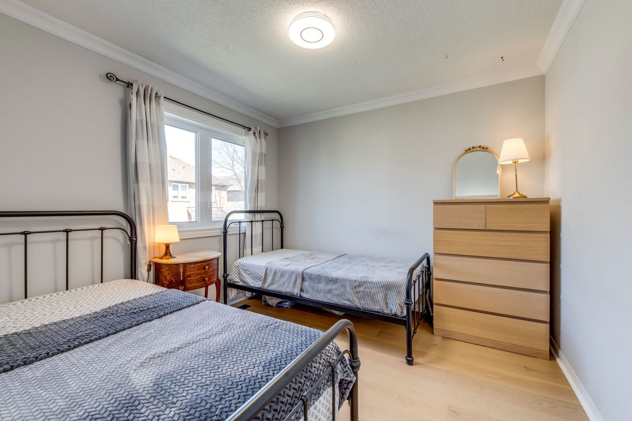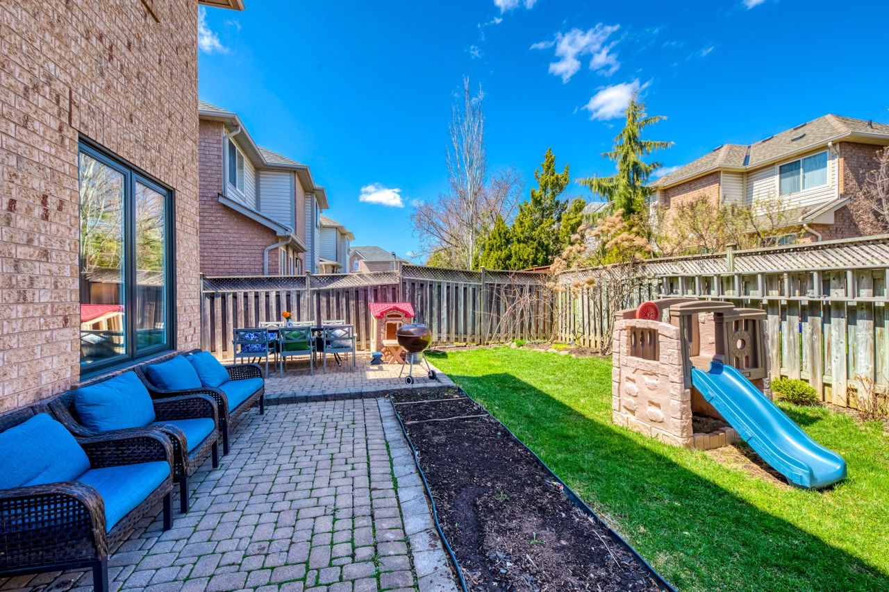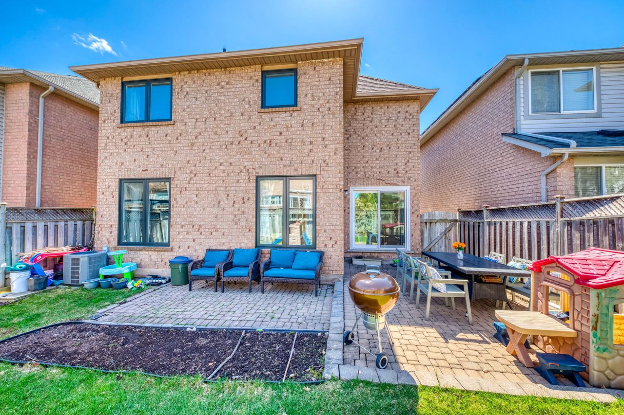 Welcome to this beautifully-maintained 3-bedroom, 2.5-bath home in Oakvilles desirable West Oak Trails. With thoughtful upgrades throughout, this warm, move-in-ready home delivers comfort and style. Arriving home feels special by being welcomed by an extra-wide driveway that comfortably fits two cars, a beautiful front garden and a welcoming front porch and entry. New front and patio doors and triple-glazed windows (2021/22) add modern efficiency throughout. Inside, engineered hardwood floors (2021) flow through the main level, leading to a fully renovated kitchen with quartz countertops, updated cabinetry, and stainless steel appliances (2019/22). A bright breakfast area with walkout to the backyard makes this space perfect for everyday living and entertaining. Upstairs, with Hardwood floors throughout, offers a spacious primary bedroom w/walk-in closet and 3-piece ensuite. Two additional bedrooms and a full bath completing the level. The finished basement includes updated flooring (19) and flexible space for a rec room or home office. Outside, enjoy the private interlock patio with natural gas BBQ hookup. Close to top-rated schools, trails, parks, shopping, the hospital, and major highways this home checks all the boxes.