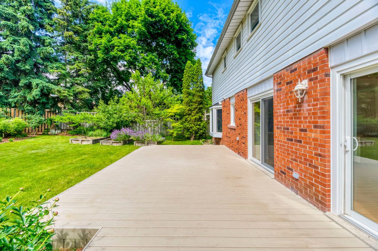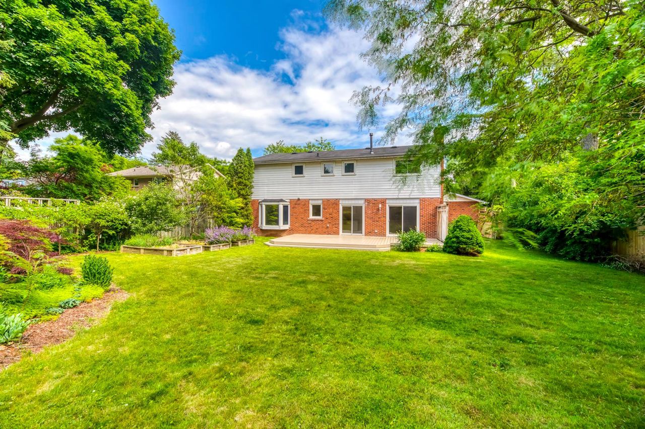 Experience upscale living in South East Oakville, just steps away from the lake. This executive 4-bed, 3-bath detached home boasts a 78 x 165 ft irregular lot, a grand 3-car garage, and a tranquil crescent location. Inside, you'll find an open concept living and dining room with scenic bay window views. The Scandinavian-style eat-in kitchen features quartz counters and stylish updates. The main floor family room offers a cozy gas fireplace, while the deck leads to a serene backyard with lush gardens and privacy fencing. The upper level showcases an oversized primary bedroom with upgraded hardwood floors and a renovated spa-like ensuite. Three additional bedrooms share a renovated main bath. The lower level offers potential for a games room and rough-in for a fireplace. Outside, mature trees grace the front yard, while the backyard features a private seating area. Located near top schools, Maple Grove Arena, and Charnwood Park, this is luxury living in South East Oakville.