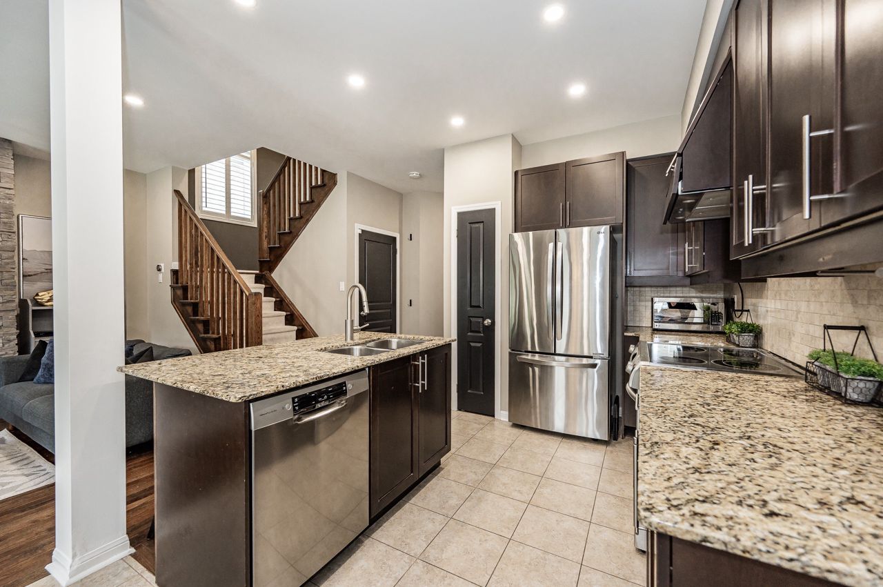 Ok google, find me a large 4 bedroom (over 2200 total sqft) move-in-ready semi-detached home with a double car garage, and a finished basement on a quiet family friendly street in the highly sought-after Westmount neighbourhood AND *gasp* dare I say a “real” backyard?… Found! Featured upgrades incl main floor hardwood flush with hardwood stairs and matching banisters, 9 ft ceilings, california shutters throughout (G and 2nd), trendy paint tones, gas fireplace with stone accent wall, and the essential open-concept layout. The gourmet kitchen features pot lights, beautiful stone counters with matching tile backsplash, and upgraded s/s appliances. Fin basement features pot lights & a 2 piece bathroom. Amazing location: near top schools in the province, 2 min walk to new multi-billion dollar Oakville hospital, 6 min walk to shopping/grocery, parks and trails. Only 9 min drive to Bronte GO train station and QEW. Floor plans and virtual tour via media link or 2283whistlingsprings.com/nb/VERY well maintained with new roof (’20), furnace (’21), garage door (’22), added attic insulation (’22), and duct cleaning (’17,’21). Smart home tech allows you to set lights, heat/cooling by voice, phone, schedule, or normal switch!