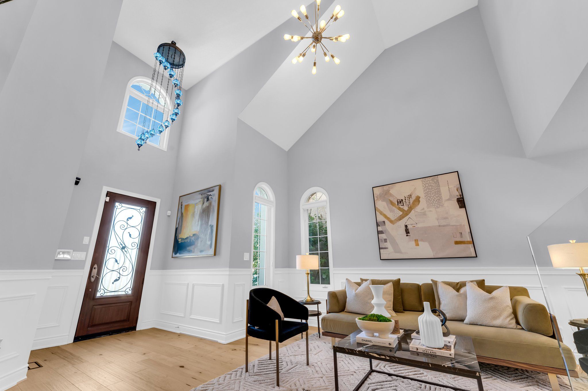 Cathedral Ceiling Hardwood Floor Wainscoting