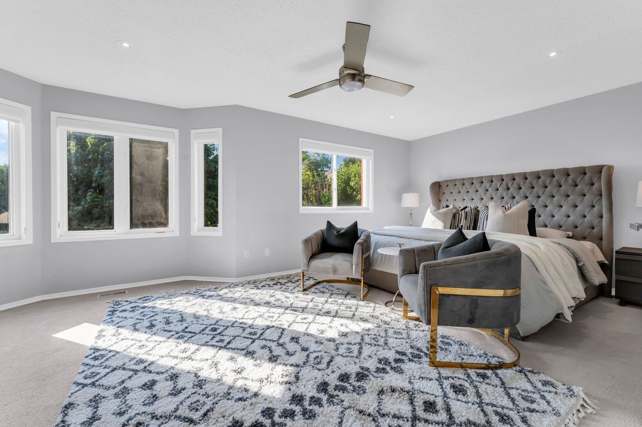 This stunning luxurious smart home offers approx.4500 square feet of living space, including 5 bedrooms and 5 bathrooms, plus a den/office that can easily be used as a 6th bedroom. More than 300k spend on upgrades(22). Fully renovated throughout with stucco ext.9 Feet ceiling on main floor and hardwood flooring. Stepping through the front door, you will be greeted by a grand foyer. The spacious layout provides an abundance of natural light, and the open-concept design seamlessly connects the living, dining, and kitchen areas. The gourmet kitchen featuring high-end appliances, ample counter space, and custom cabinetry. The master suite comes with a spa-like ensuite bathroom and a walk-in closet. This exquisite home is situated in a highly sought-after neighbourhood with a top-rated high school. In addition, you'll enjoy the convenience of nearby amenities, including schools, parks, and shopping centres and mins away from highways and go station.Statement Fireplace, Silk Roman Shades, Glass Staircase, Pot Lights, contemporary Garage Door, Smart Moen Faucet, New Furnace, Thermaodore Cooking Range, 10 feet Quartz double sided waterfall island, Water filtration sys ,smart home