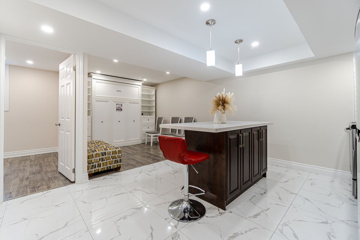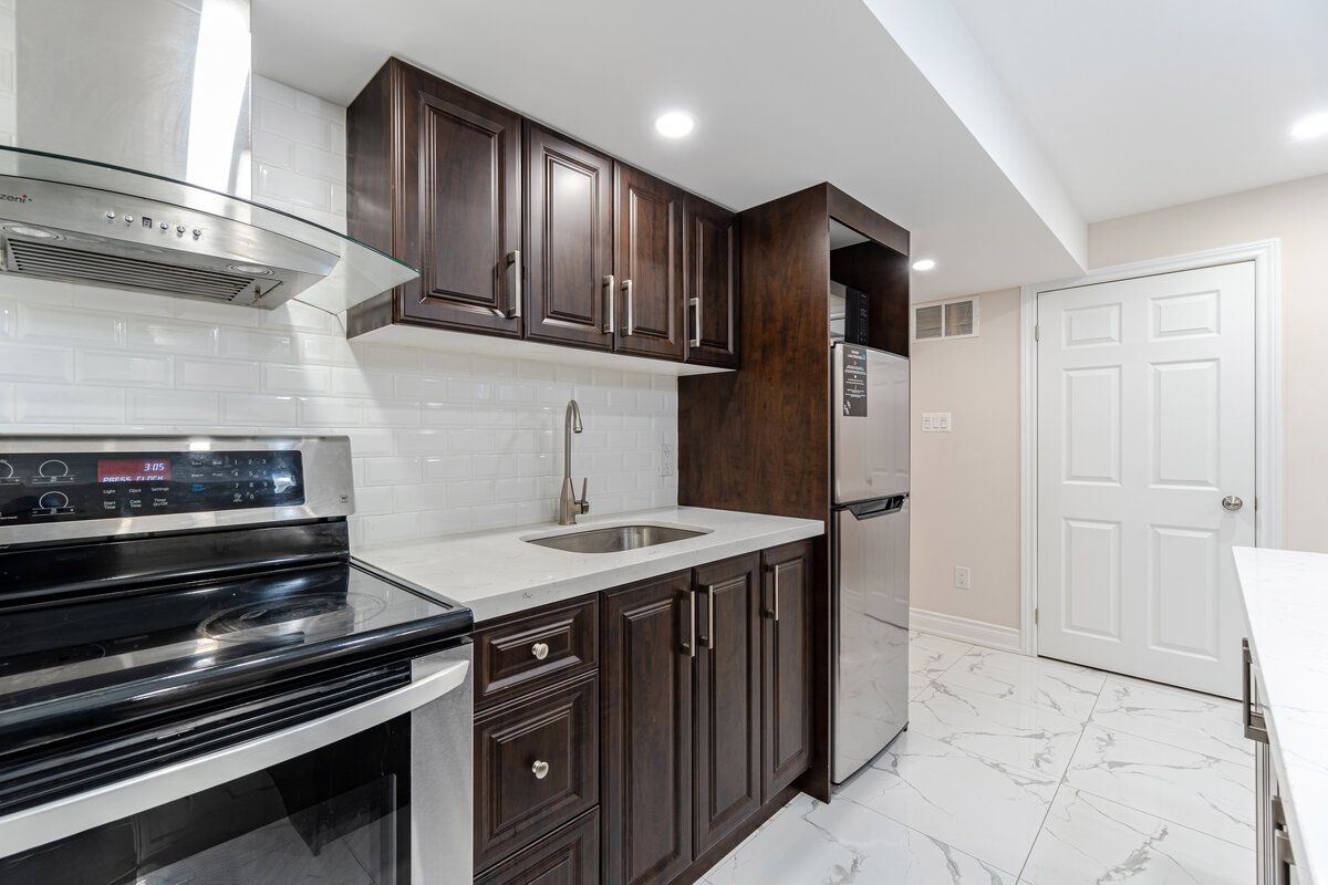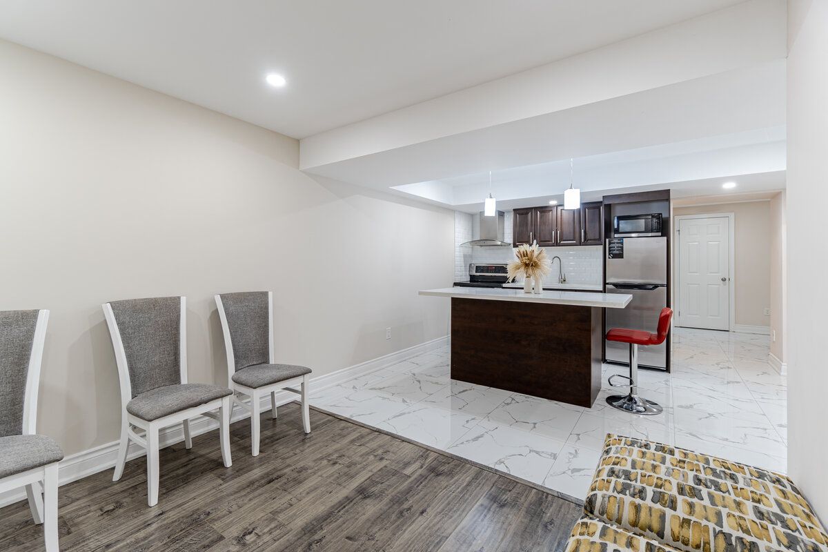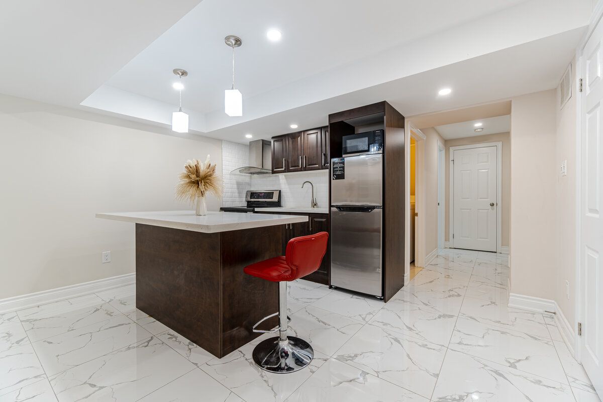 Basement has another set of Washer & Dryer in the laundry room, S/S Fridge, S/S Stove, Quartz Centre Island in Kitchen.