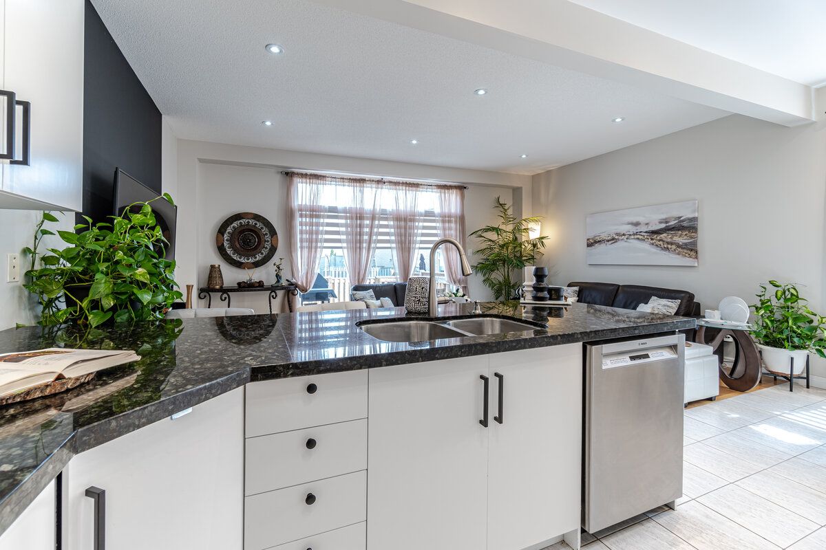 Rare end-unit 2 car garage townhouse, 4 bedroom, 4 washroom in West Oak Trails. Over 2468 Sq ft including basement. Contemporary exterior with stone & stucco, custom landscaping with new sod, double door entry. Well maintained Pride of Ownership. 9 ft ceiling on main floor. Beautiful arched windows in all rooms for plentiful Sunlight. Updated Kitchen With S/S Appliances, tall cabinetry Granite counter top along with custom stone backsplash. Painted In Neutral Tones, Pot Lights on Main Floor. Hardwood on main floor, laminate on upper, basement has porcelain tiles and laminate. Bay window in primary bedroom with a W/I closet & 4-pc ensuite washroom. Basement has large size window and a self contained kitchen with quartz centre island. Basement recreation room has built-in Murphy bed. Garage access from inside the house. Minutes to Bronte GO Station, Oakville Hospital, Bronte Creek Provincial Park, Hwy 403 & QEW. Walk to FreshCo, Schools & Oakville Soccer Club. Deck in backyard.S/S Fridge, S/S Stove, S/S B/I Dishwasher, Separate Washer & Dryer on Upper Floor. All Elf , Newer Window Blinds, Gdo.
