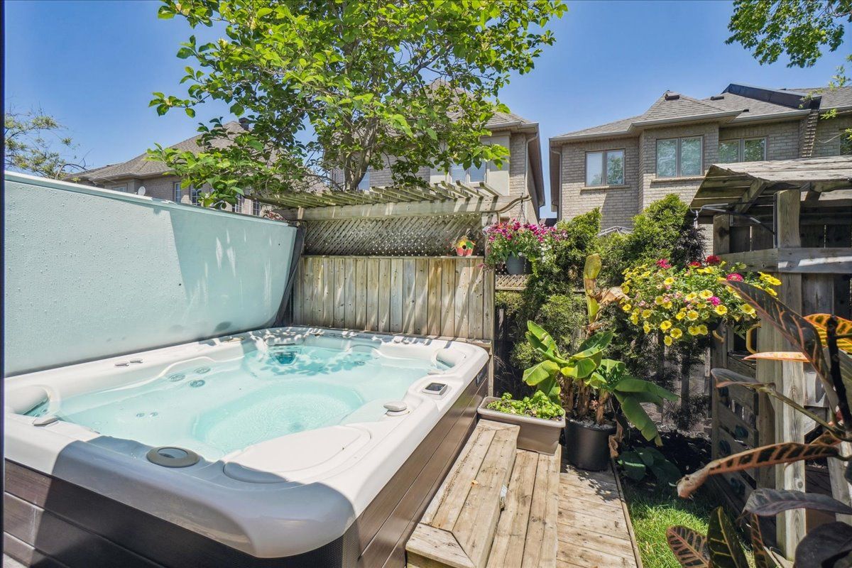 Beautiful semi in demanding Joshua Creek-almost 2100 sqft Fernbrook home! Large gourmet kitchen with centre island and granite counters, that walks out to a private deck and gazebo! Strip hardwood floors throughout! Large principal rooms! Spacious 2nd level with laundry and large bedrooms! Professionally finished basement with pot lights, exercise room, 3 piece bath and lots of storage! Walk to top rated schools, parks and trails! Conveniently located to shopping, rec centre, library and quick access to QEW,403&407! Will not last!