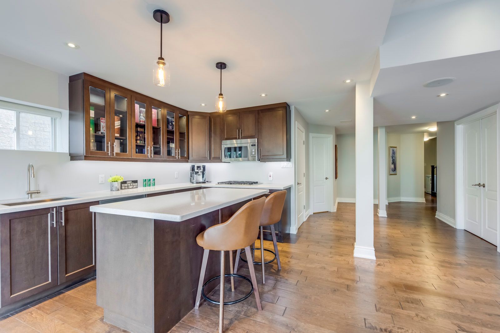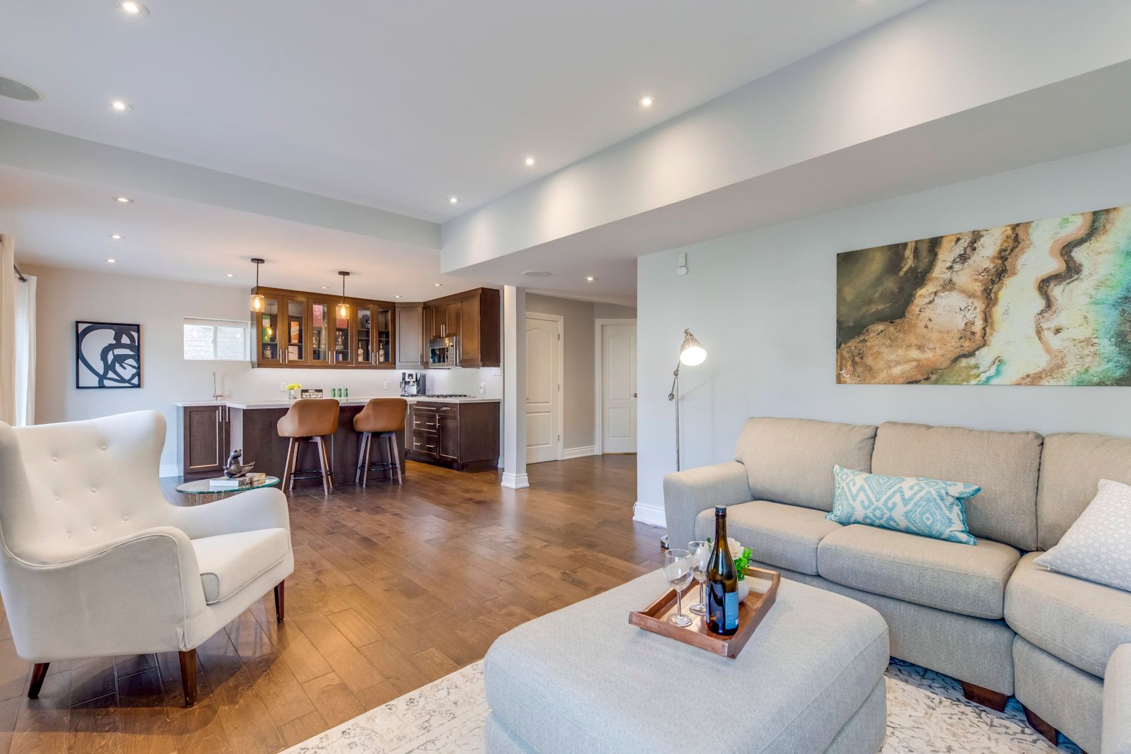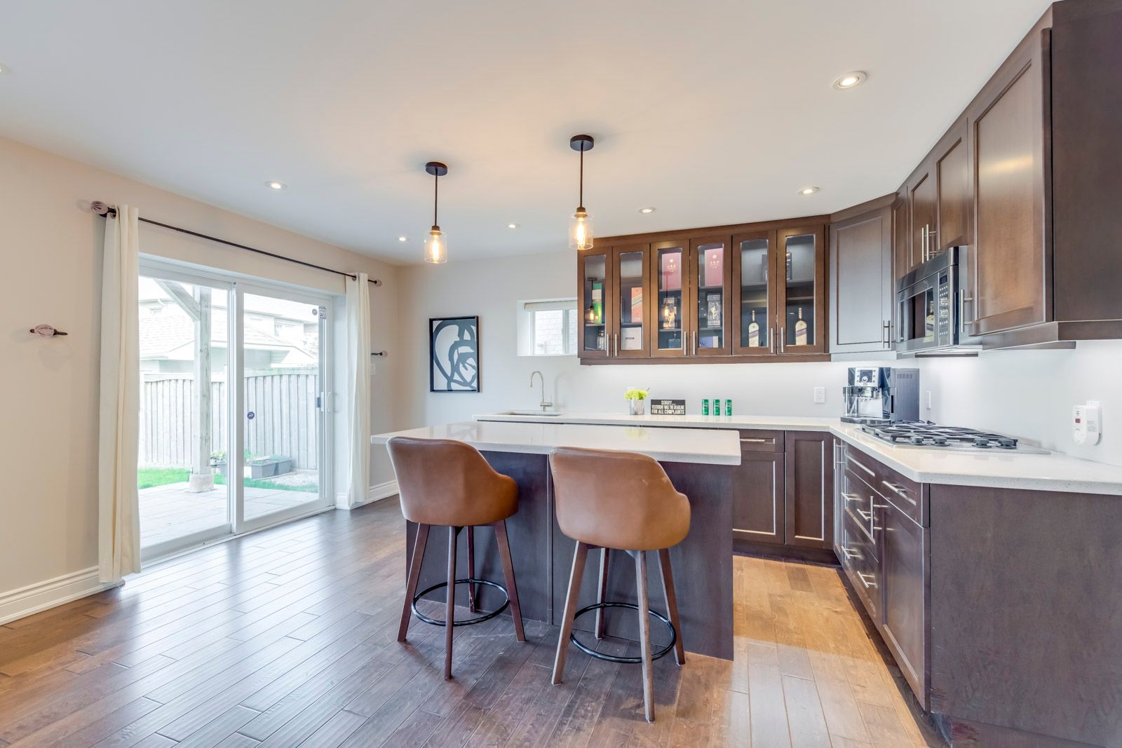 Appliances, Centre Island & Quartz C/Tops Plus Generous Breakfast Area With W/O To Deck! 2. Beautiful F/R Boasting Pot Lights, Gas F/P & Large Windows! 3. Bright Combined Formal L/R & D/R Area With Tray Ceiling, Pot Lights & Large Windows. 4. 4 Bedrooms & 3 Baths On 2nd Level Including Spacious Pbr Boasting Large W/I Closet & 5Pc Ensuite W/Double Vanity, Soaker Tub & Separate Shower! 5. Fully Finished W/O Bsmt Featuring Kitchenette W/Ample Cabinetry, Centre Island, Quartz C/Tops & W/O To Patio, Open To Lovely Rec Room W/Pot Lights & Gas F/P Plus 5th Bdrm & Full 3Pc Bath! All This & More! 2nd & 3rd Bdrms Share 4pc Semi-Ensuite & 4th Bdrm Boasts 4pc Ensuite! Hdwd Flooring Thru Main & 2nd Levels. Fully Fenced Yard With Patio Area & Mature Trees.Fabulous Joshua Creek Location Just Steps From Many Parks & Trails, Top-Rated Schools & Rec Centre & Just A Short Distance From Restaurants, Shopping & Amenities, Plus Easy Hwy Access.