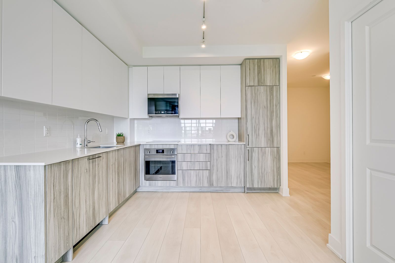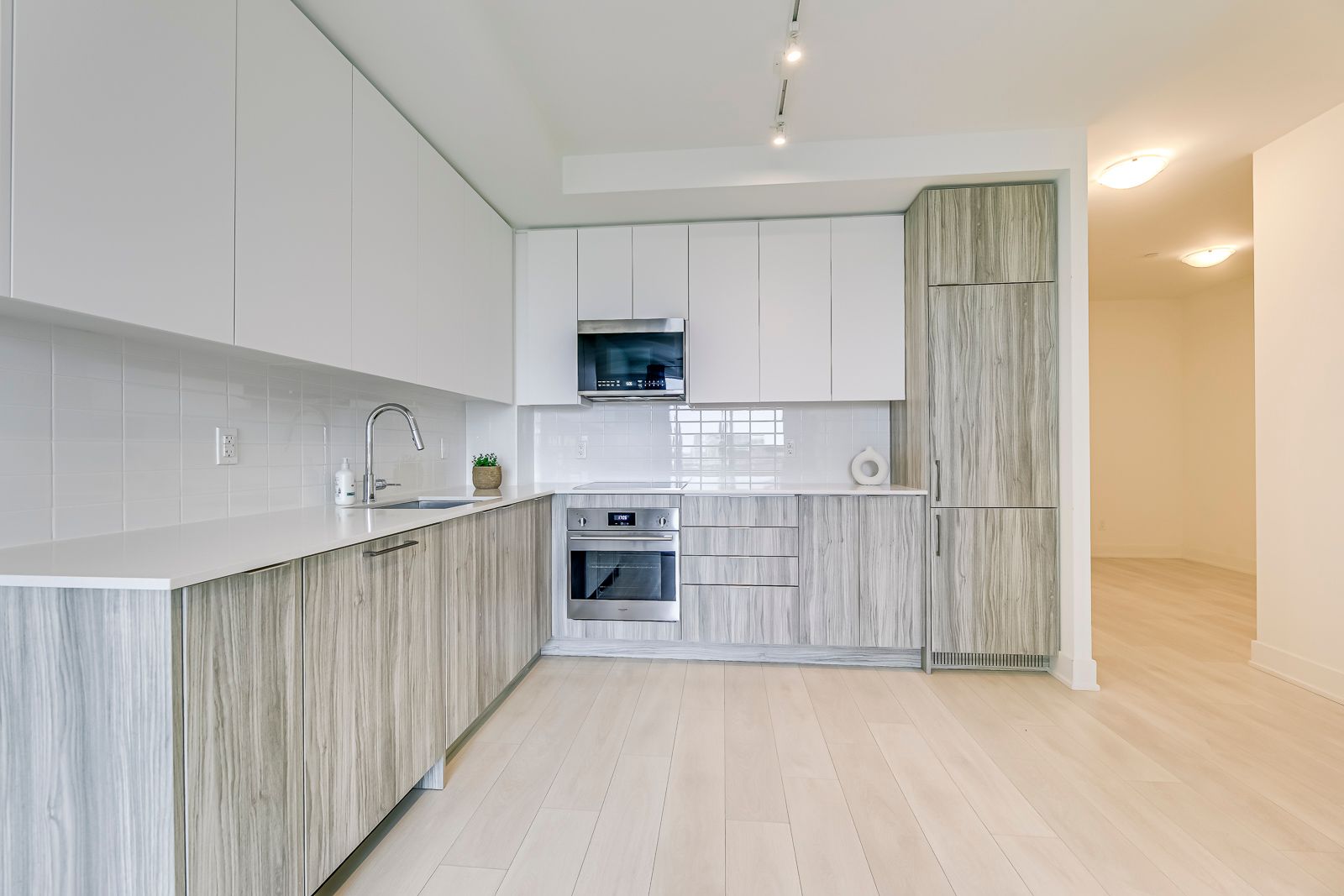 Ideal Oakville Uptown Location Walking Distance To Any Amenity You Could Wish For. Brand New Build Condition! Great Layout With One Bedroom, One Bathroom Open Concept Kitchen, Living Room, Dining Room. Large Closet Off The Main Hallway Leads To The Bright Fully-Equipped Kitchen With Premium Two Tone Cabinetry, Tiled Backsplash, Stainless Steel Appliances And Quartz Countertops. Gorgeous Light Coloured Vinyl Flooring Throughout The Whole Unit. 9 Foot Ceilings And Led Lighting Throughout. Spacious Bedroom With Walk-In Closet. Enjoy Stunning Sunsets With West Exposure Overlooking The Escarpment. Large Walk Out Balcony With Glass Railing. In-Suite Laundry. One Parking And Locker Included. Come See Why This Is The Right Unit For You!
