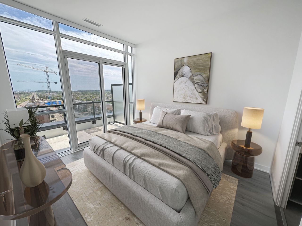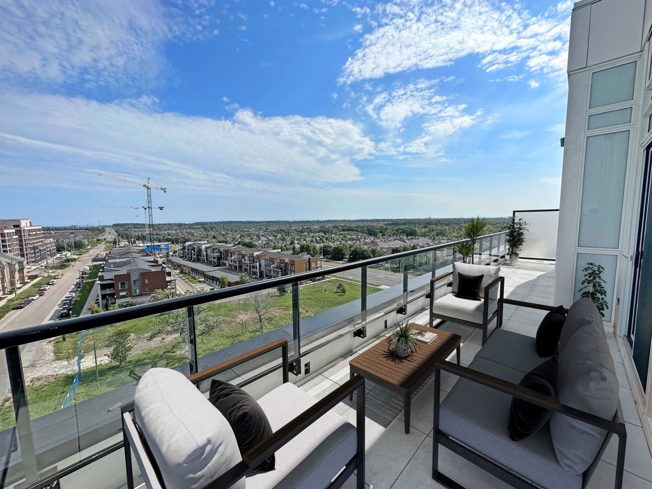 Welcome to the Bronte where contemporary style meets every day convenience. This brand new penthouse features an open concept 2 bedroom 2 bathroom and a big kitchen w/ island and eat-in area. Primary bedroom features walk in closet and 4 piece ensuite w/ a walkout to the large open terrace. 315 sqft of balcony can fit all your outdoor furniture, and with southern facing views to clink champagne in the evening. Floor to ceiling windows w/ blinds throughout. Living room has gorgeous southern views and an adjoining area for your home office. This brand new building features many modern amenities like the sough after "package room" for all your deliveries. Gym, Party rooms and underground parking w/ locker attached to the parking space. Close to hospital, medical centers, highways, go-train, shopping and trails!