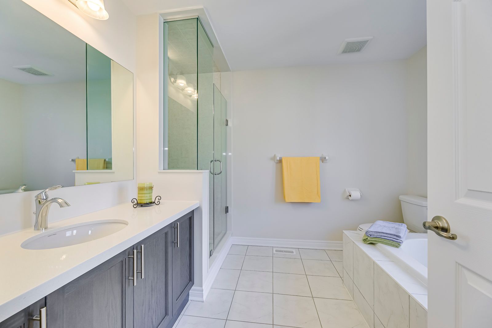 Luxury 4 Year Old Townhouse Built By Remington Homes. One Side linked by Garage Only! 3 Bedrooms, 2.5 Baths,Lots Of Upgrades! 9'Ceilings,Elegant Hardwood/Ceramic Floors,Hardwood Staircase.Pot Lights on Main floor. Open concept Living and Dining room,2Pc Powder Room w window, Access To Garage from inside of the house.Modern Kitchen with Granite Counter tops.Quartz In The Bathrooms, Prim Room with Ensuite Bath, Soaker Tub/Separate Shower. Fully fenced back yard.Owner-occupied,meticulously maintained home-spotless. Oakville's Desirable Glenorchy Community! Walk To Parks, Trails, Schools, Shopping, Sports Complex, Library & Public Transit.